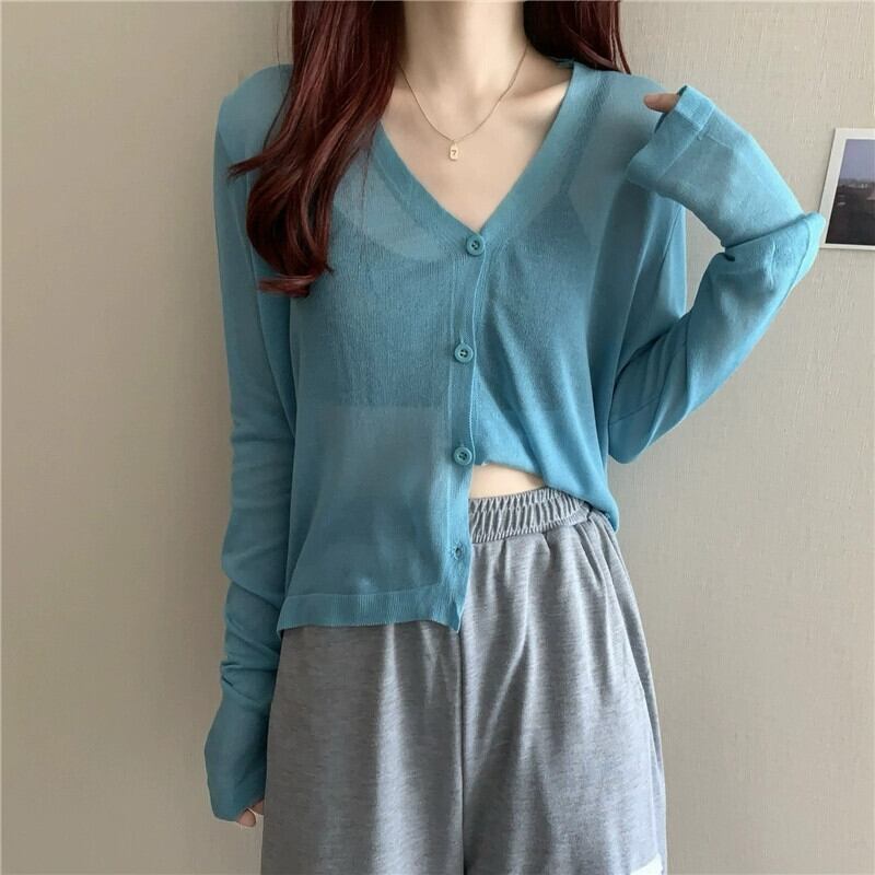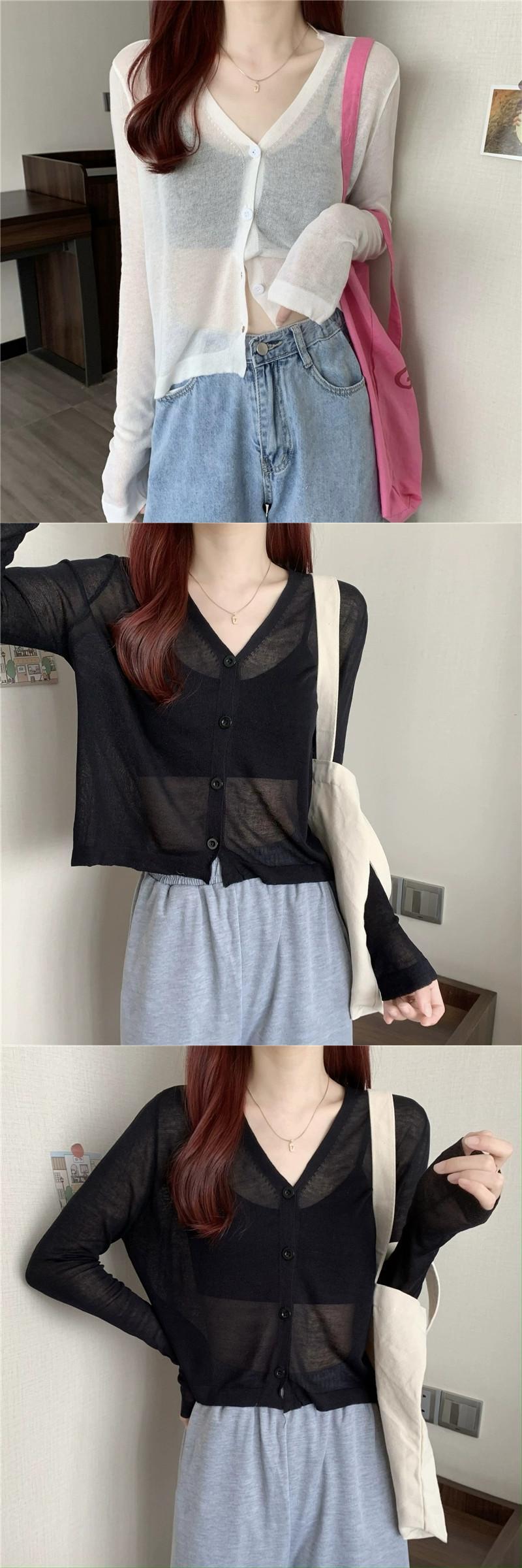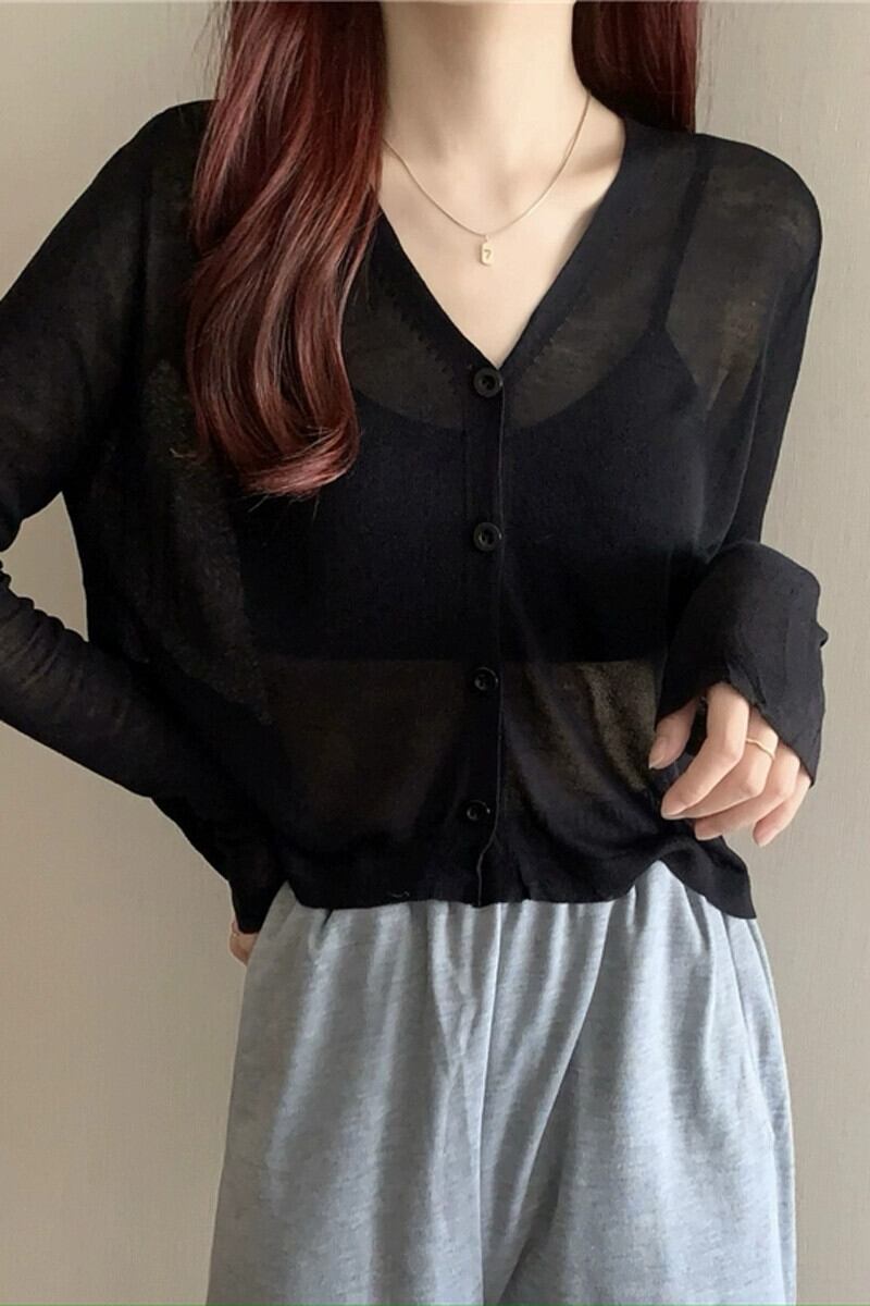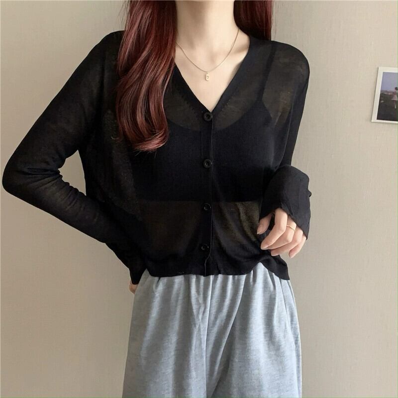 ブラックアイスシルク日焼け止めカーディガン薄い女性の夏のルーズアウターニットブラウスエアコンルームジャケットとサスペンダースカート サマー 夏物 7460044555187961 | framboise21