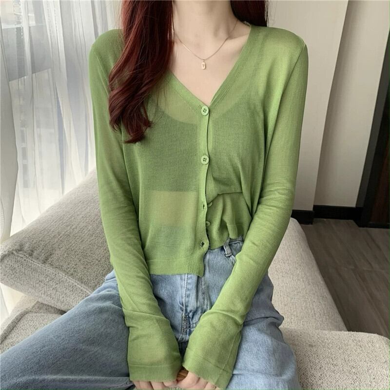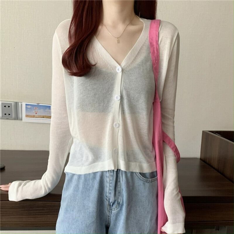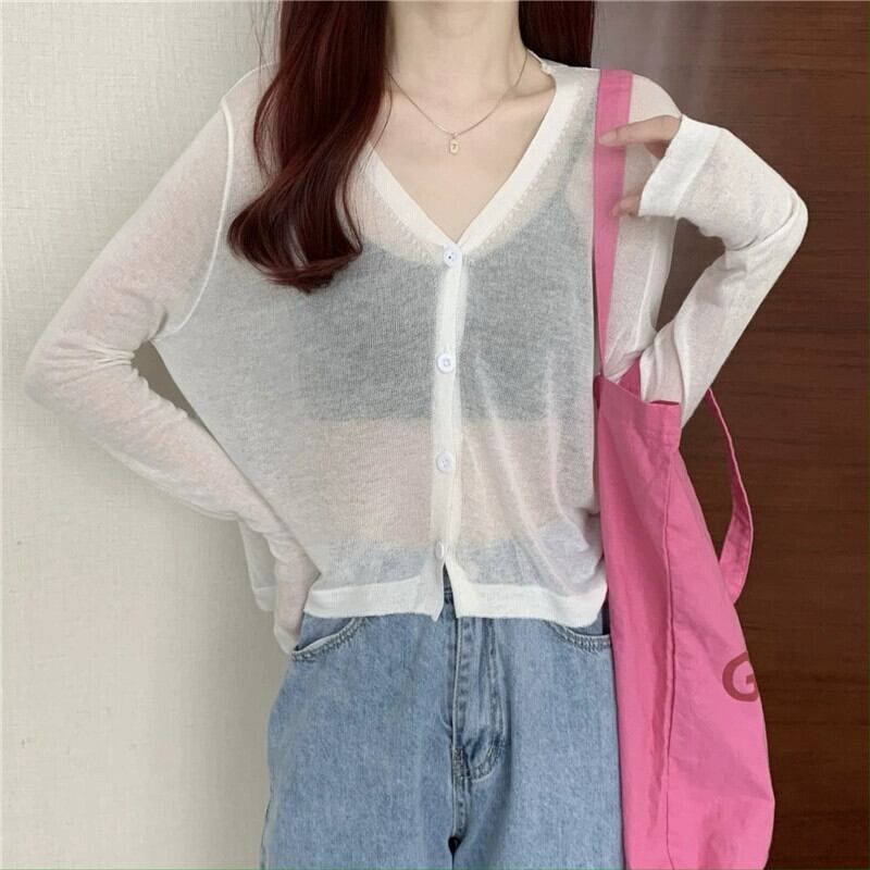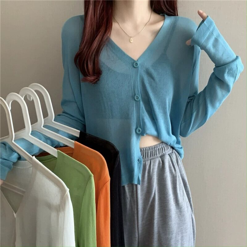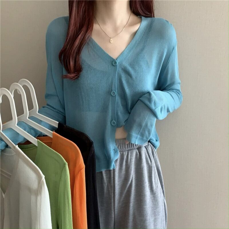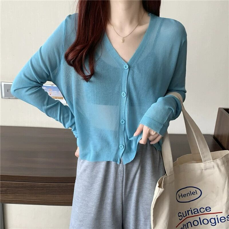 ブラックアイスシルク日焼け止めカーディガン薄い女性の夏のルーズアウターニットブラウスエアコンルームジャケットとサスペンダースカート サマー 夏物 7460044555187961 | framboise21