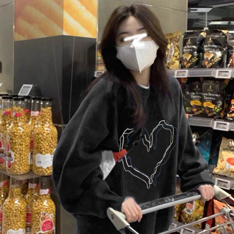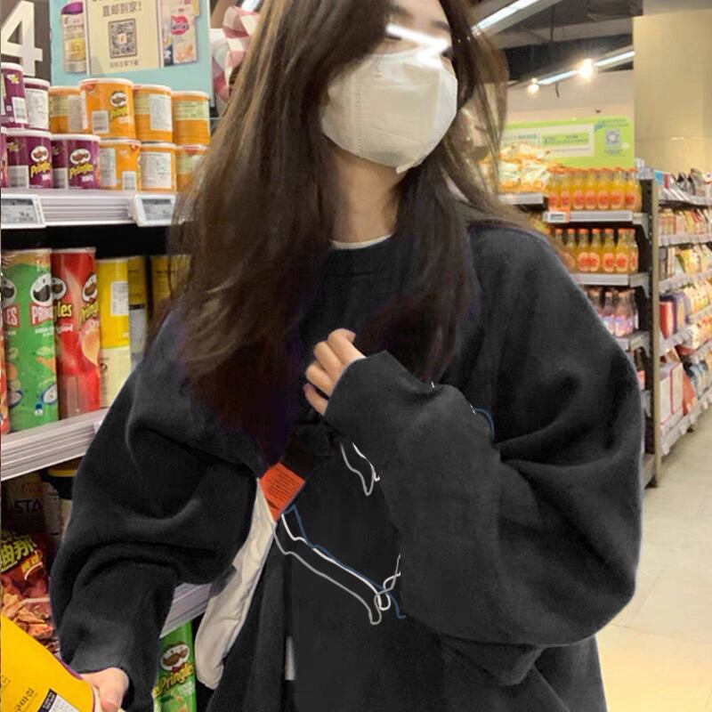 特大フード付きスウェットシャツの女性の春と秋 2023 新しいスタイルルーズスタイルカジュアルミッドレングスブラックジャケット スプリング 春物 オータム 秋物 7460081710872338 | framboise21