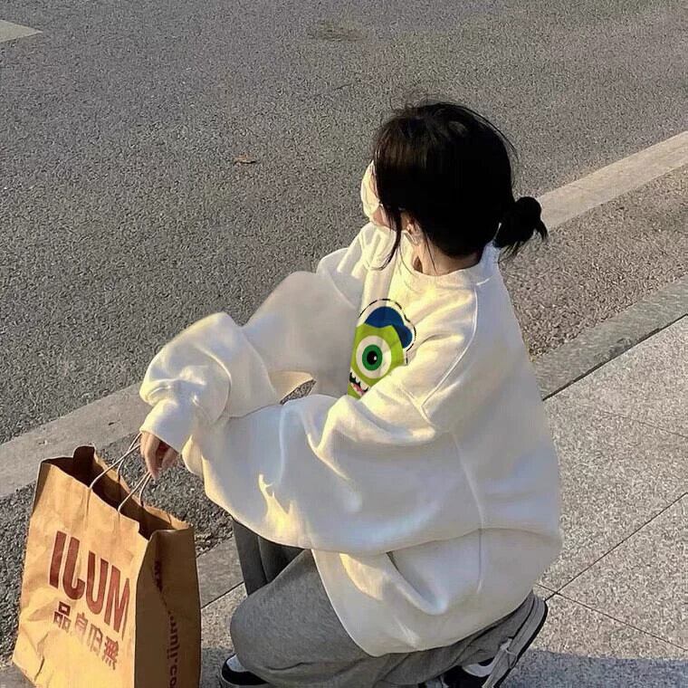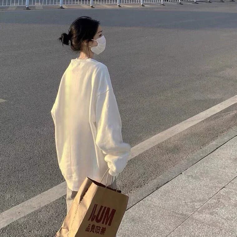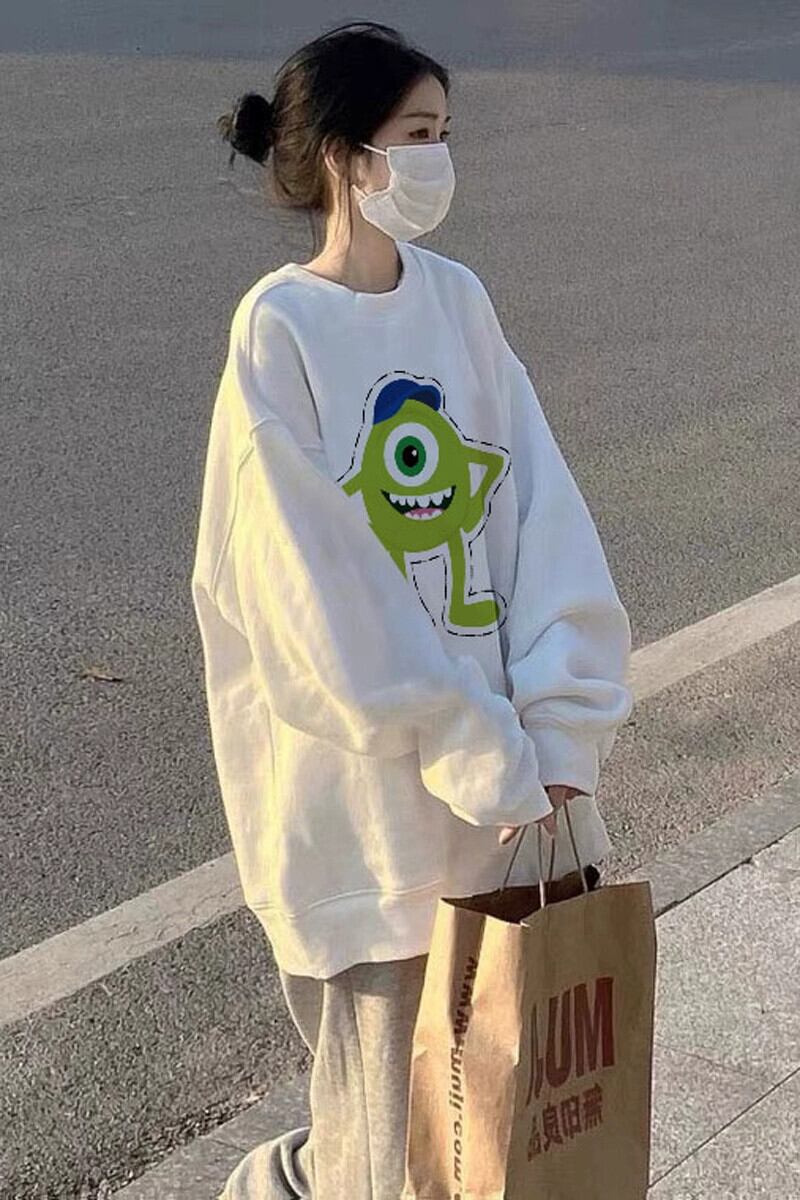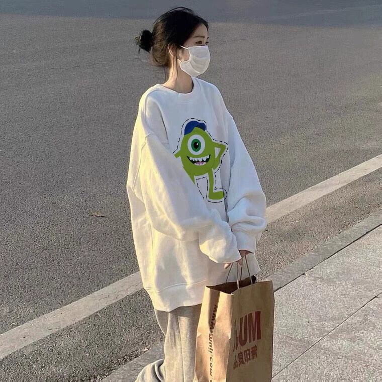漫画プリントラウンドネックスウェットシャツ女性春と秋のルーズスタイル BF 怠惰なスタイルカジュアルミッドレングスオーバーサイズジャケット スプリング 春物 オータム 秋物 Oネック 7460020054609800 | framboise21