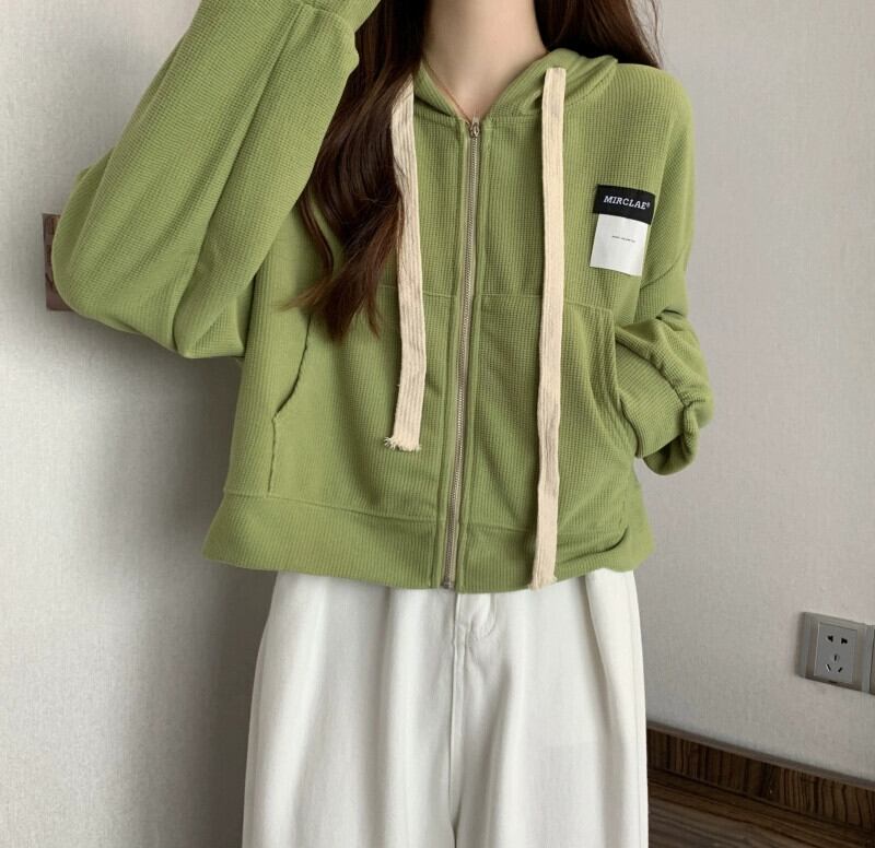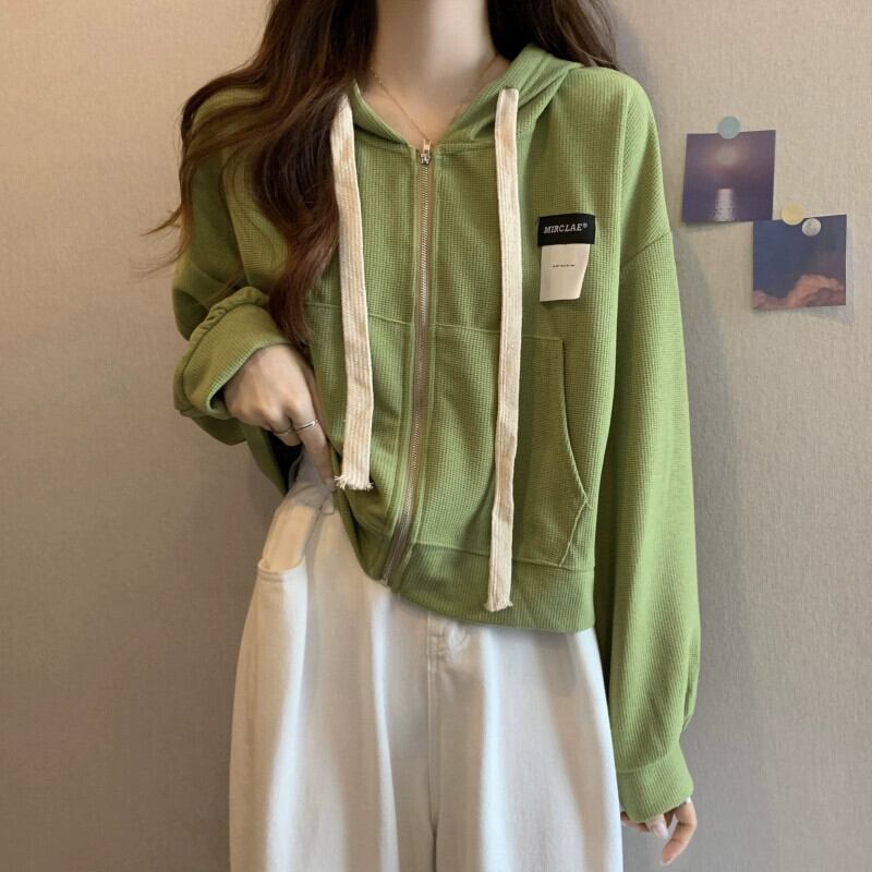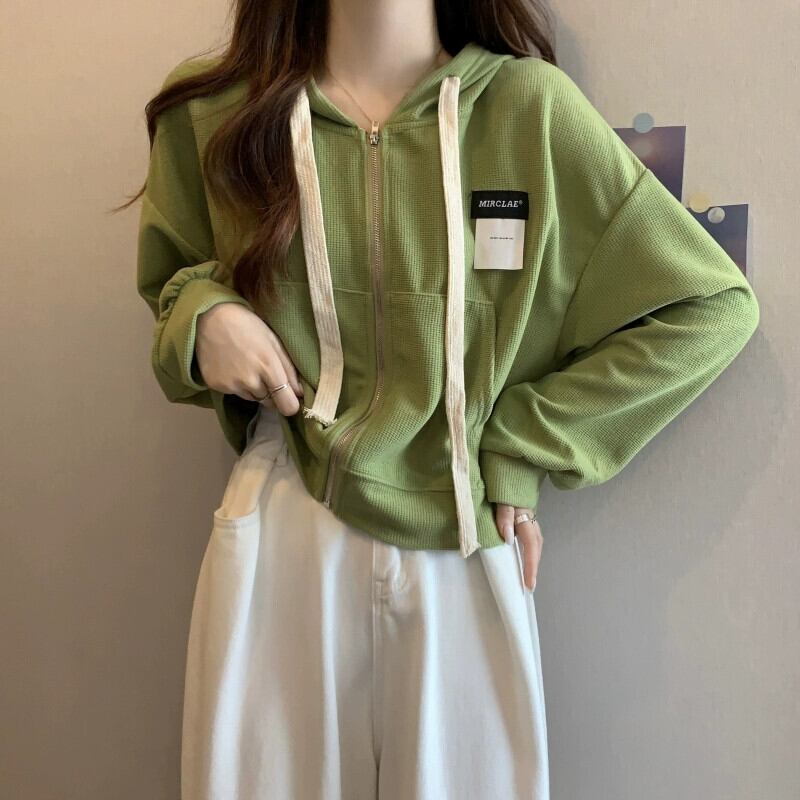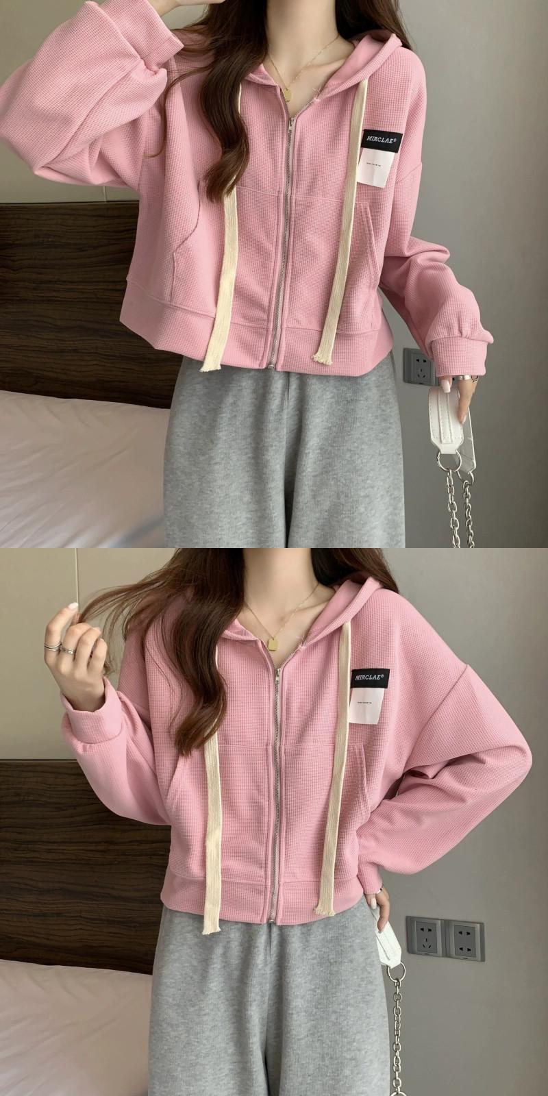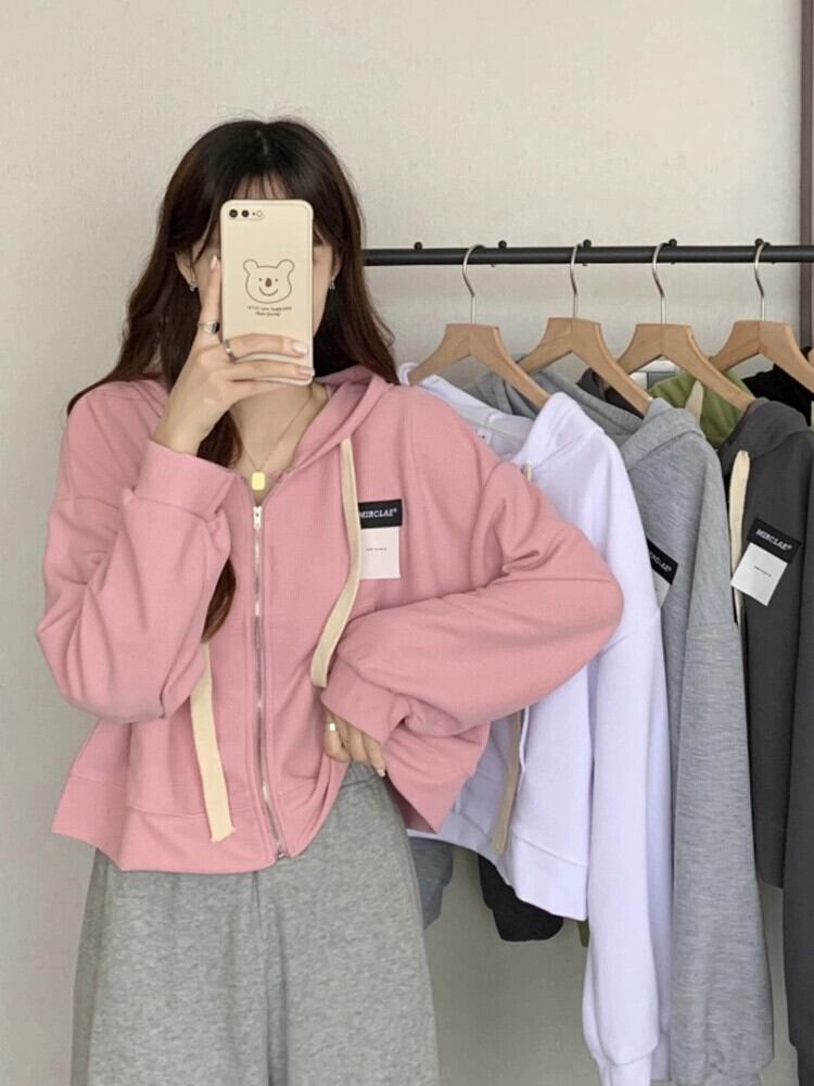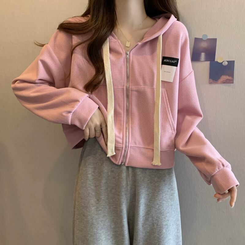 ピンクのフード付きカーディガントレーナージャケット女性春と秋のスタイルルーズ bf 怠惰なスタイルのジッパーショートトップイン スプリング 春物 オータム 秋物 7460065522280047 | framboise21