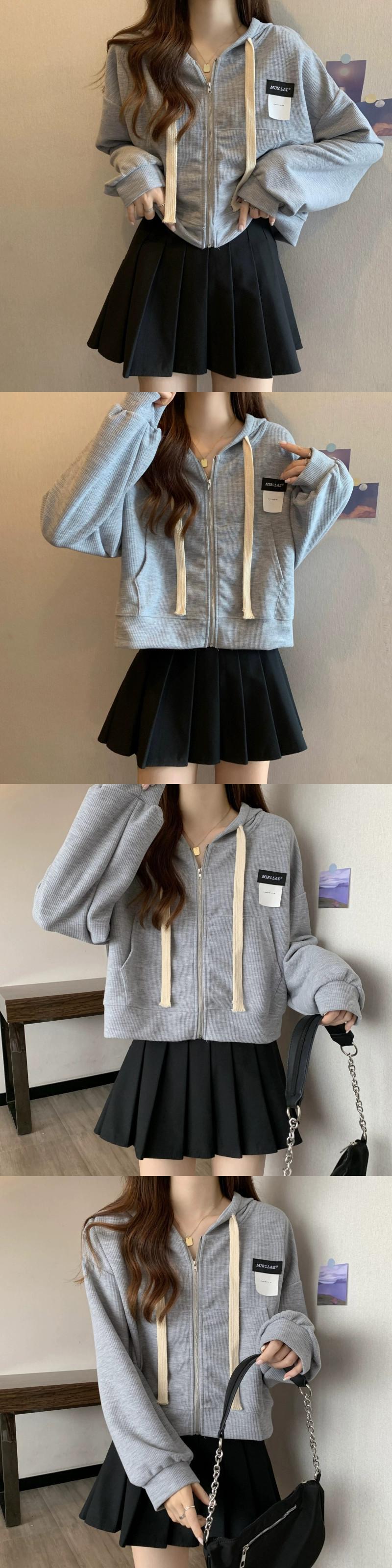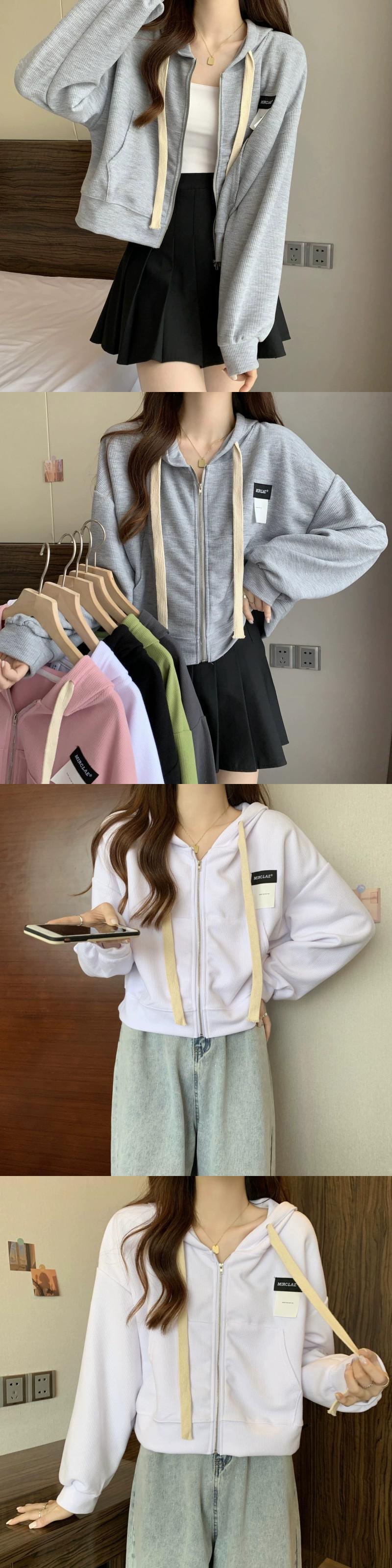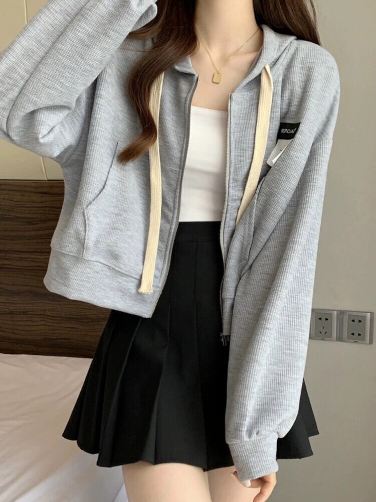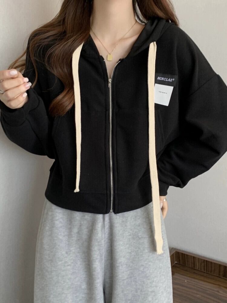 ピンクのフード付きカーディガントレーナージャケット女性春と秋のスタイルルーズ bf 怠惰なスタイルのジッパーショートトップイン スプリング 春物 オータム 秋物 7460065522280047 | framboise21