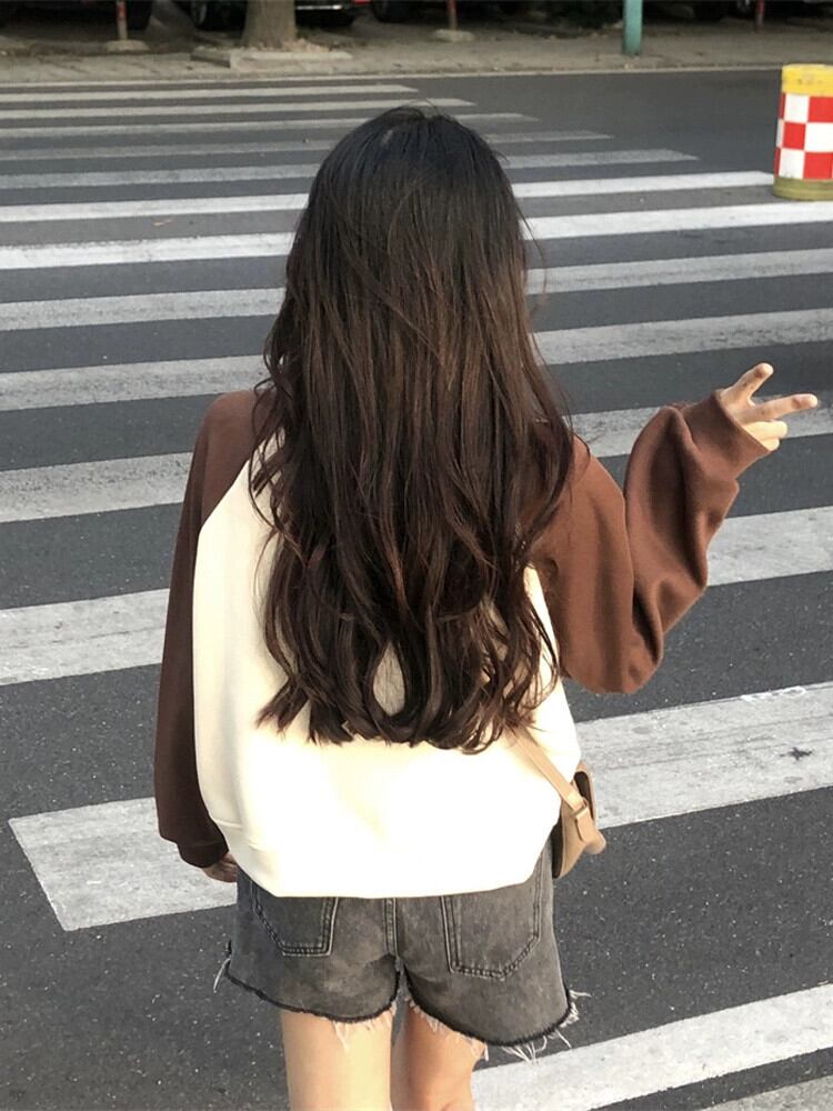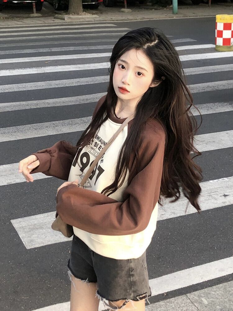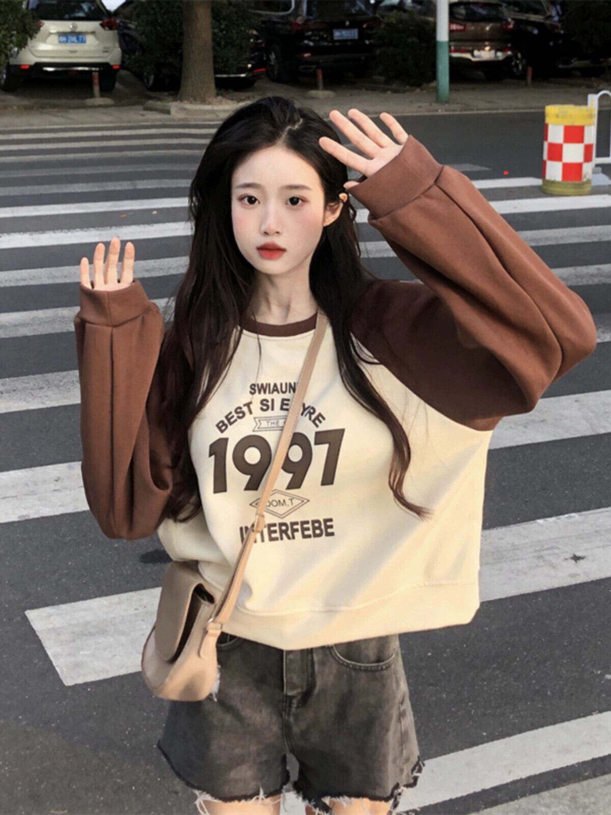 アメリカンショートラグラン長袖スウェットシャツの女性の2023春と秋の新しい人気のデザイン、ゆったりと多用途のプリントトップ ロング スプリング 春物 オータム 秋物 7460086690841570 | framboise21