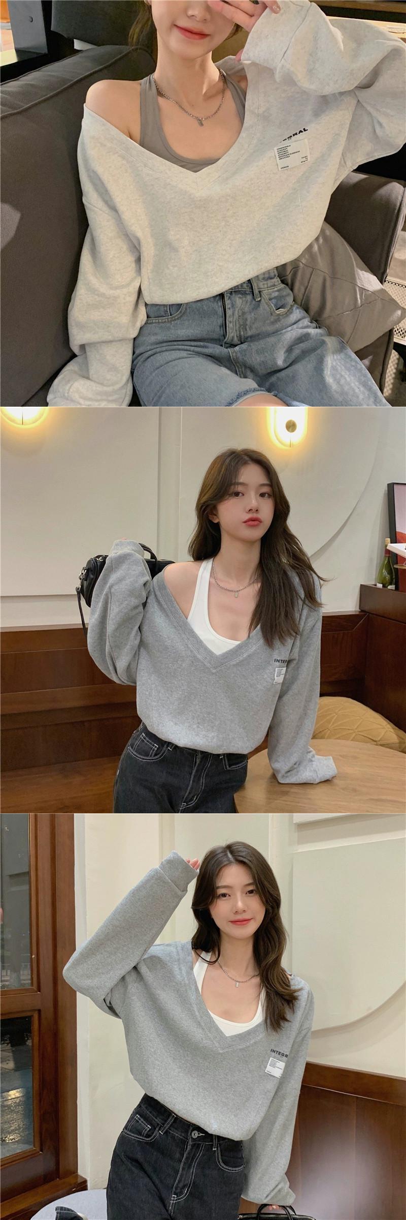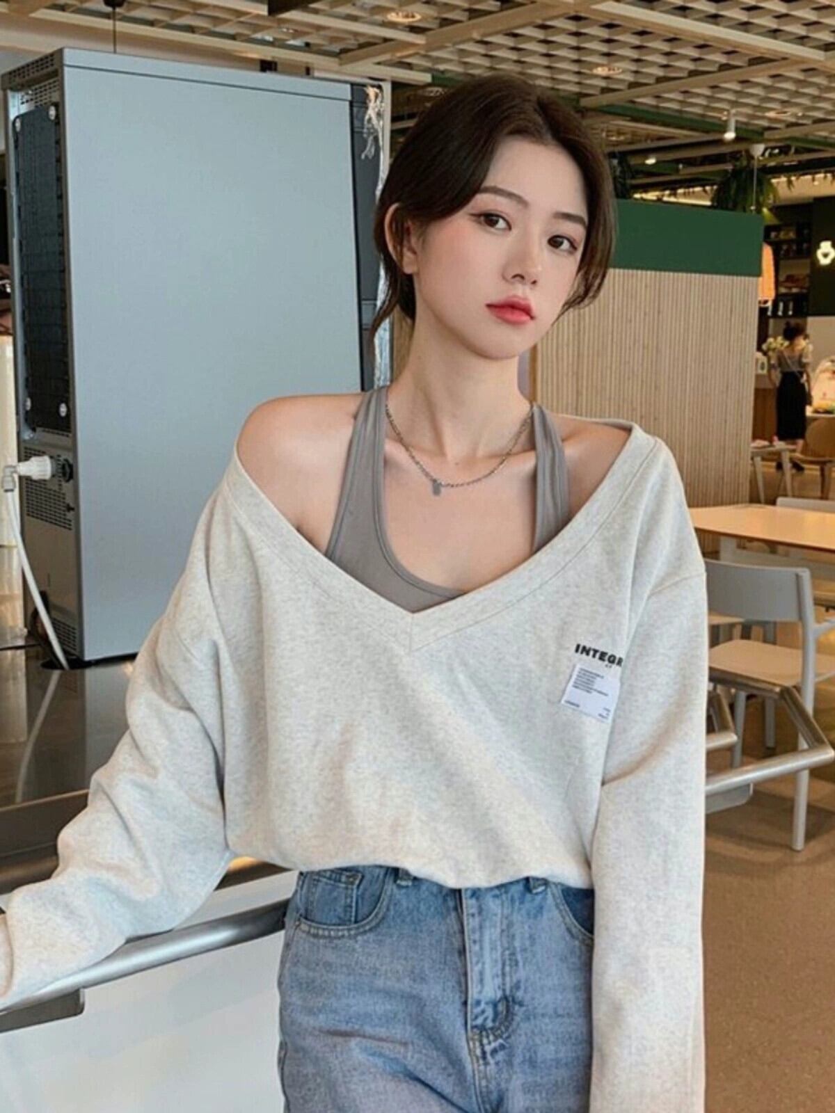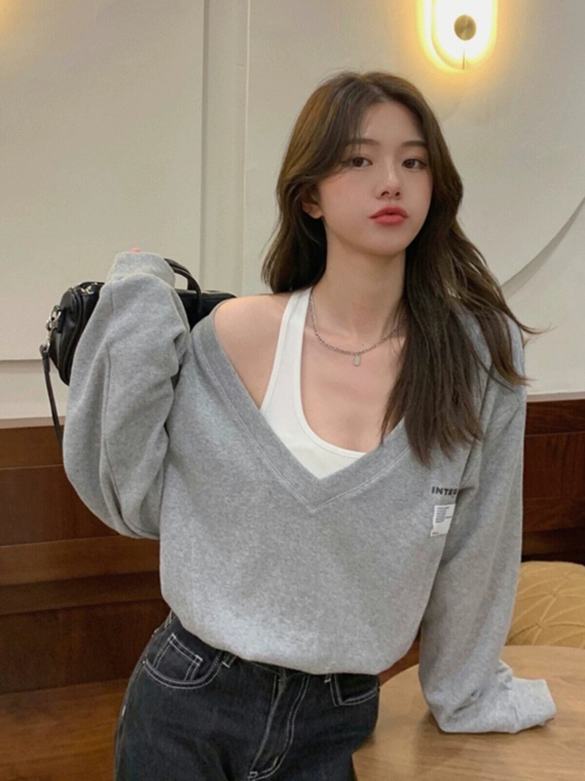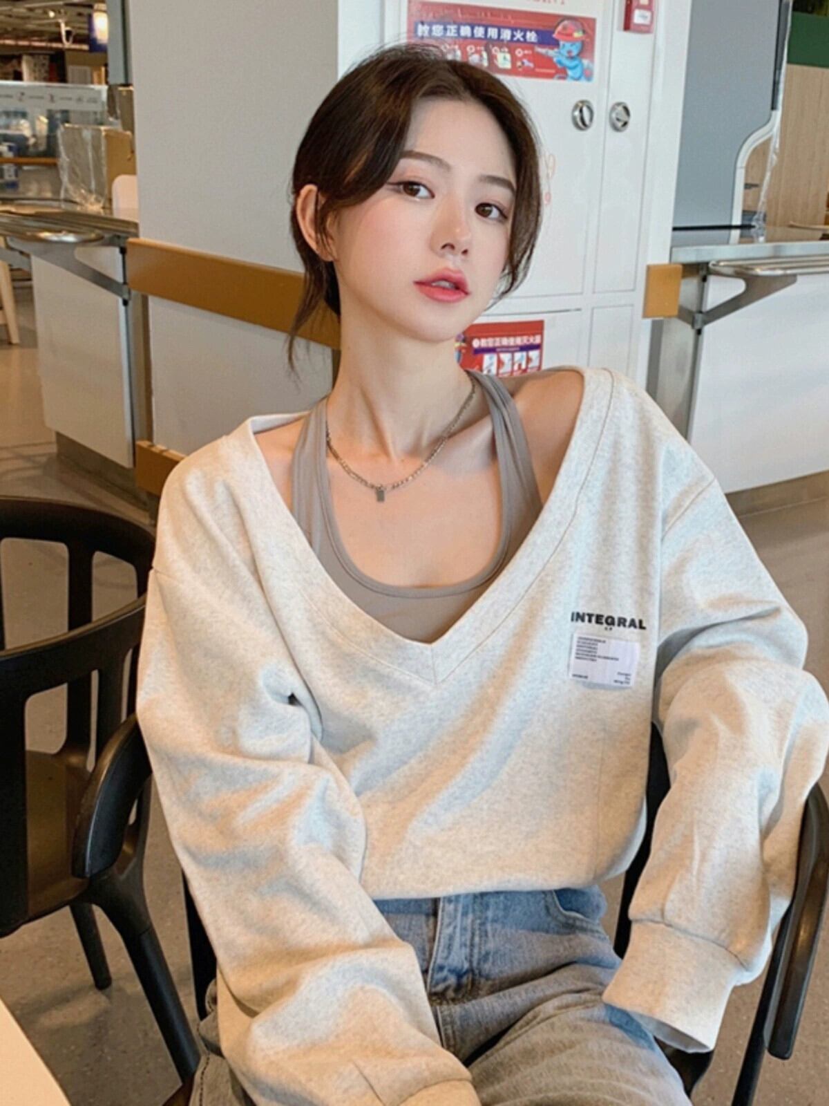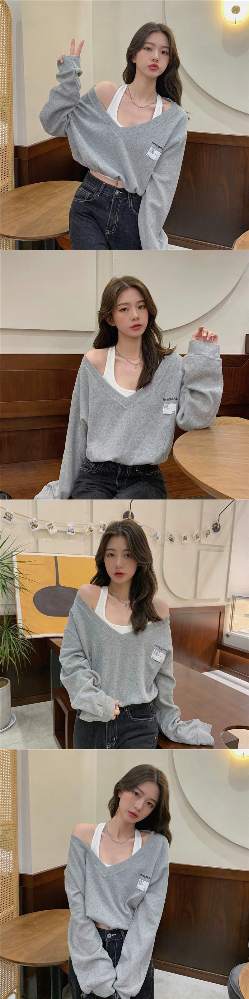 ホルターネックフェイクツーピースショートスウェットシャツ女性の春と秋のデザインニッチルーズ多用途プルオーバー長袖トップトレンディなイン ロング スプリング 春物 オータム 秋物 7460033198513748 | framboise21