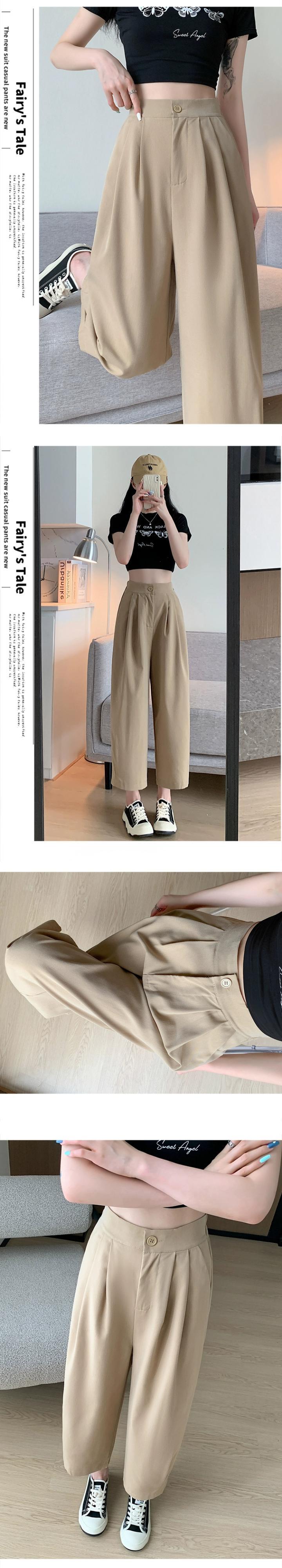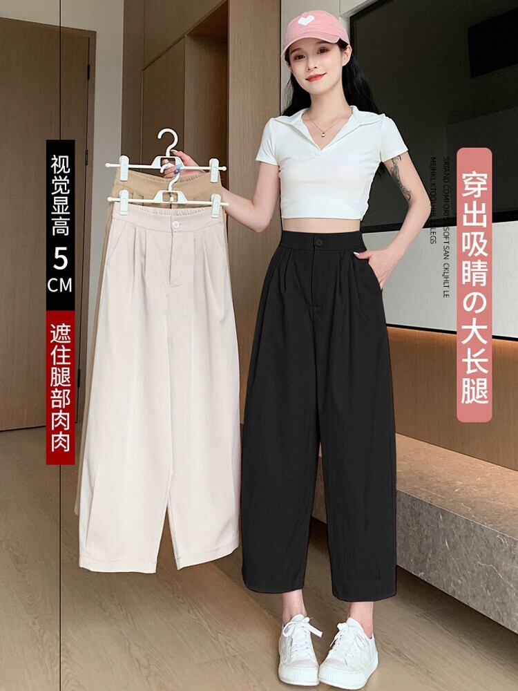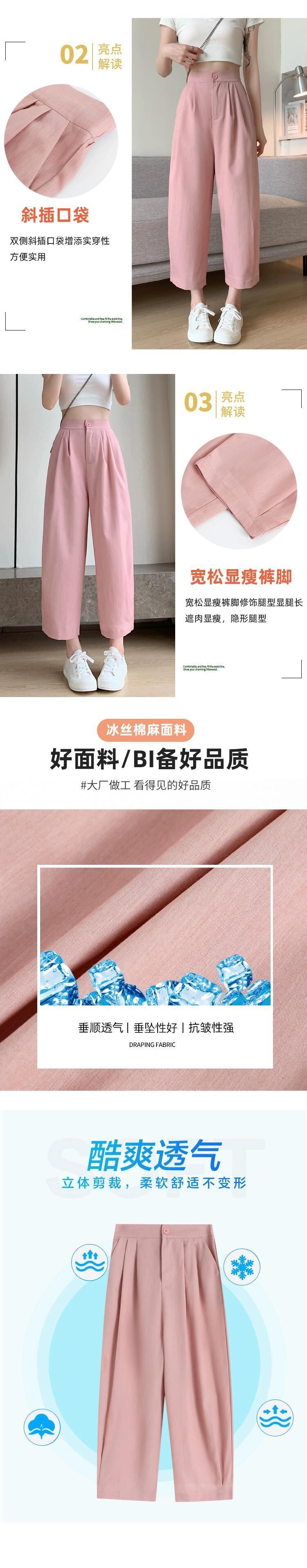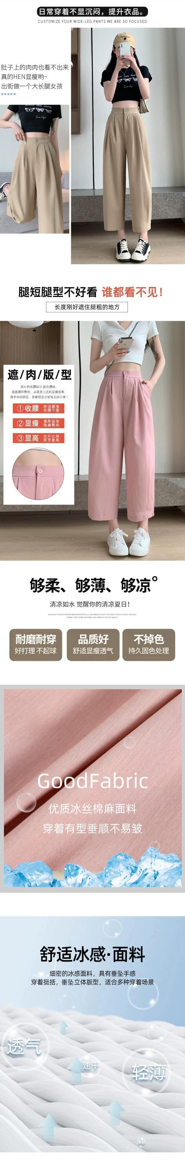 カーキ綿とリネンのパンツの女性の夏薄い 9 点パンツ小柄な人ゆったりワイドレッグハイウエストドレープストレートスーツパンツ ハイウェスト コットン サマー 夏物 ワイドパンツ 7460018359119083 | framboise21