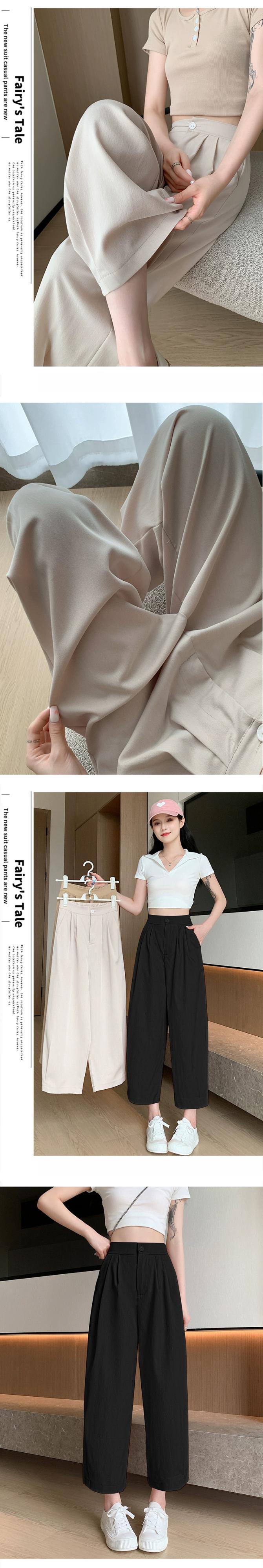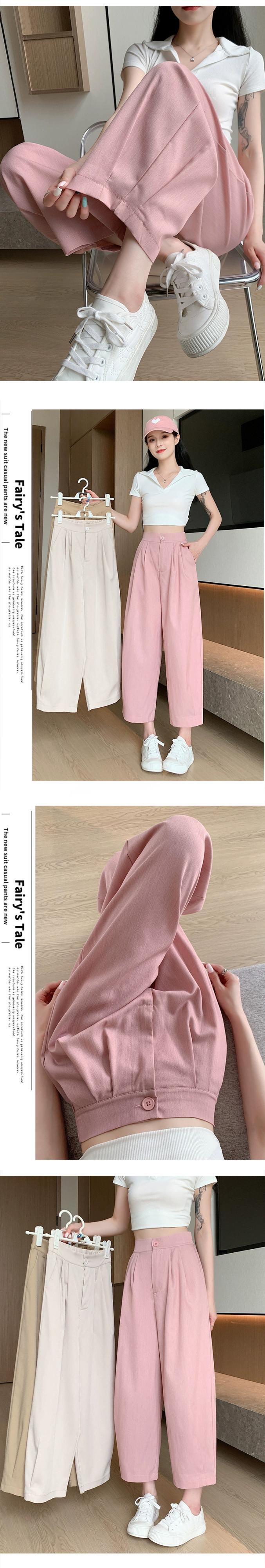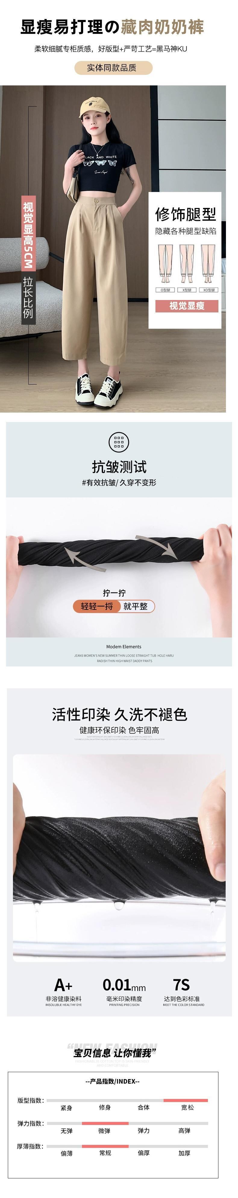 カーキ綿とリネンのパンツの女性の夏薄い 9 点パンツ小柄な人ゆったりワイドレッグハイウエストドレープストレートスーツパンツ ハイウェスト コットン サマー 夏物 ワイドパンツ 7460018359119083 | framboise21