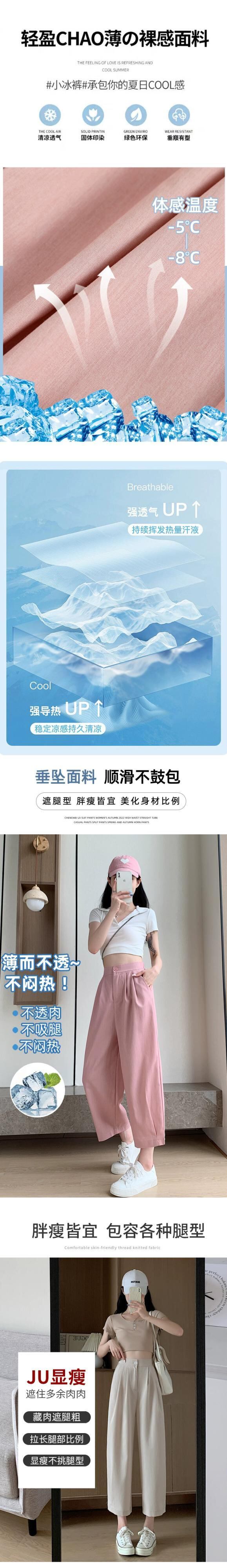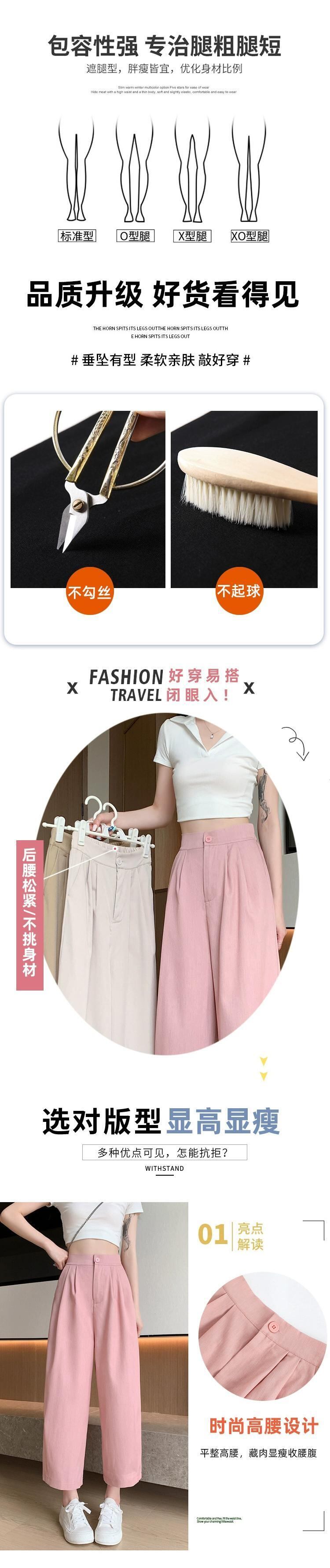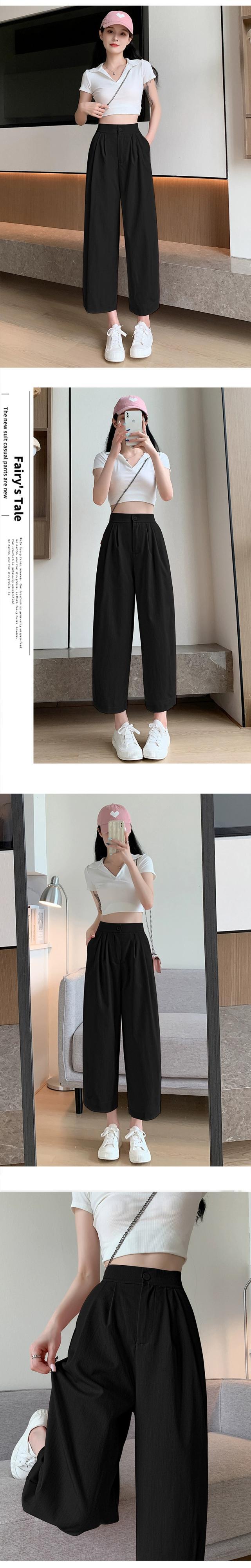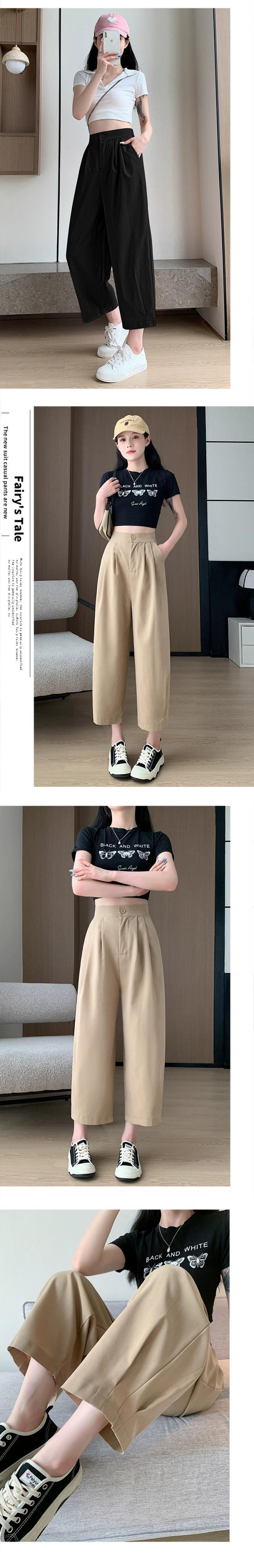 カーキ綿とリネンのパンツの女性の夏薄い 9 点パンツ小柄な人ゆったりワイドレッグハイウエストドレープストレートスーツパンツ ハイウェスト コットン サマー 夏物 ワイドパンツ 7460018359119083 | framboise21