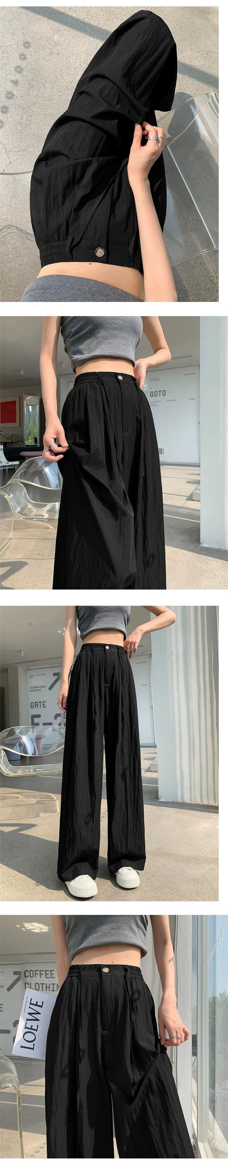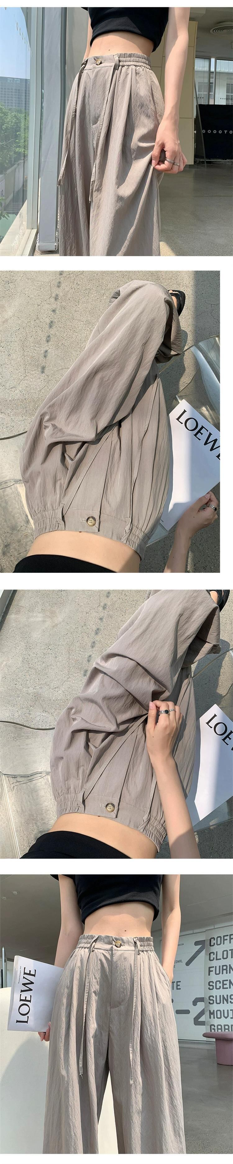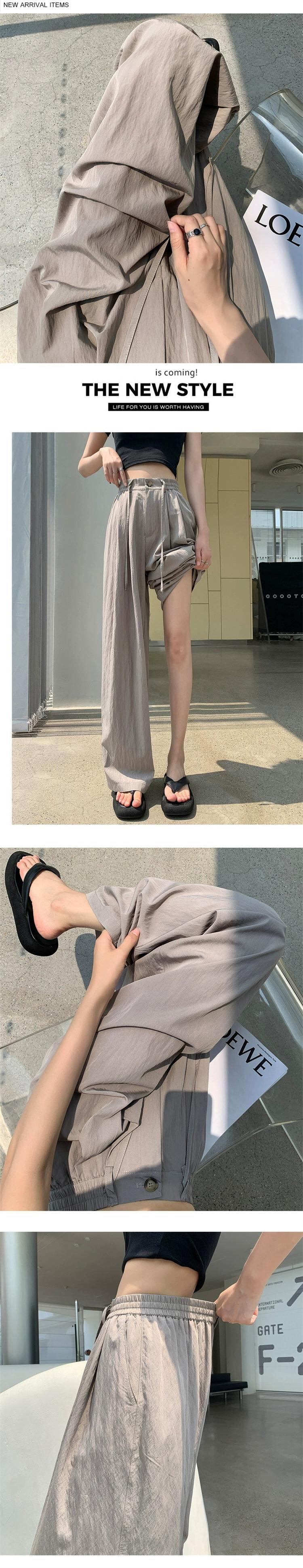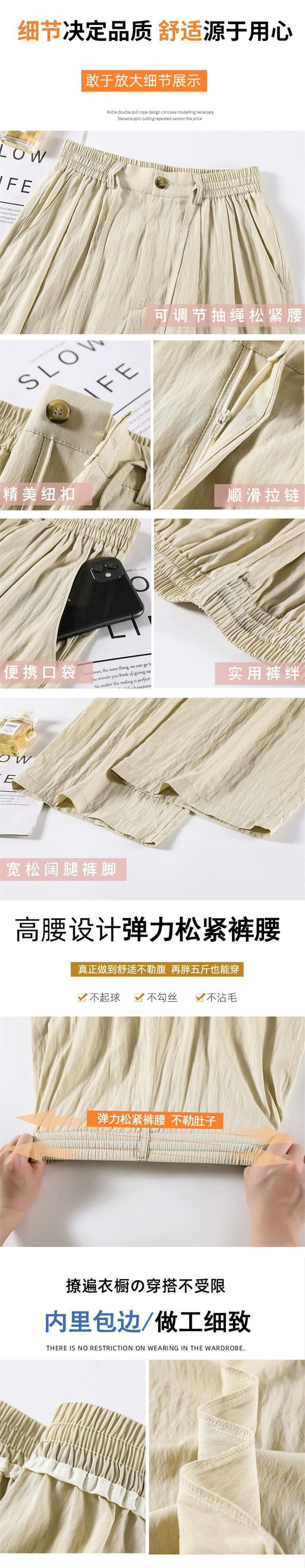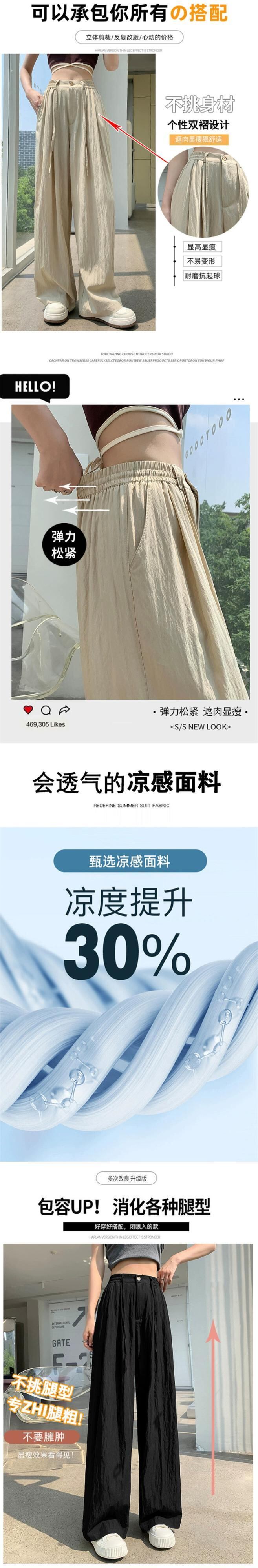 ドレーピーコットンとリネンのワイドレッグパンツレディース、夏用の薄いアイスシルクストレートパンツ、カジュアルなルーズハイウエストスリムフロアレングスのヤマモトパンツ サマー 夏物 746005225638566 | framboise21