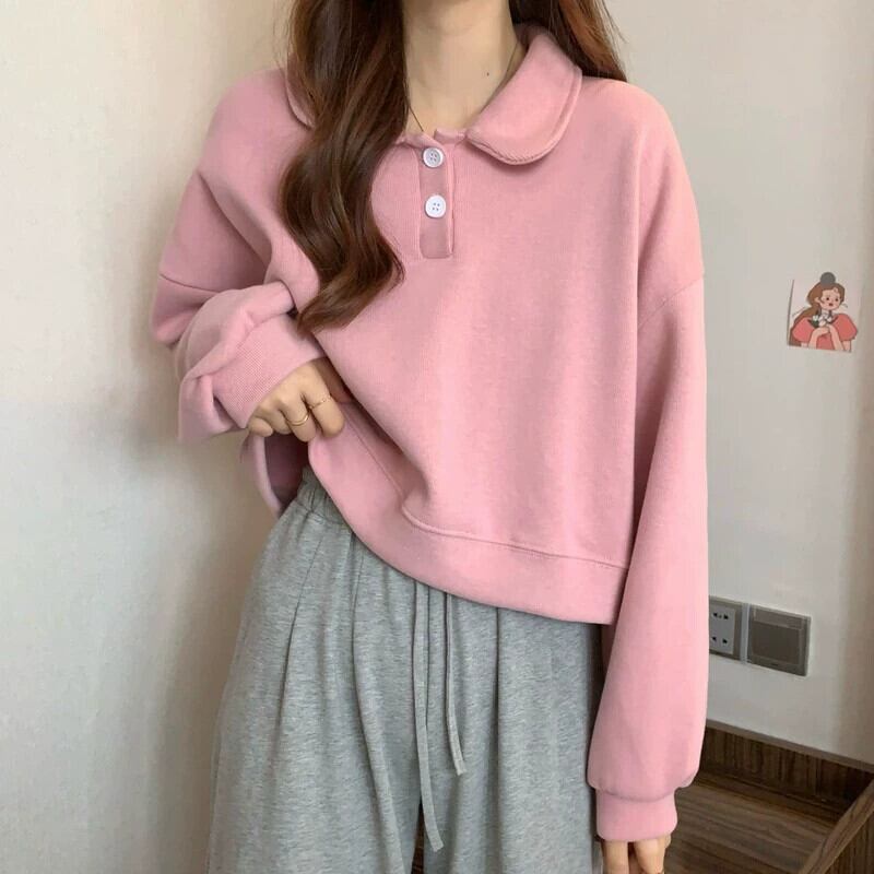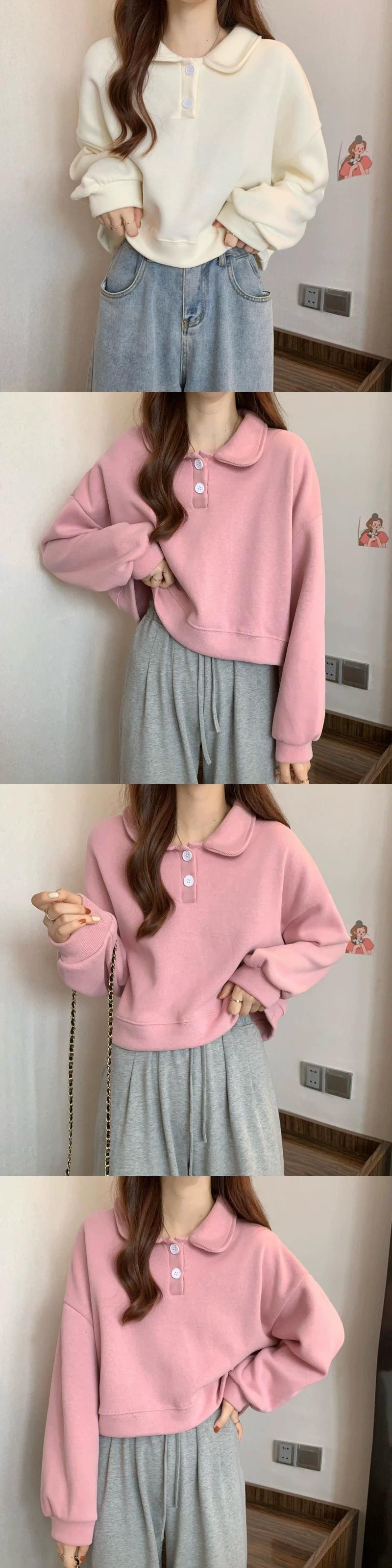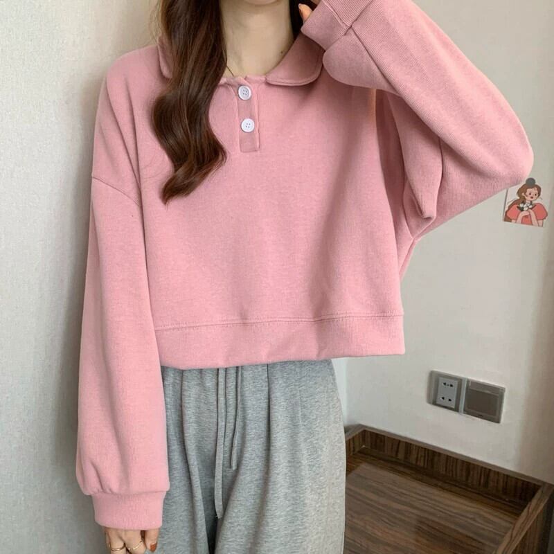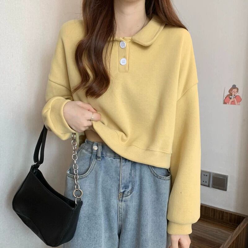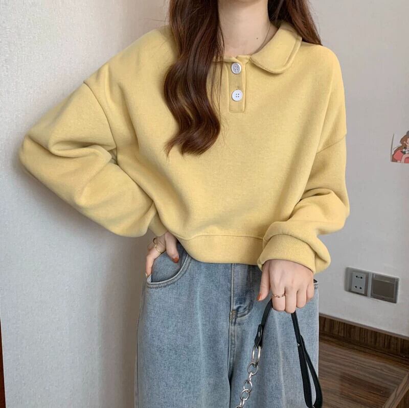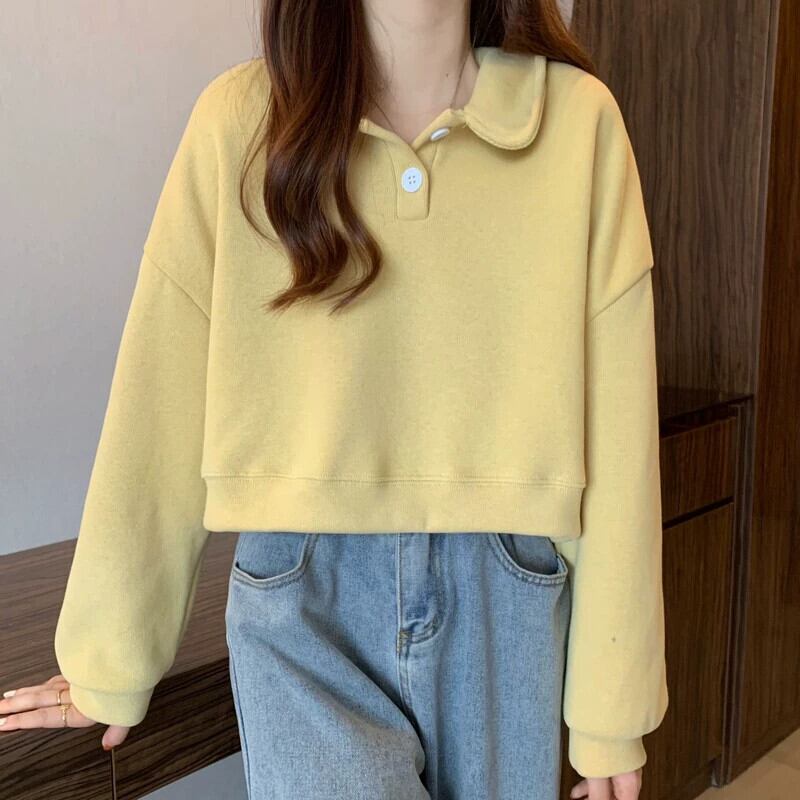 クリーミーホワイトプルオーバーポロカラースウェットシャツ女性の春と秋のルーズデザインニッチカジュアルショート長袖トップ ロング スプリング 春物 オータム 秋物 7460035461784278 | framboise21
