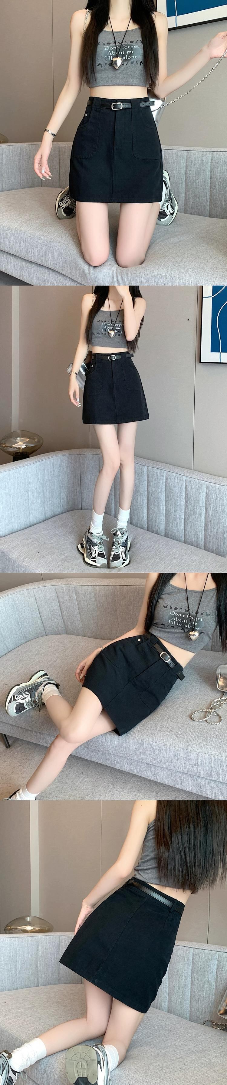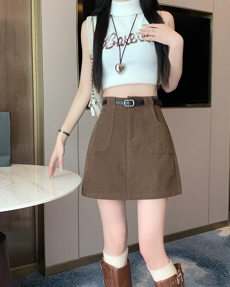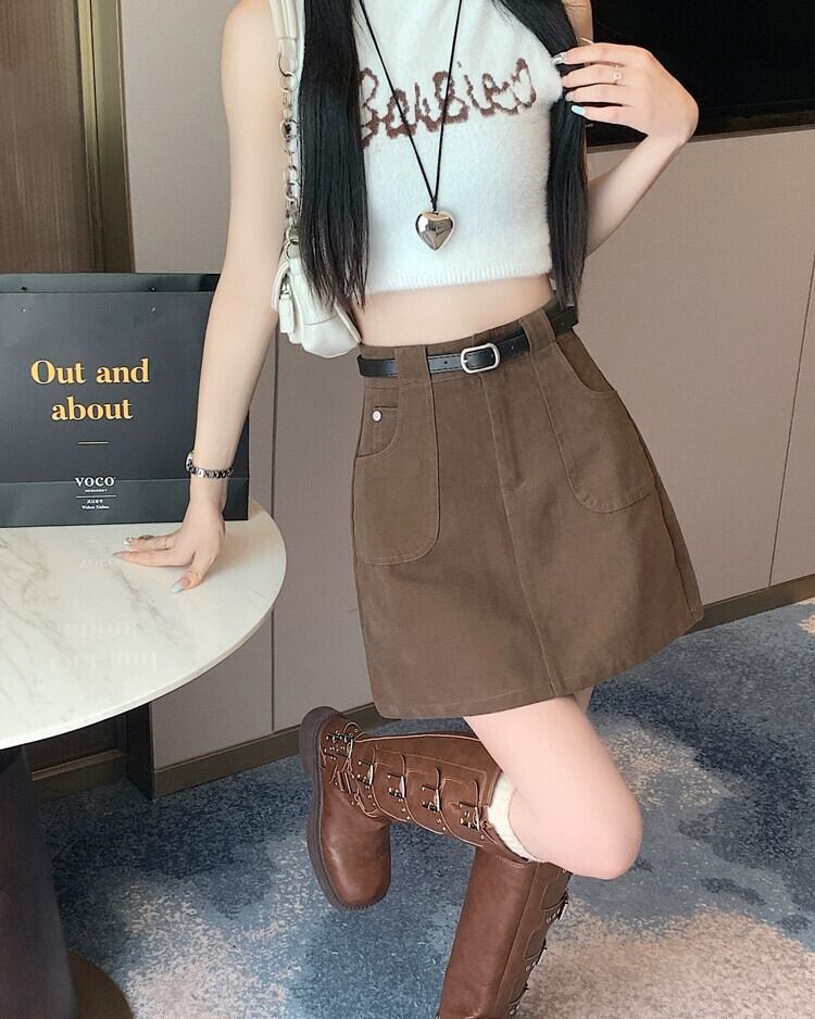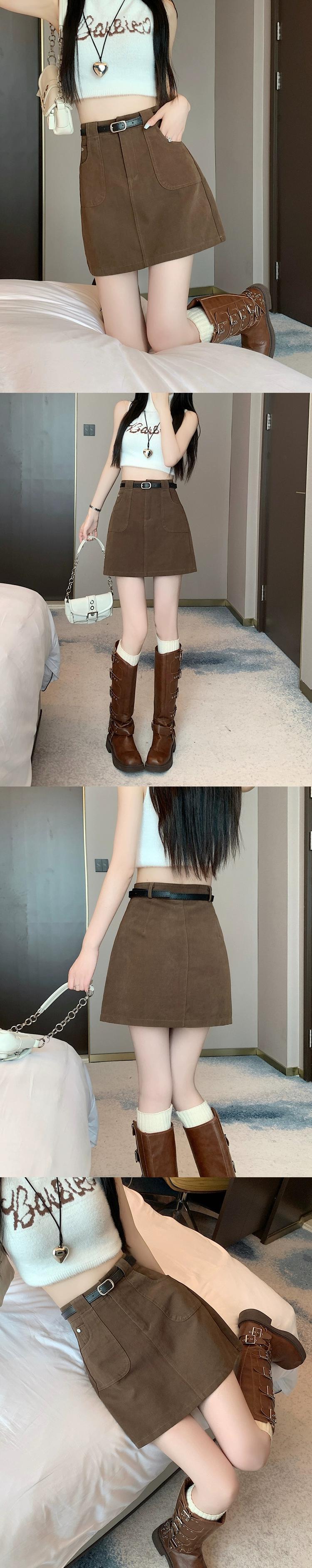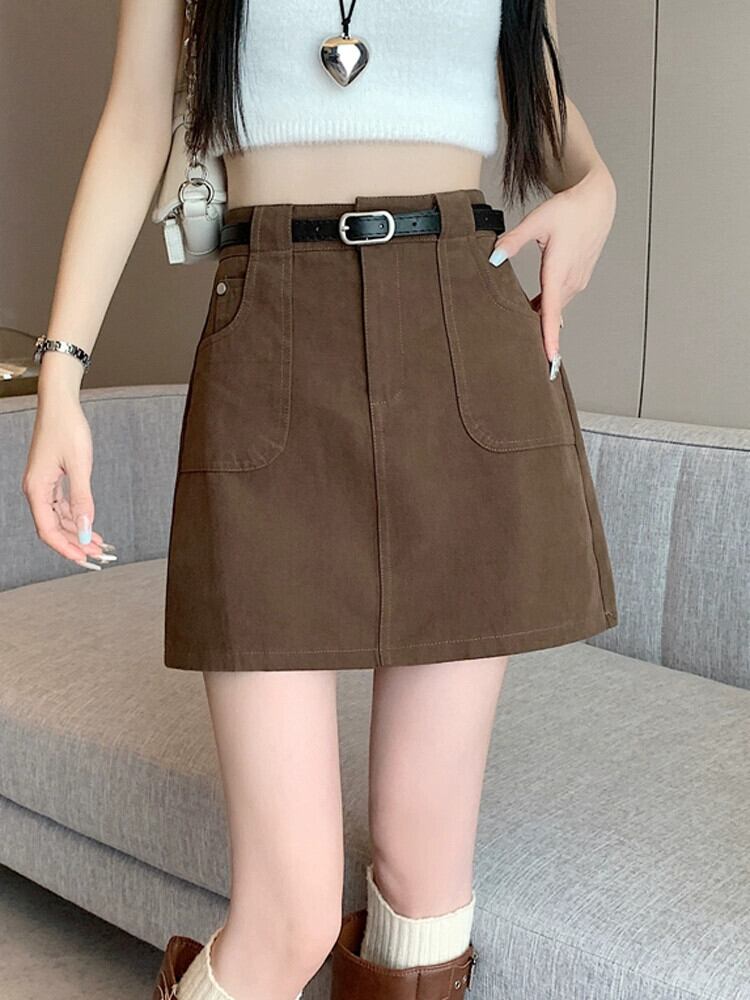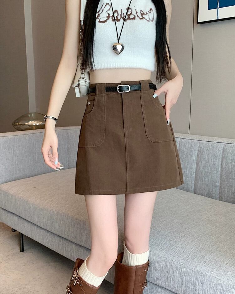 -ウエスト A ラインデニムショートスカート女性の夏 2023 新しい露出防止ヒップハグスカートスリミングブラウンスカート サマー 夏物 Aライン 7460066091203997 | framboise21