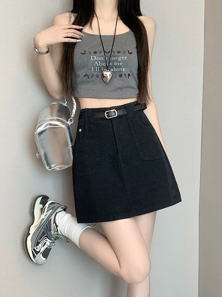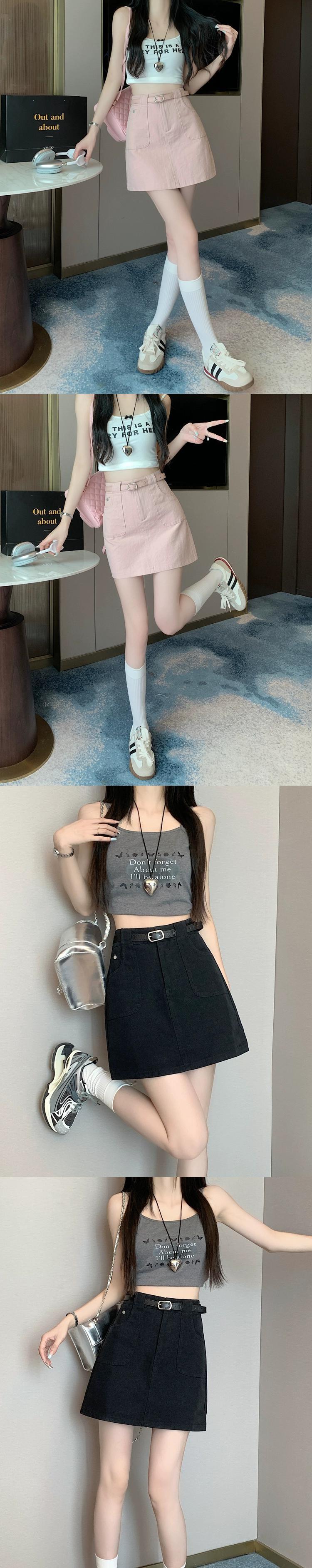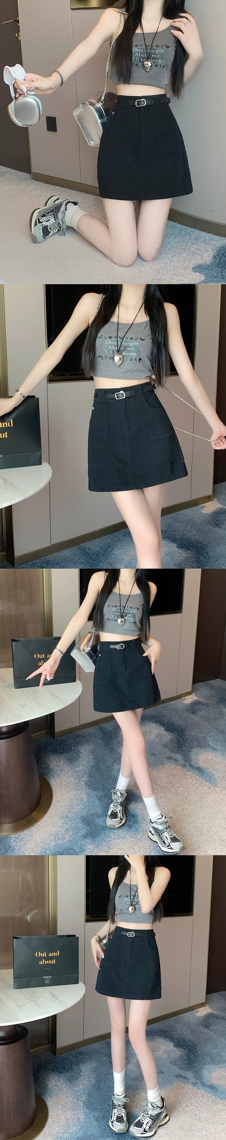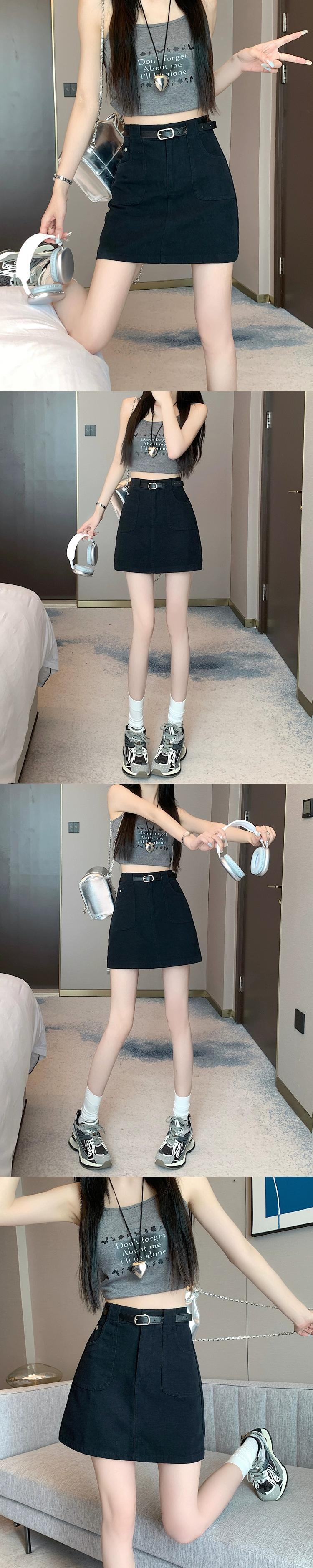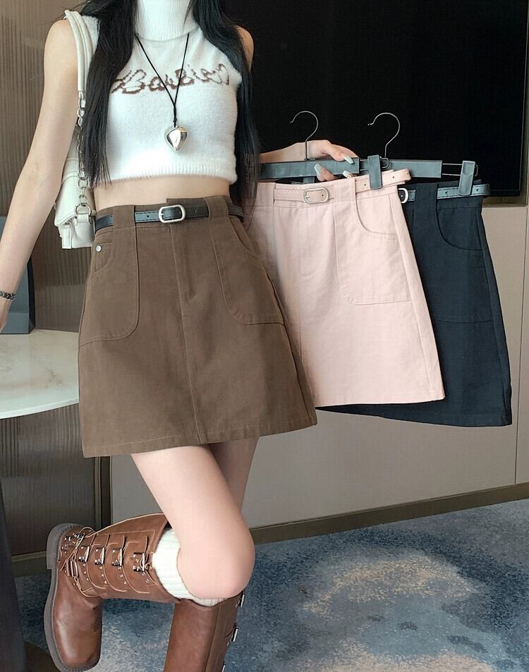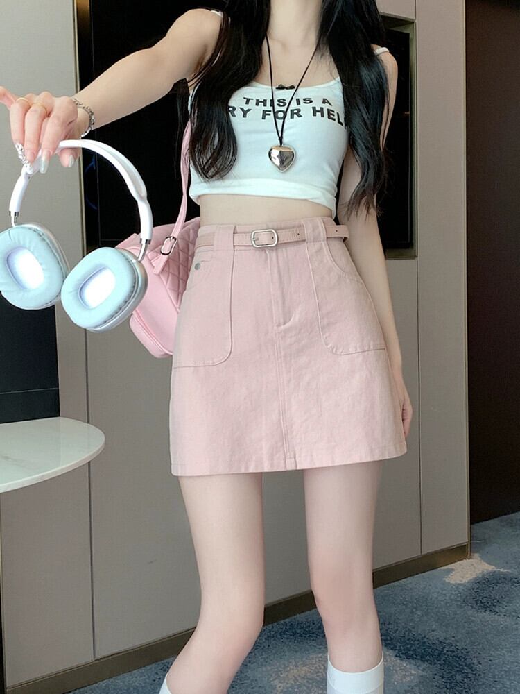 -ウエスト A ラインデニムショートスカート女性の夏 2023 新しい露出防止ヒップハグスカートスリミングブラウンスカート サマー 夏物 Aライン 7460066091203997 | framboise21