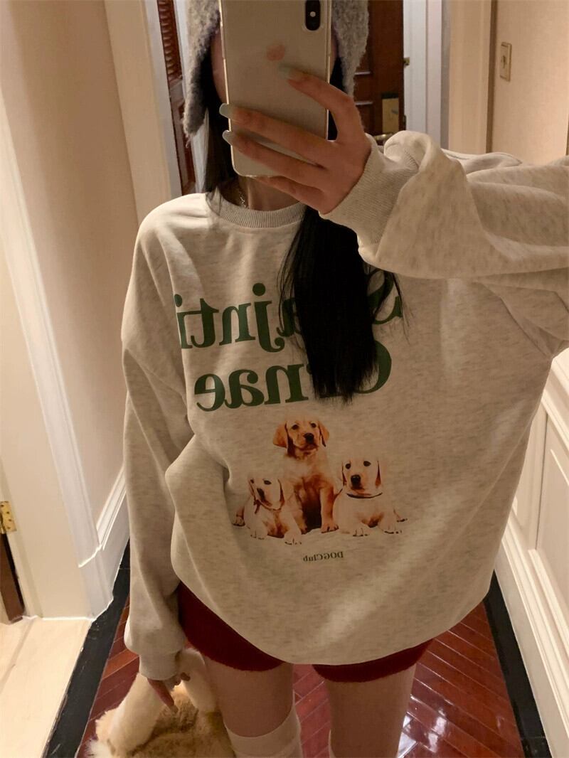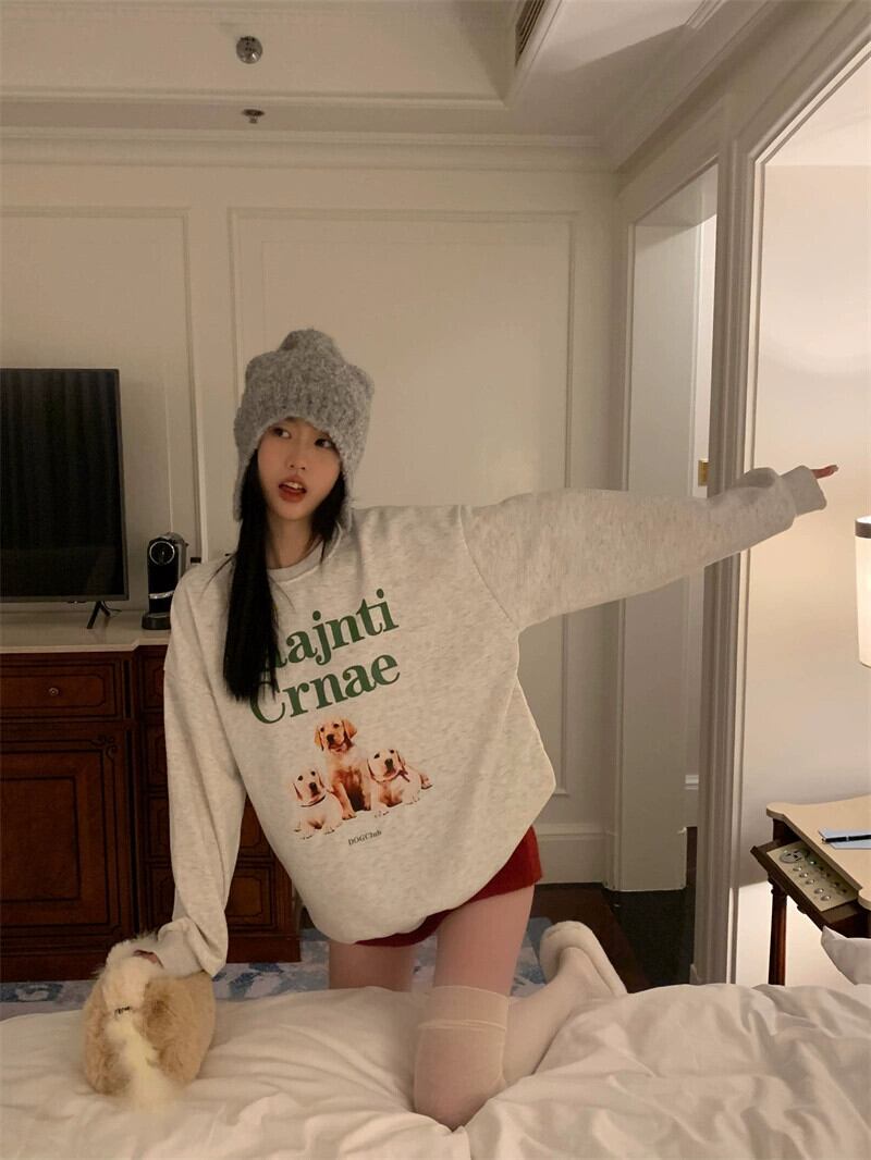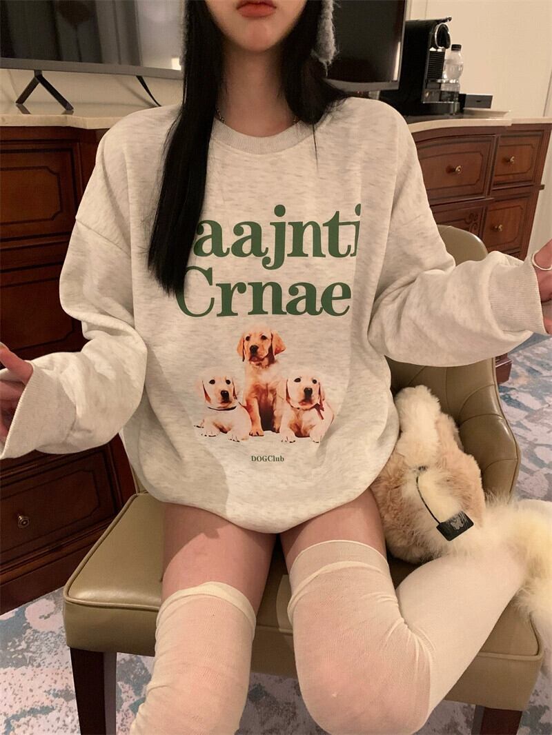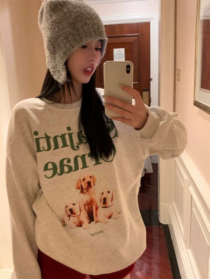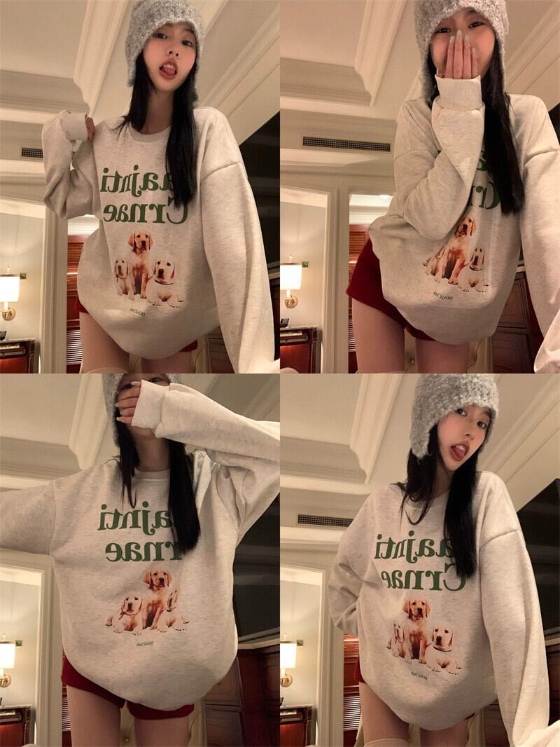 アメリカのミッドレングスのカップルスウェットシャツの女性の春と秋の 2023 新デザインルーズ怠惰なスタイルプルオーバーラウンドネックトップ スプリング 春物 オータム 秋物 Oネック 746003830429088 | framboise21