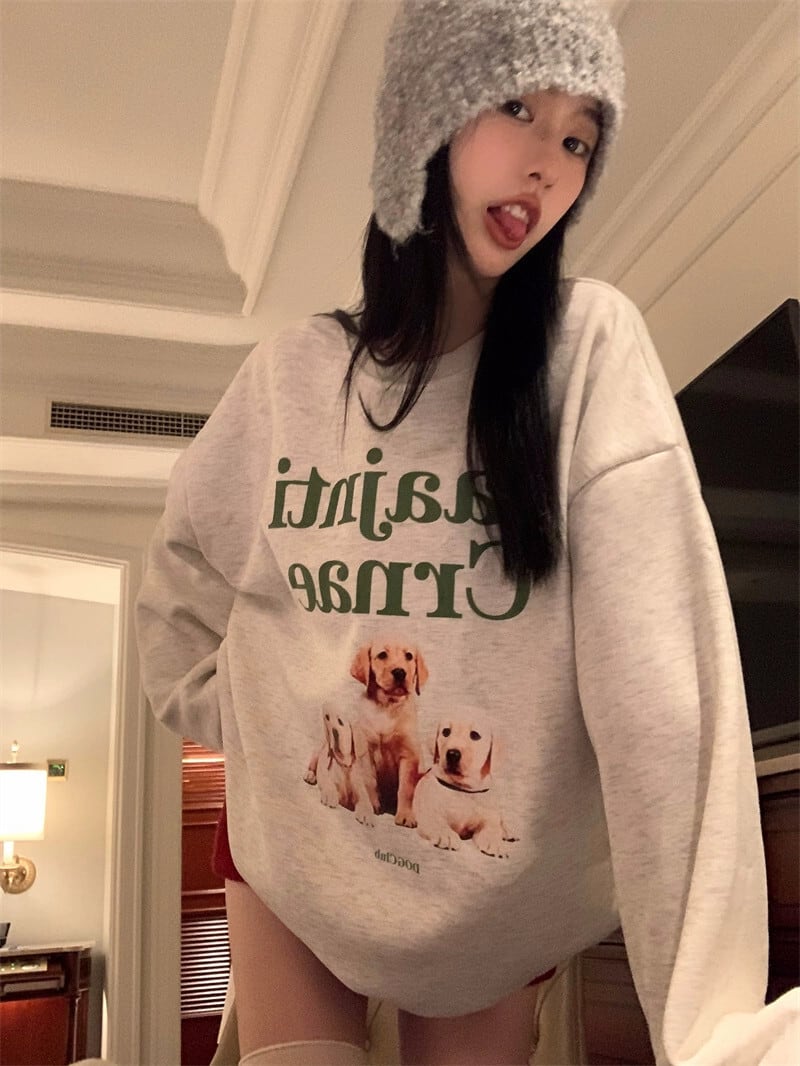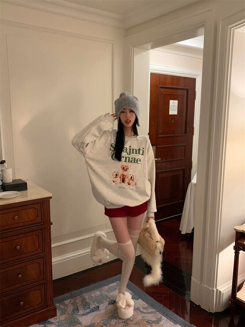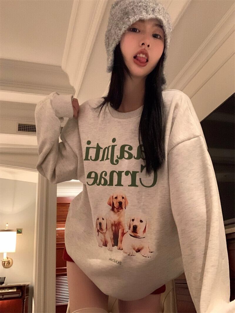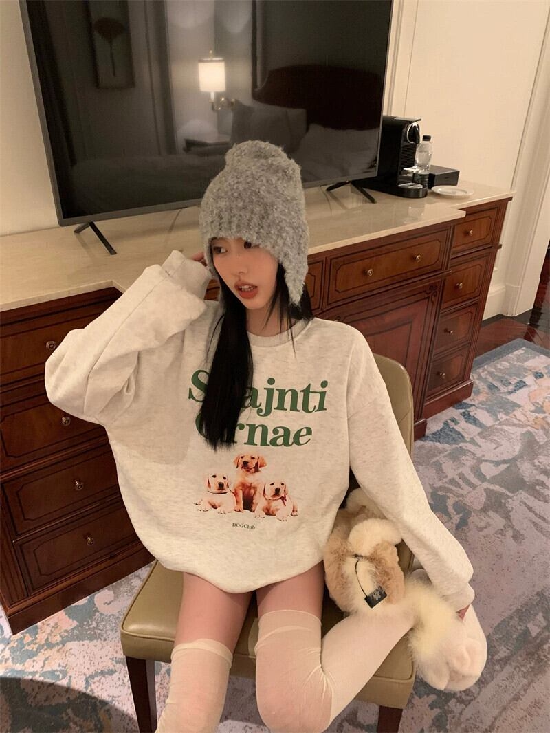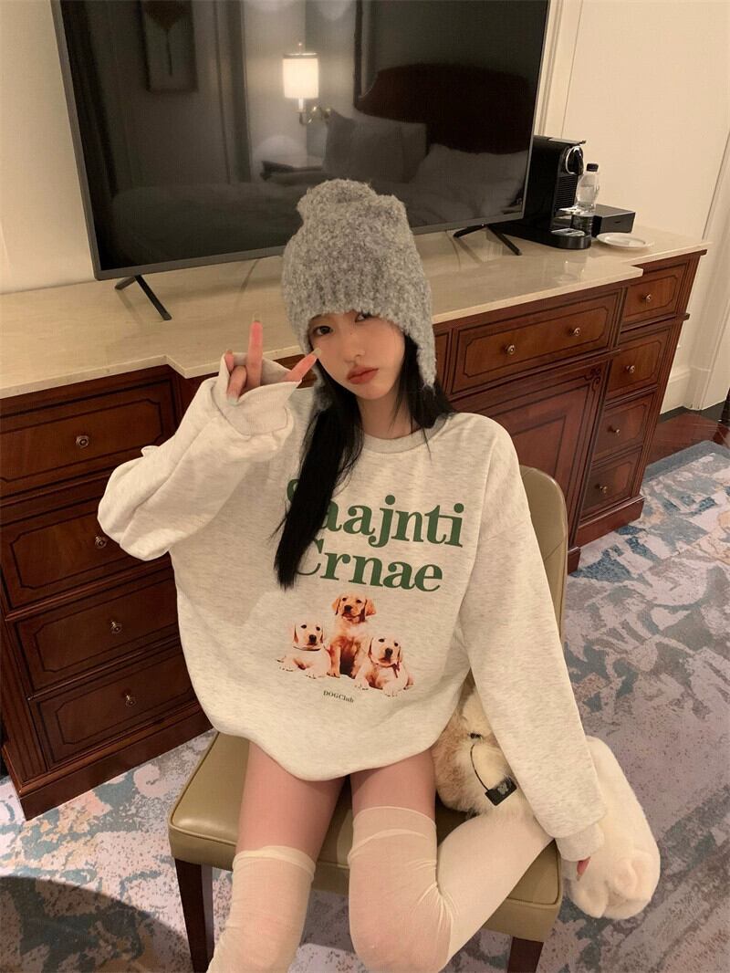 アメリカのミッドレングスのカップルスウェットシャツの女性の春と秋の 2023 新デザインルーズ怠惰なスタイルプルオーバーラウンドネックトップ スプリング 春物 オータム 秋物 Oネック 746003830429088 | framboise21