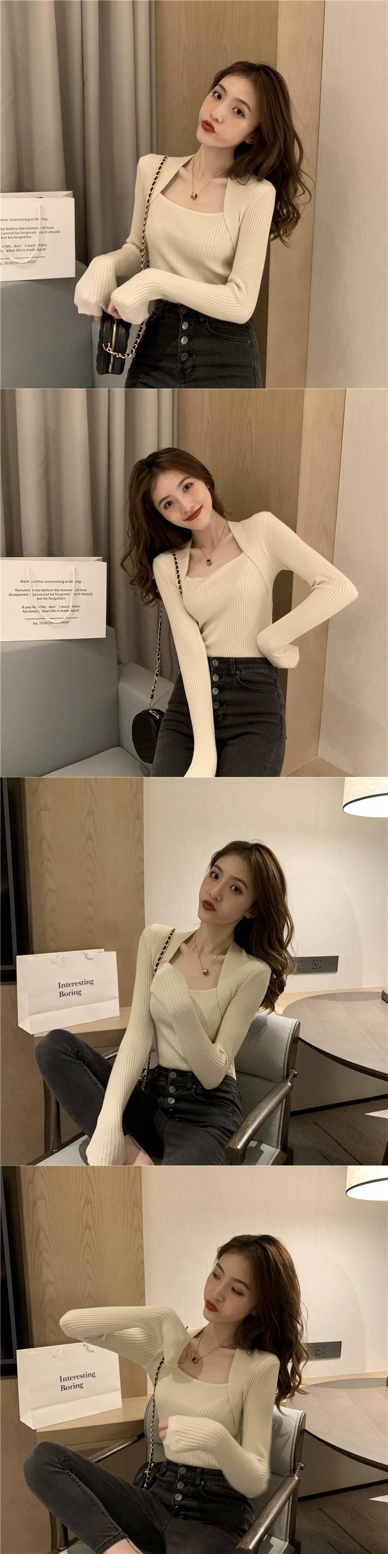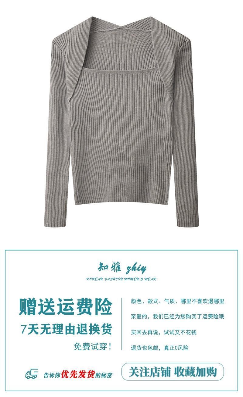 春、秋、冬のショートインナーレイヤリングシャツレディース、ファッショナブルで西洋風のデザイン、スリムセーター、スクエアネック、長袖ニットトップ ロング スプリング 春物 オータム 秋物 ウィンター 冬物 スクウェア 7460076719087085 | framboise21