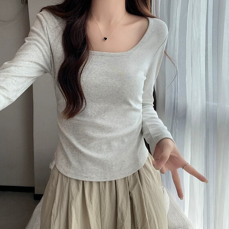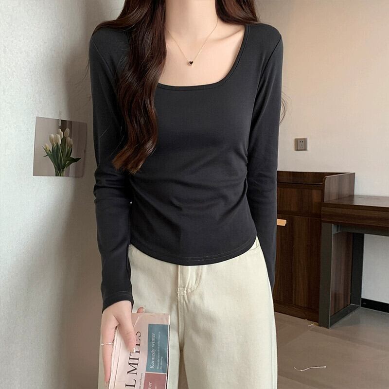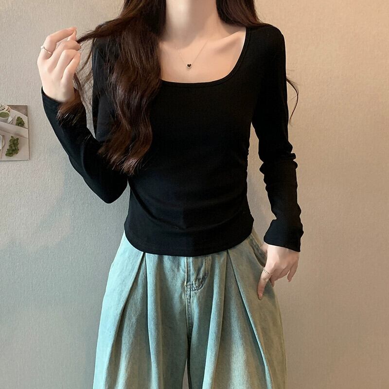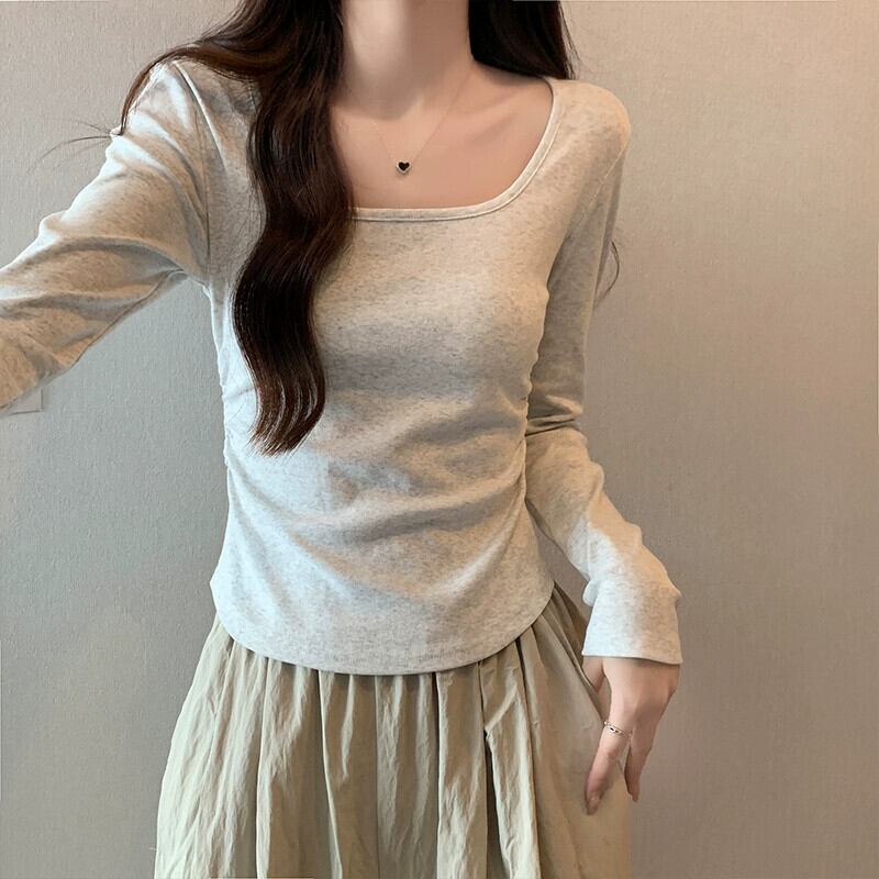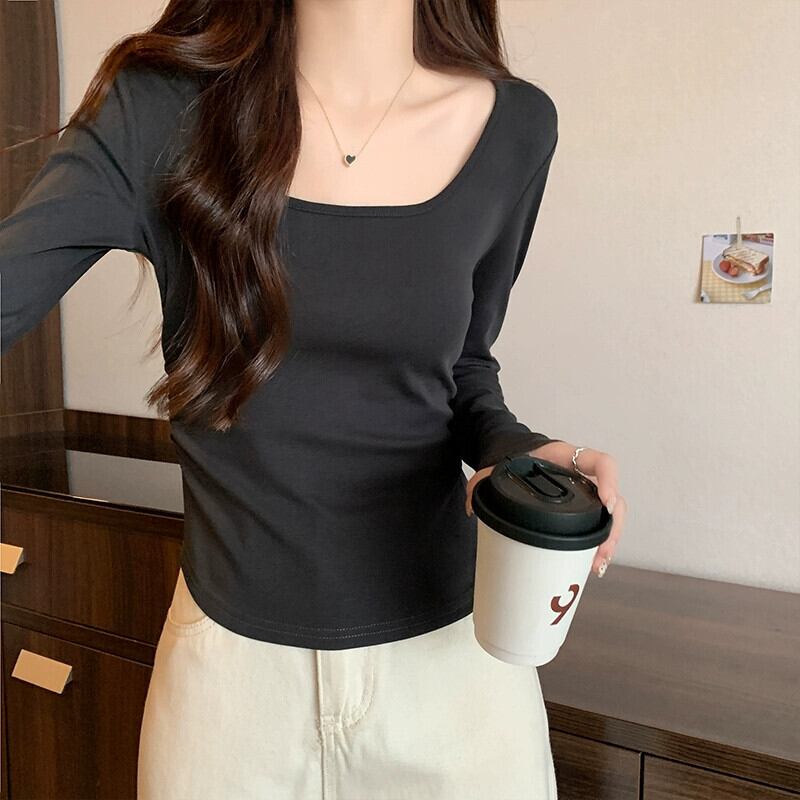 不規則なショート長袖ボトリングシャツ女性、2023春と秋の新しいスタイル、スリムフィットインナースクエアネックTシャツトップ ロング スプリング 春物 オータム 秋物 スクウェア 7460039346507975 | framboise21