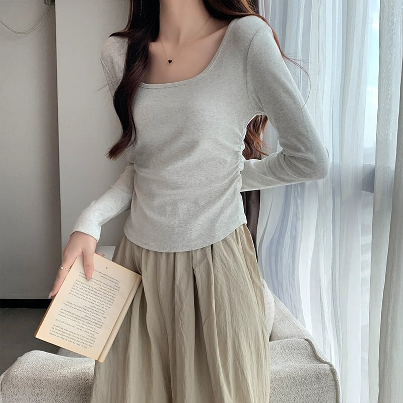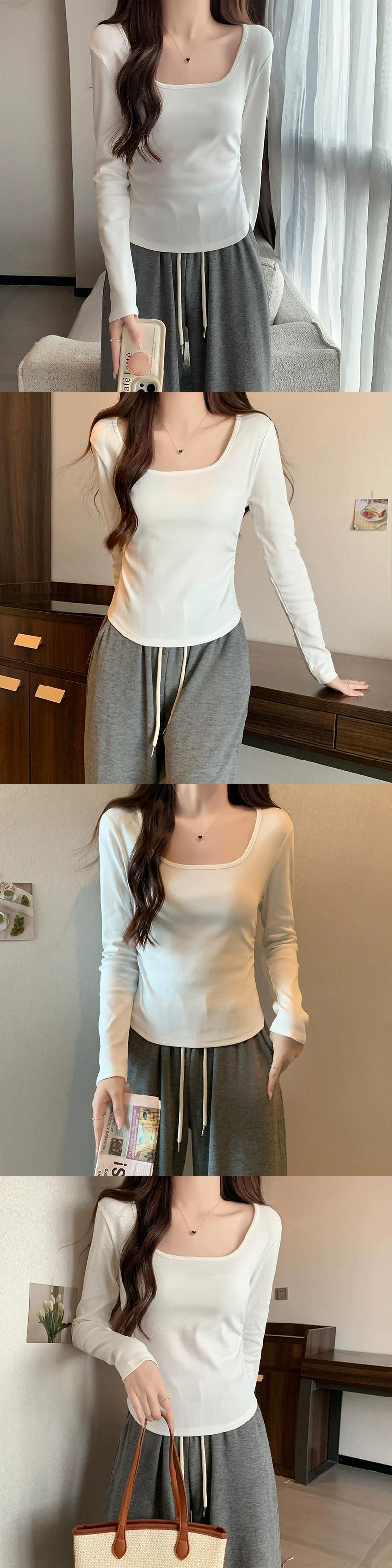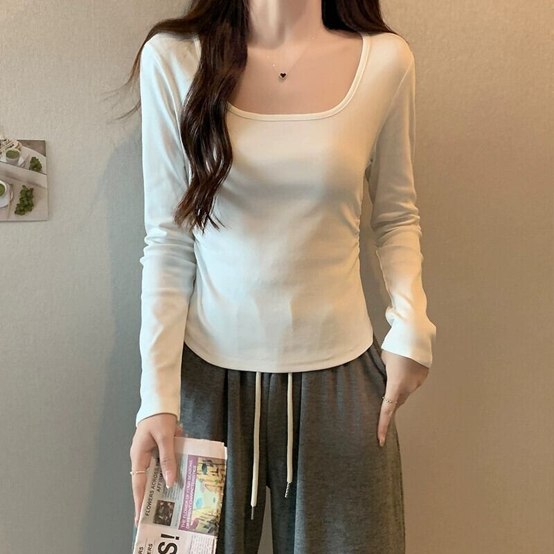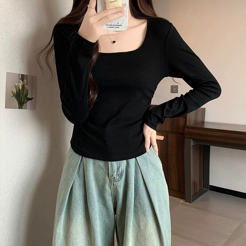 不規則なショート長袖ボトリングシャツ女性、2023春と秋の新しいスタイル、スリムフィットインナースクエアネックTシャツトップ ロング スプリング 春物 オータム 秋物 スクウェア 7460039346507975 | framboise21