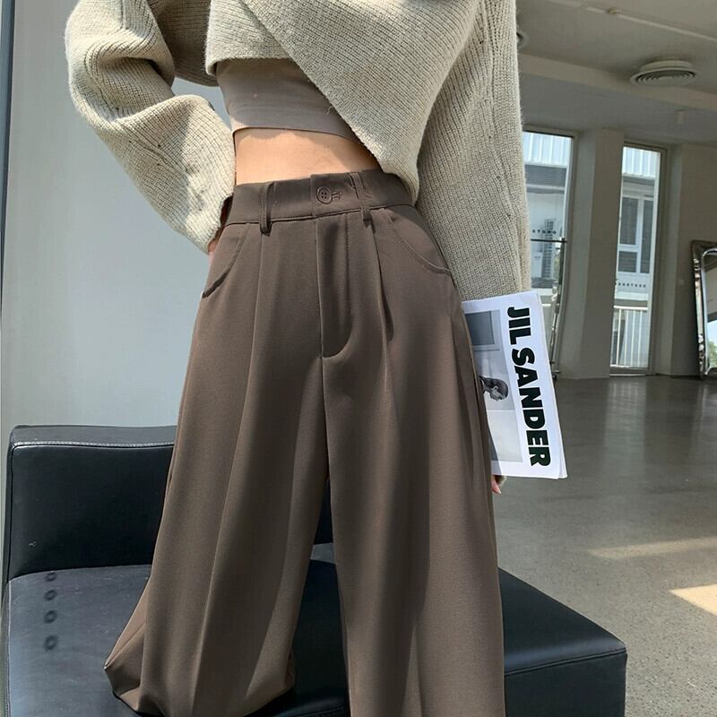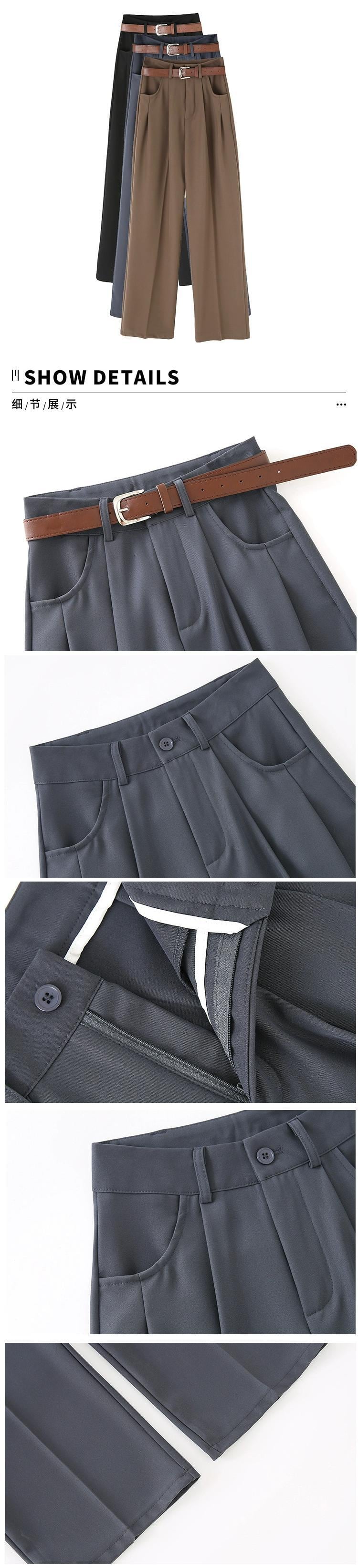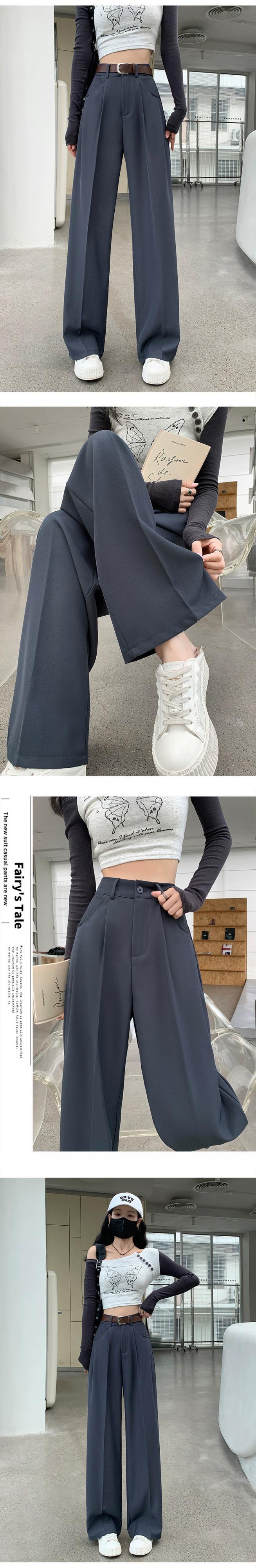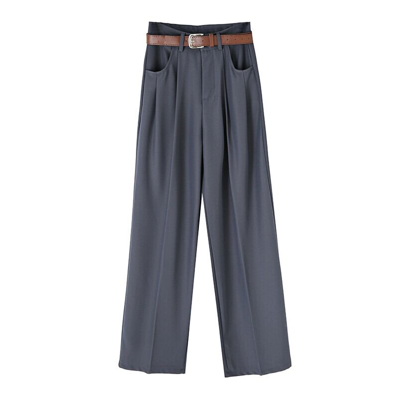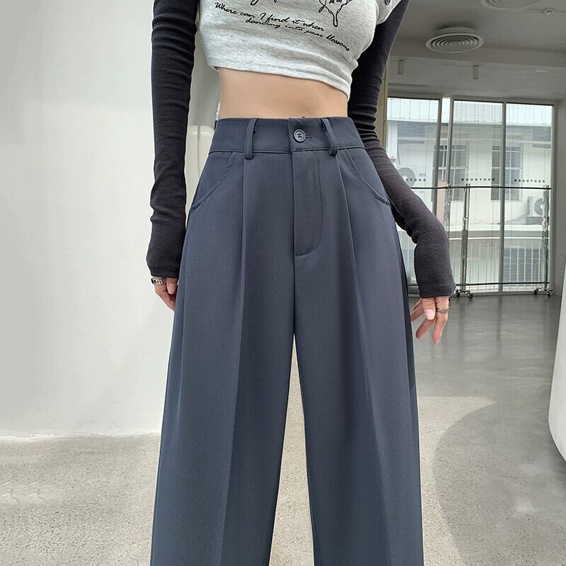 グレーのカジュアルスーツパンツレディース、春と秋のナローストレートワイドレッグパンツ、ルーズスリミングハイウエストシガレットパンツ スプリング 春物 オータム 秋物 7460075067787408 | framboise21