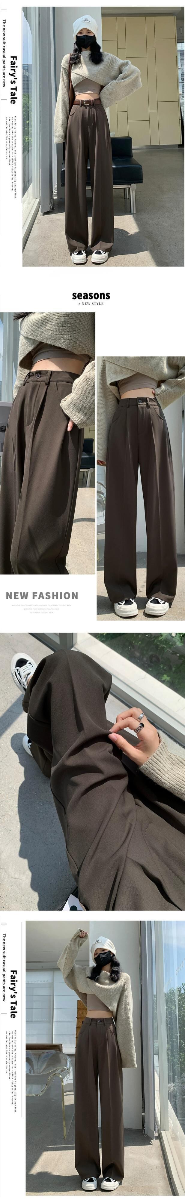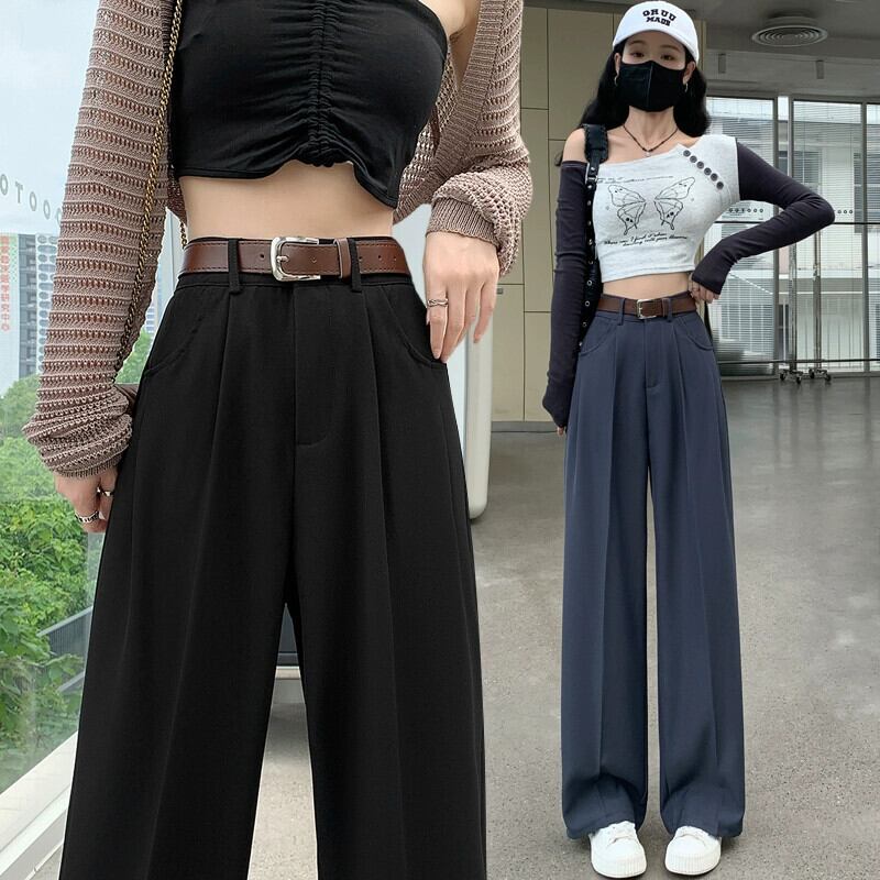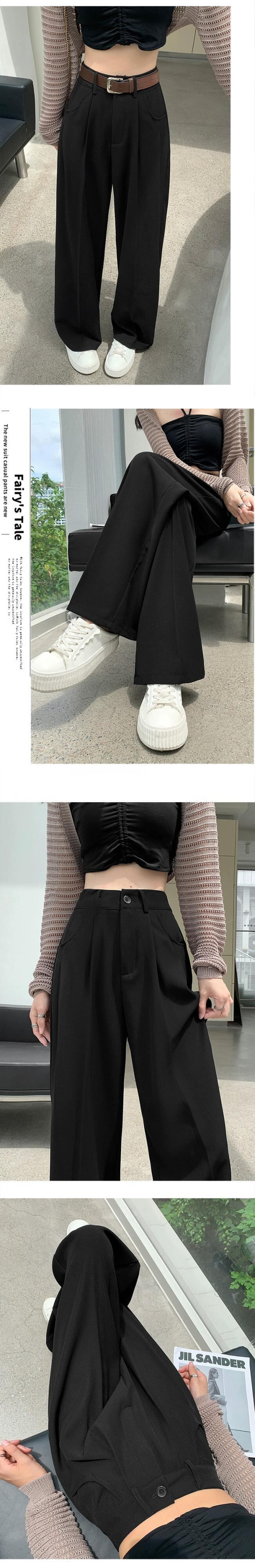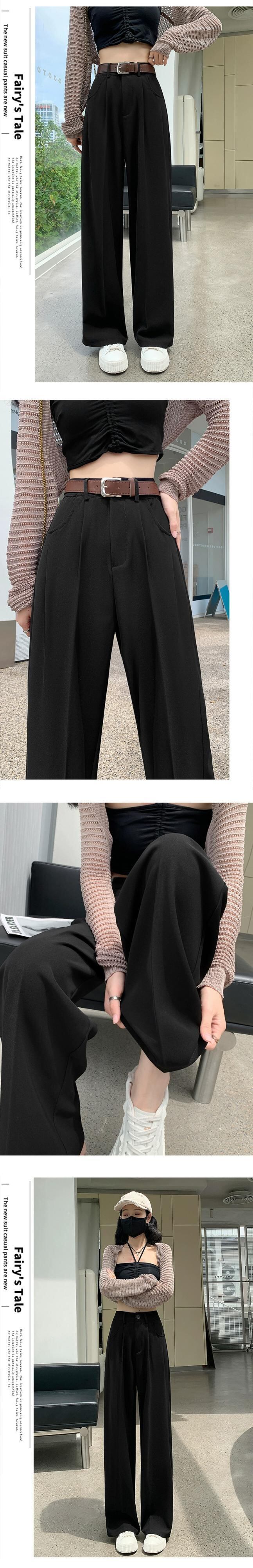 グレーのカジュアルスーツパンツレディース、春と秋のナローストレートワイドレッグパンツ、ルーズスリミングハイウエストシガレットパンツ スプリング 春物 オータム 秋物 7460075067787408 | framboise21