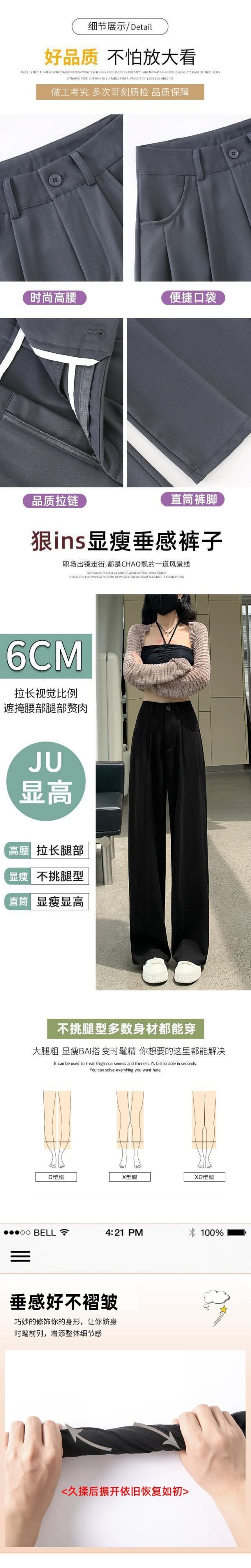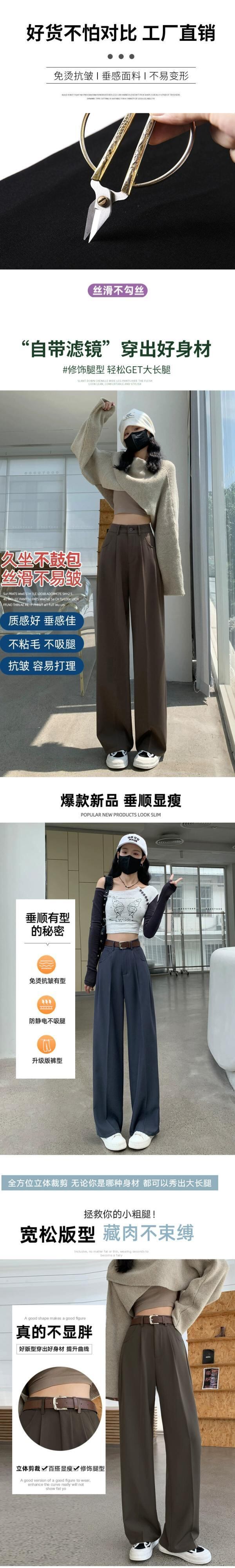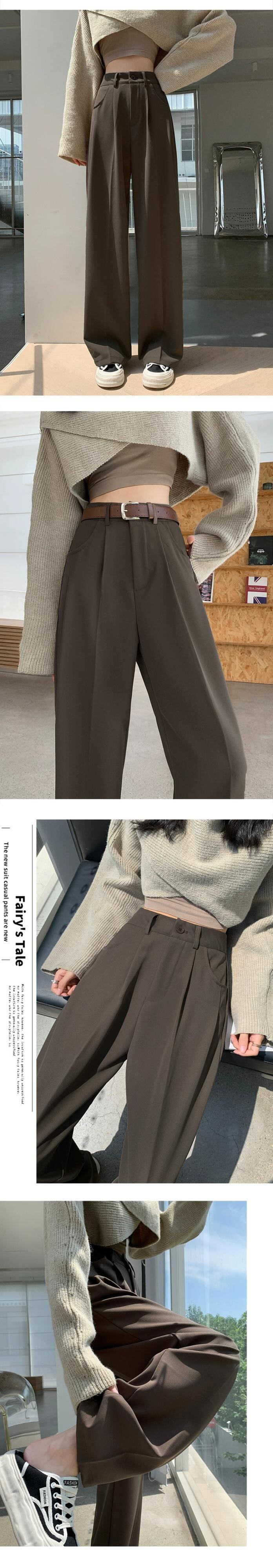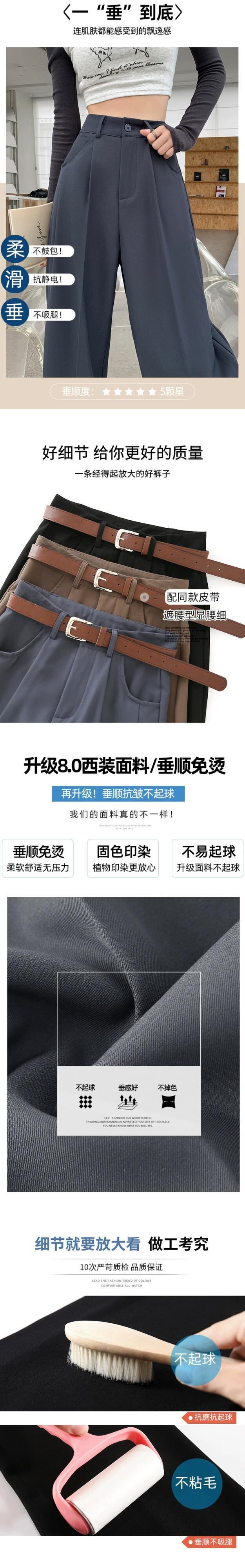 グレーのカジュアルスーツパンツレディース、春と秋のナローストレートワイドレッグパンツ、ルーズスリミングハイウエストシガレットパンツ スプリング 春物 オータム 秋物 7460075067787408 | framboise21