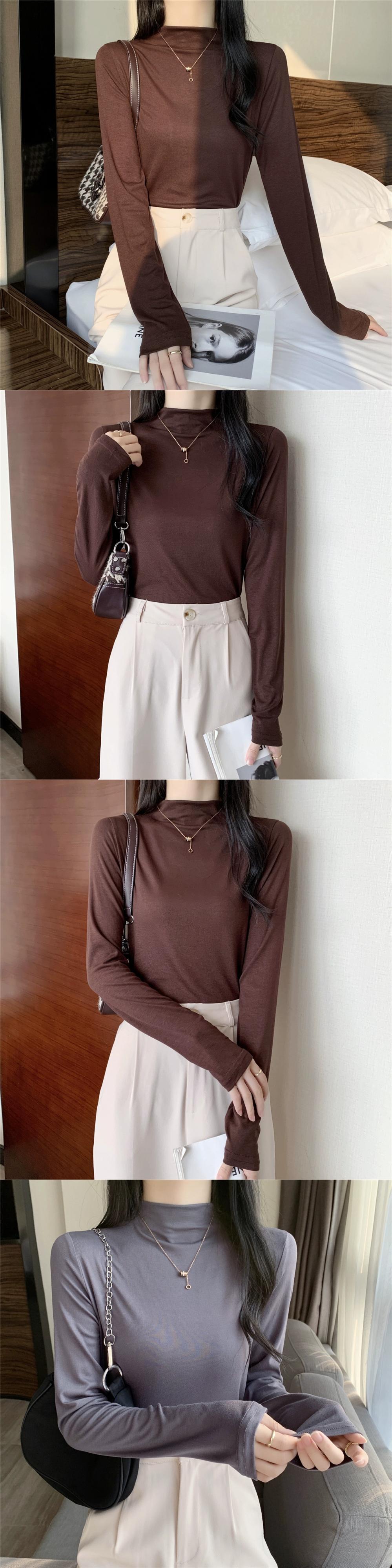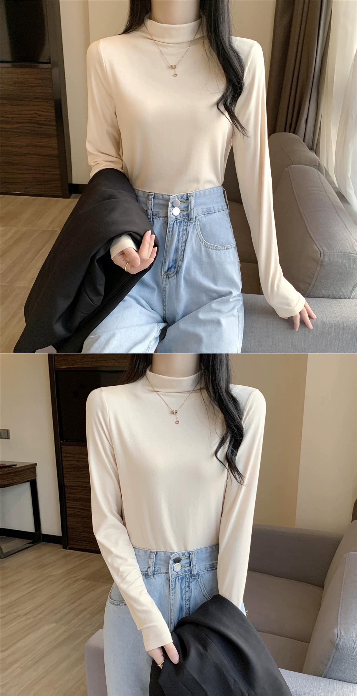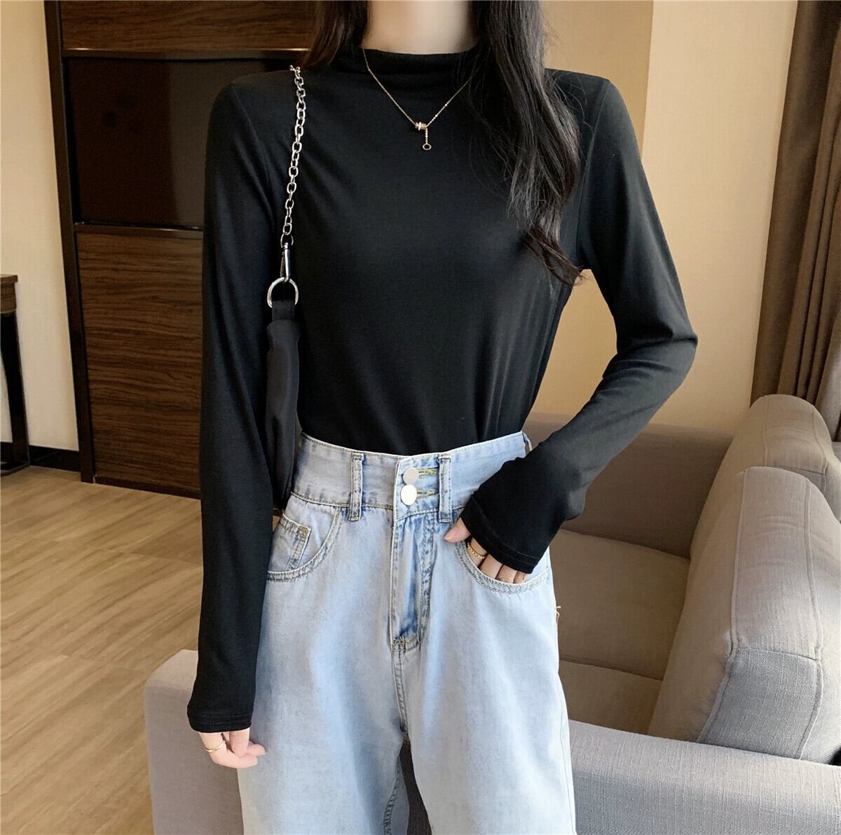 黒ハーフタートルネックボトリングシャツ 2023 新しいスタイルの女性の春、秋、冬のスタイルのインナー長袖 Tシャツスリムミッドカラートップ ロング ブラック スプリング 春物 オータム 秋物 ウィンター 冬物 7460025512113350 | framboise21