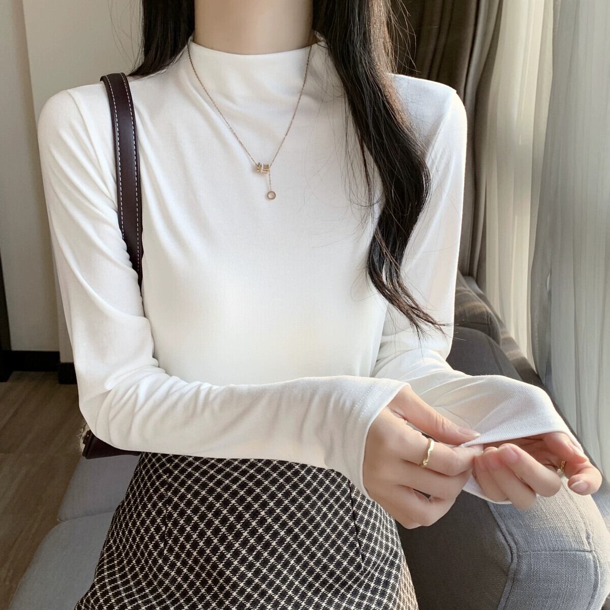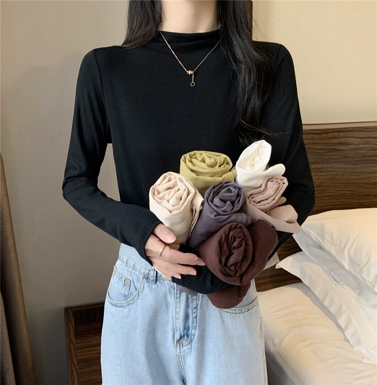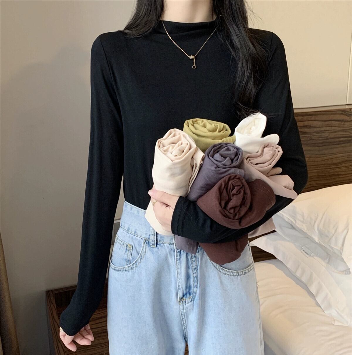 黒ハーフタートルネックボトリングシャツ 2023 新しいスタイルの女性の春、秋、冬のスタイルのインナー長袖 Tシャツスリムミッドカラートップ ロング ブラック スプリング 春物 オータム 秋物 ウィンター 冬物 7460025512113350 | framboise21