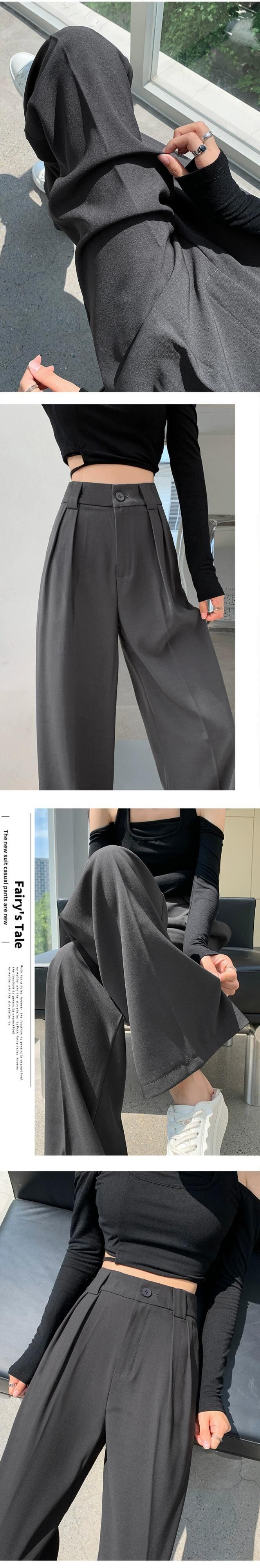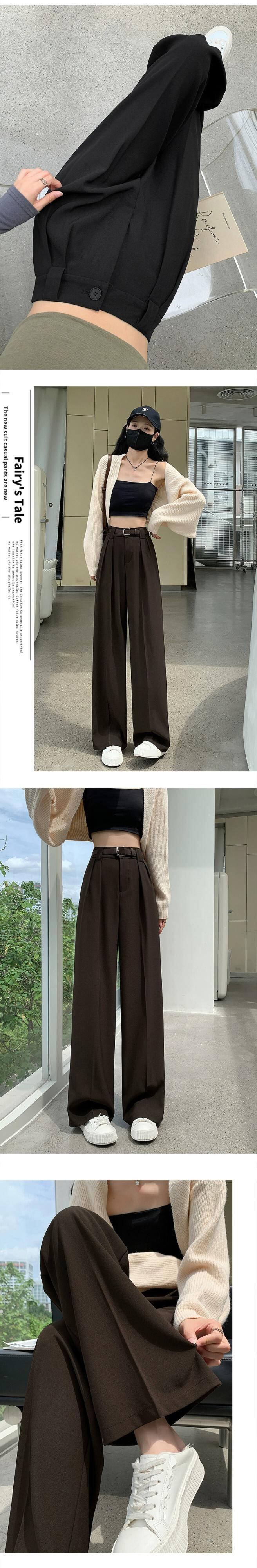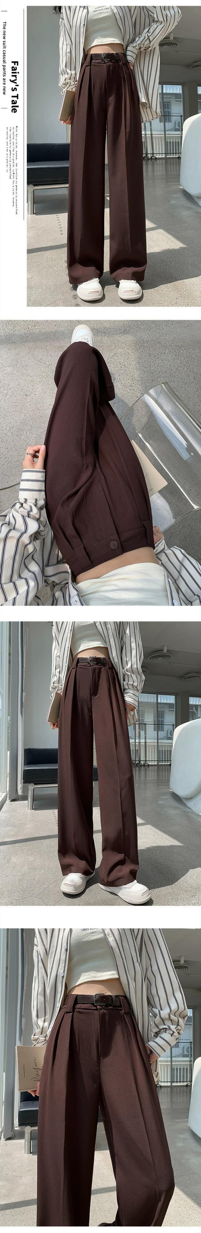 ブラウンストレートスーツワイドレッグパンツ女性春と秋 2023 新しいスタイルのハイエンドドレープルーズハイウエストカジュアルパンツ ハイウェスト スプリング 春物 オータム 秋物 ワイドパンツ 746009679624572 | framboise21