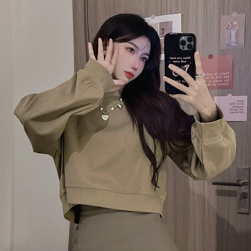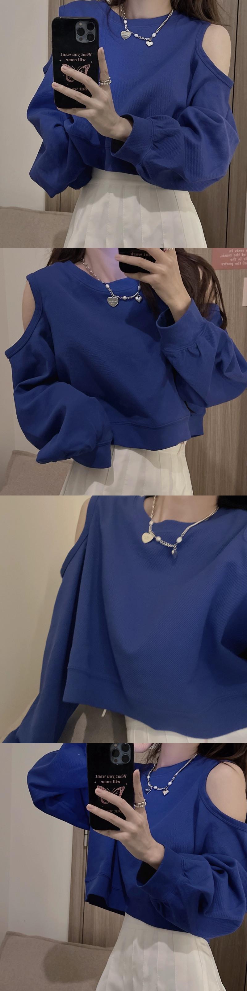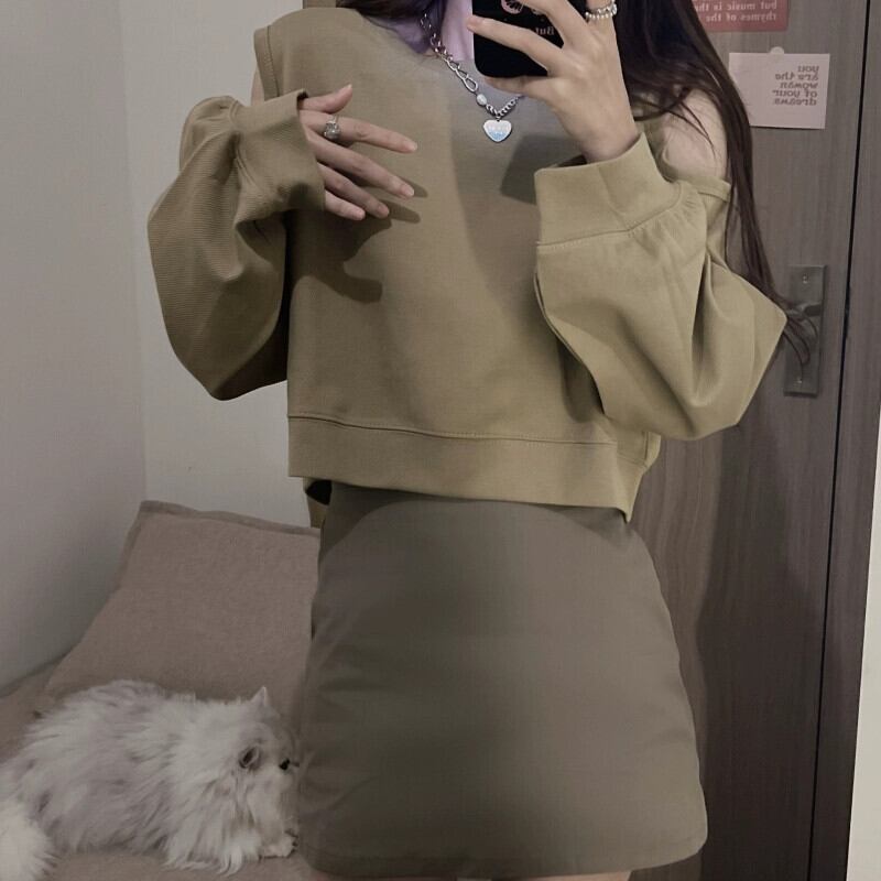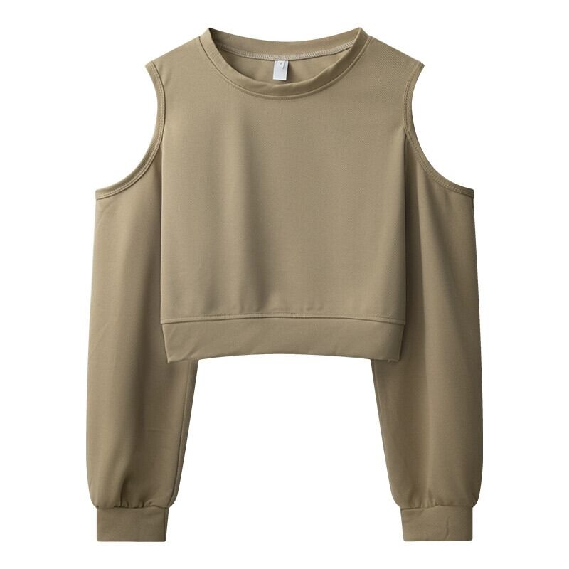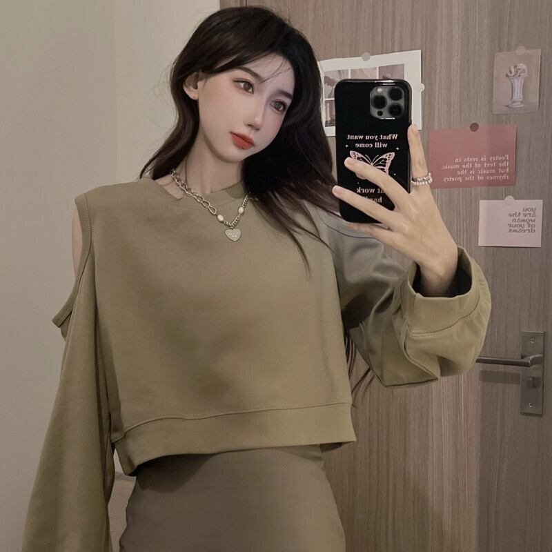 オフショルダーショートスウェットシャツの女性の2023春と秋の新しいレトロなデザイン、ルーズで多用途なバック中空長袖トップ ロング スプリング 春物 オータム 秋物 7460087640368284 | framboise21