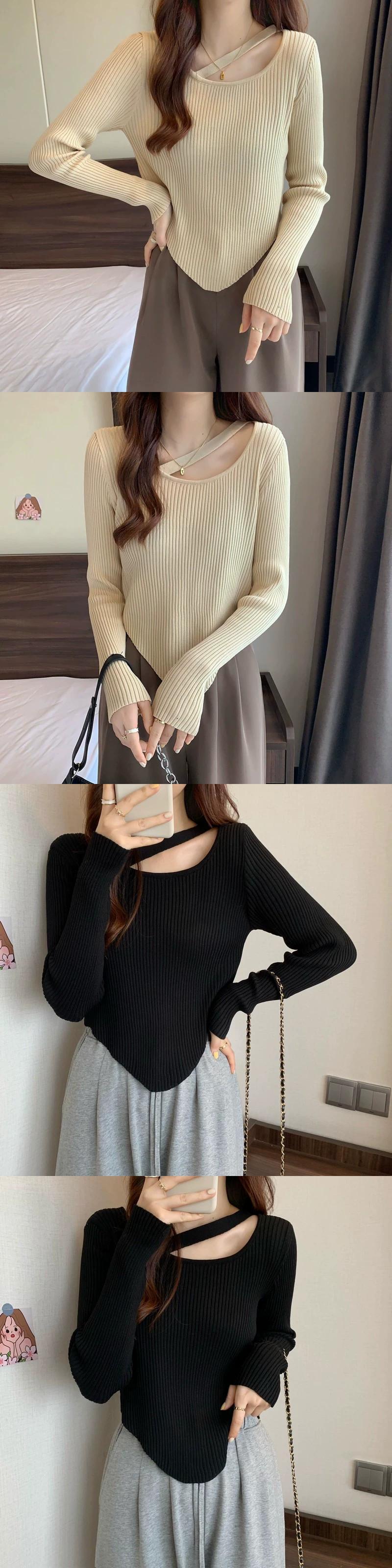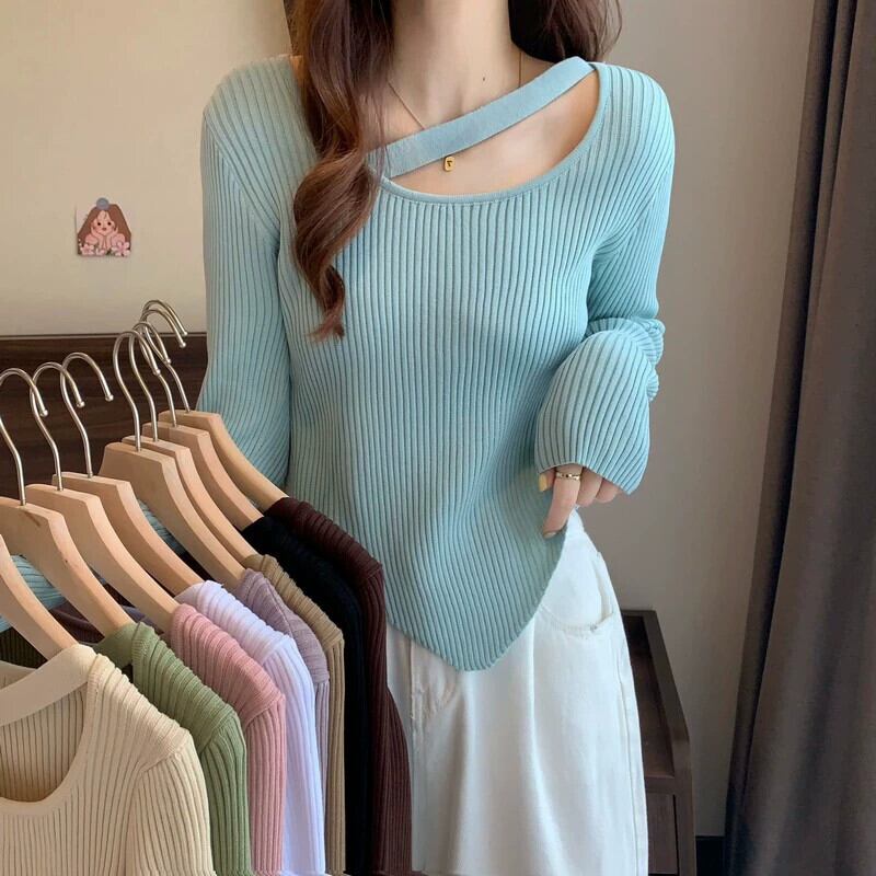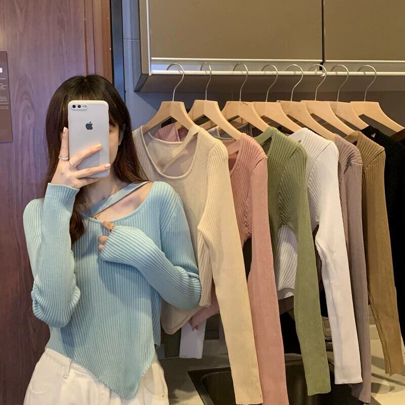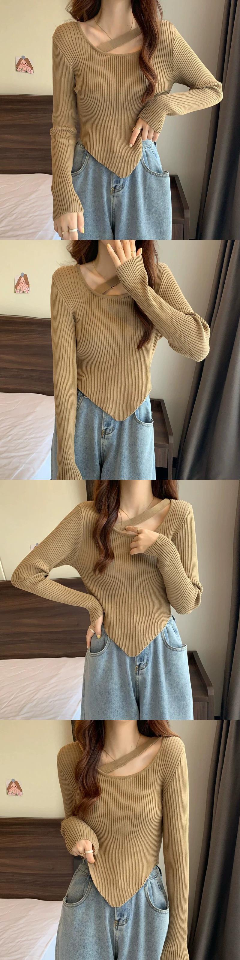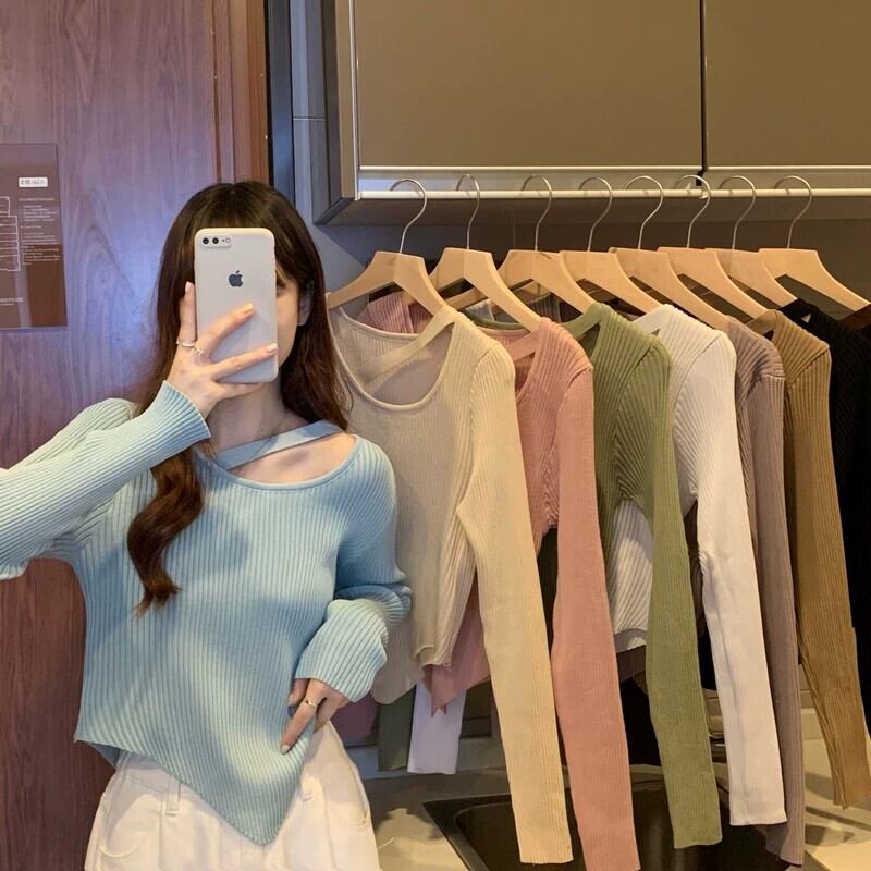 秋冬のホルターネックニットボトムシャツレディース、ファッショナブルで上品なデザイン、スリムフィットと不規則なショートセーター付き オータム 秋物 ウィンター 冬物 7460048841738946 | framboise21