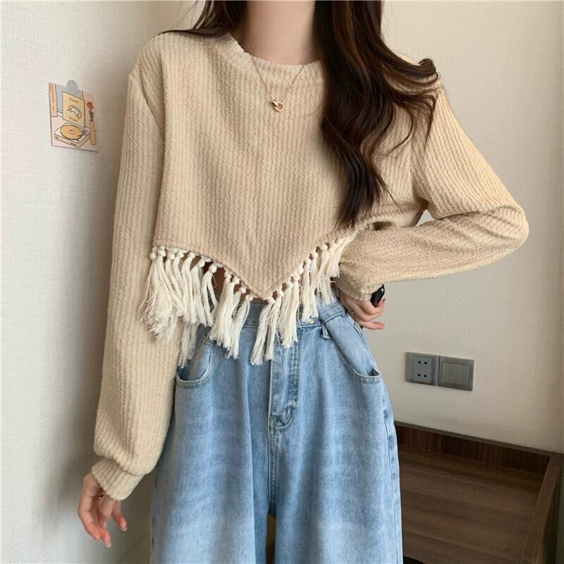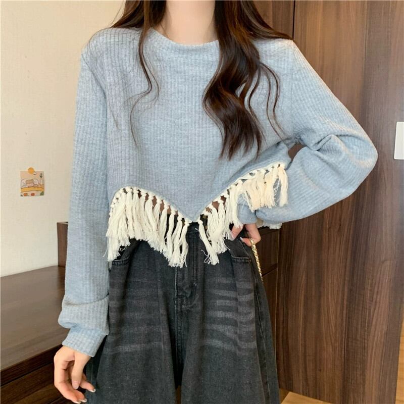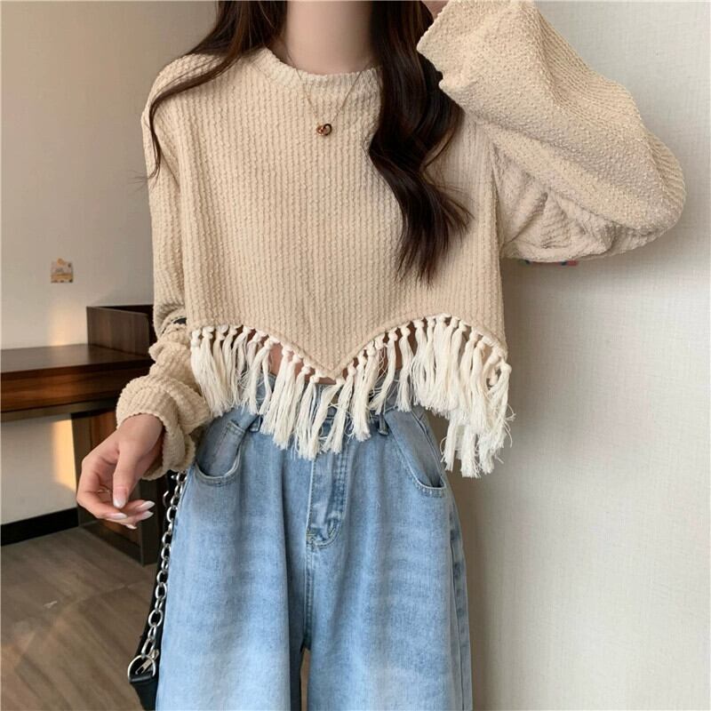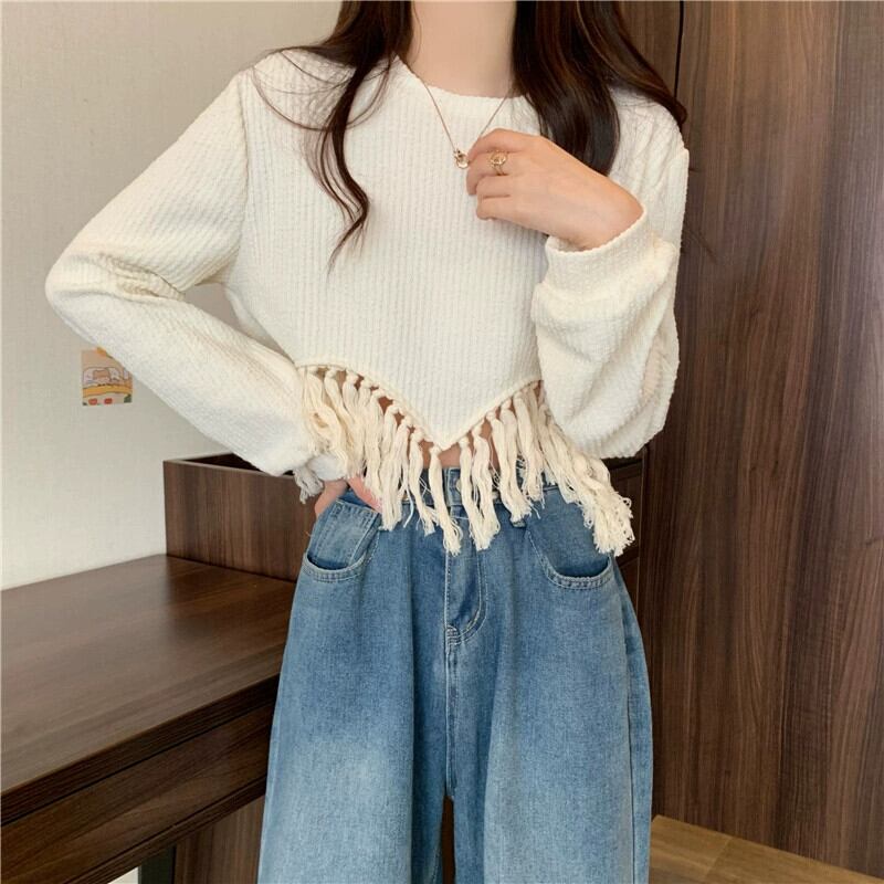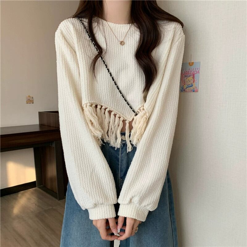 不規則なテルショートスウェットシャツの女性、2023春と秋の新しいスタイルのファッショナブルなデザインのラウンドネック長袖トップ ロング スプリング 春物 オータム 秋物 Oネック 746001838525058 | framboise21