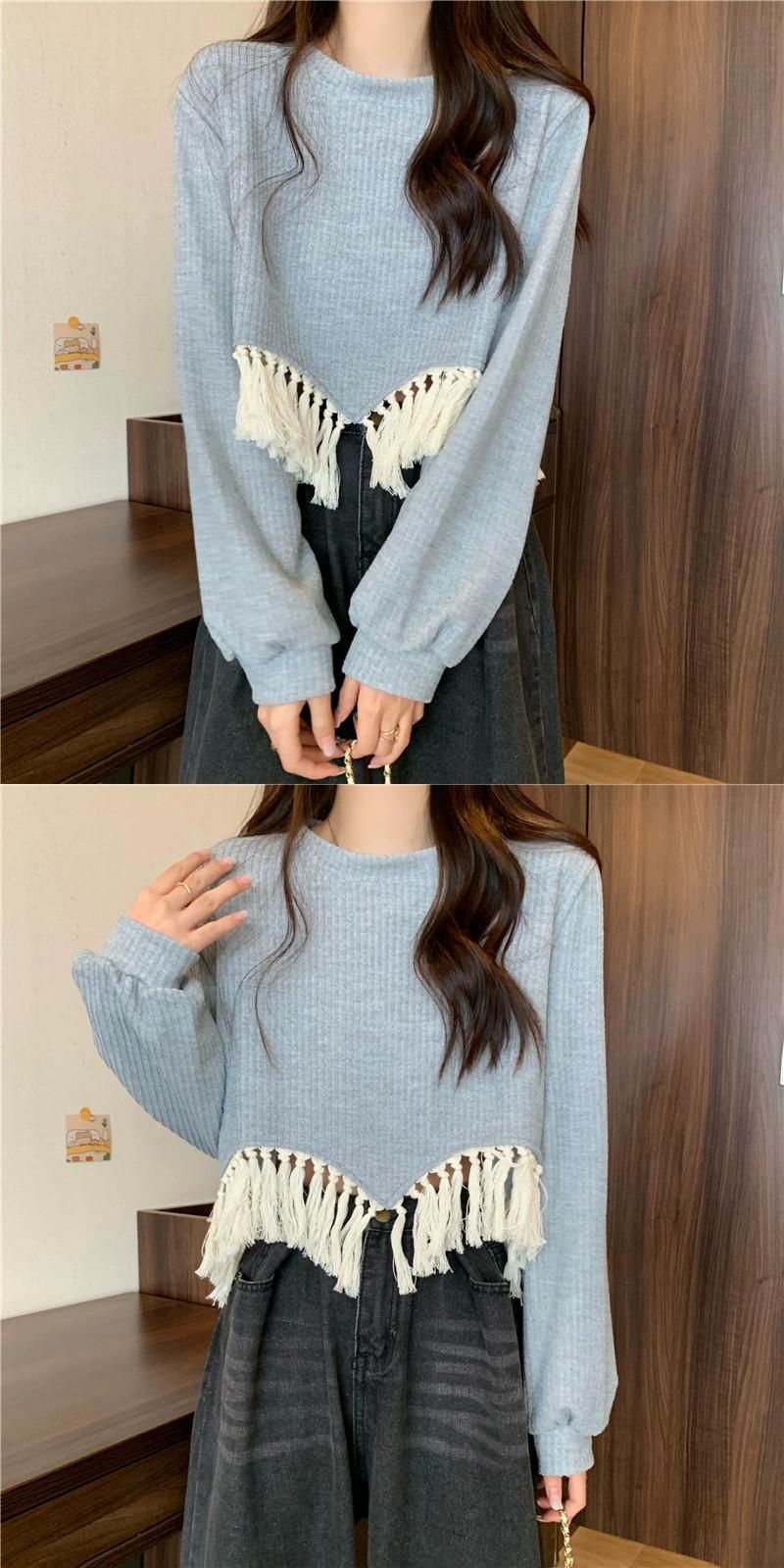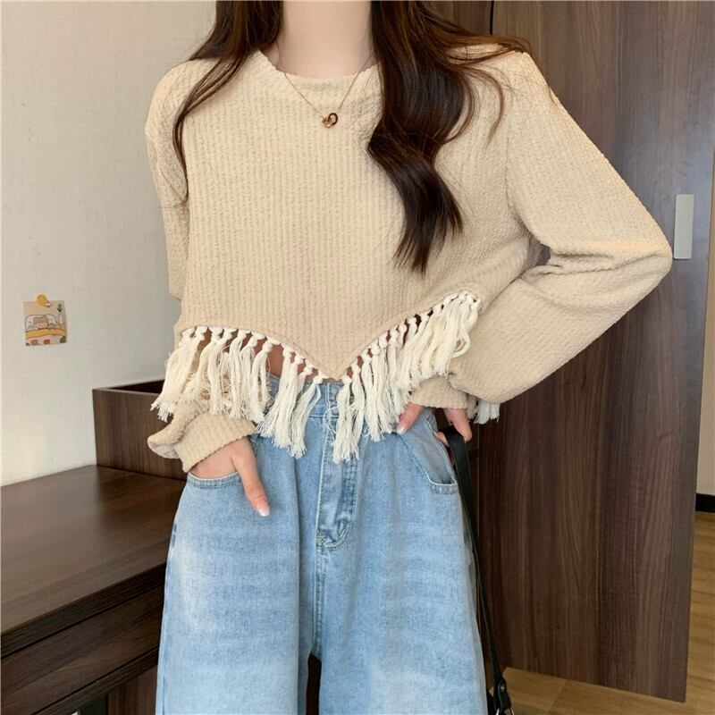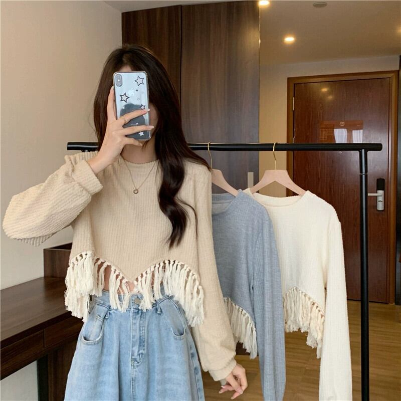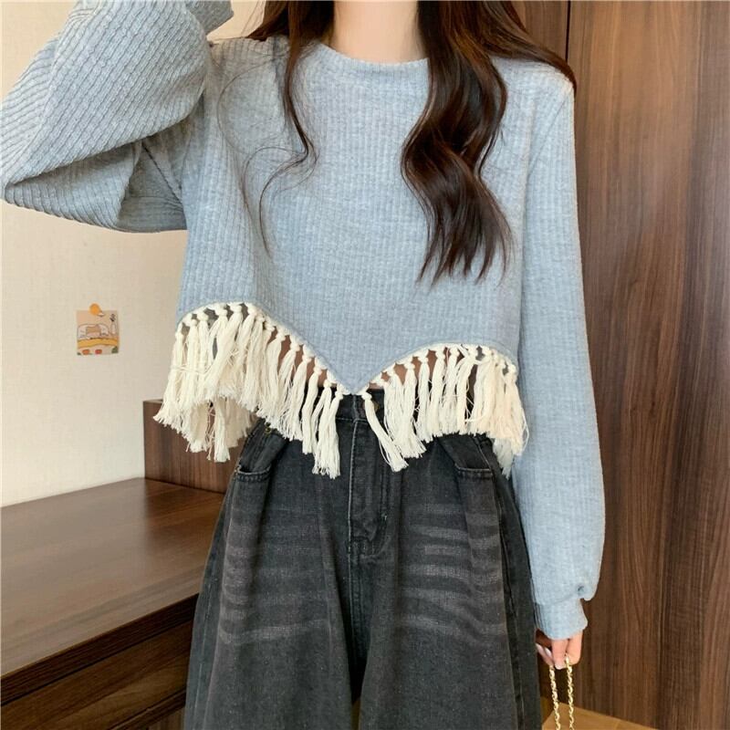 不規則なテルショートスウェットシャツの女性、2023春と秋の新しいスタイルのファッショナブルなデザインのラウンドネック長袖トップ ロング スプリング 春物 オータム 秋物 Oネック 746001838525058 | framboise21