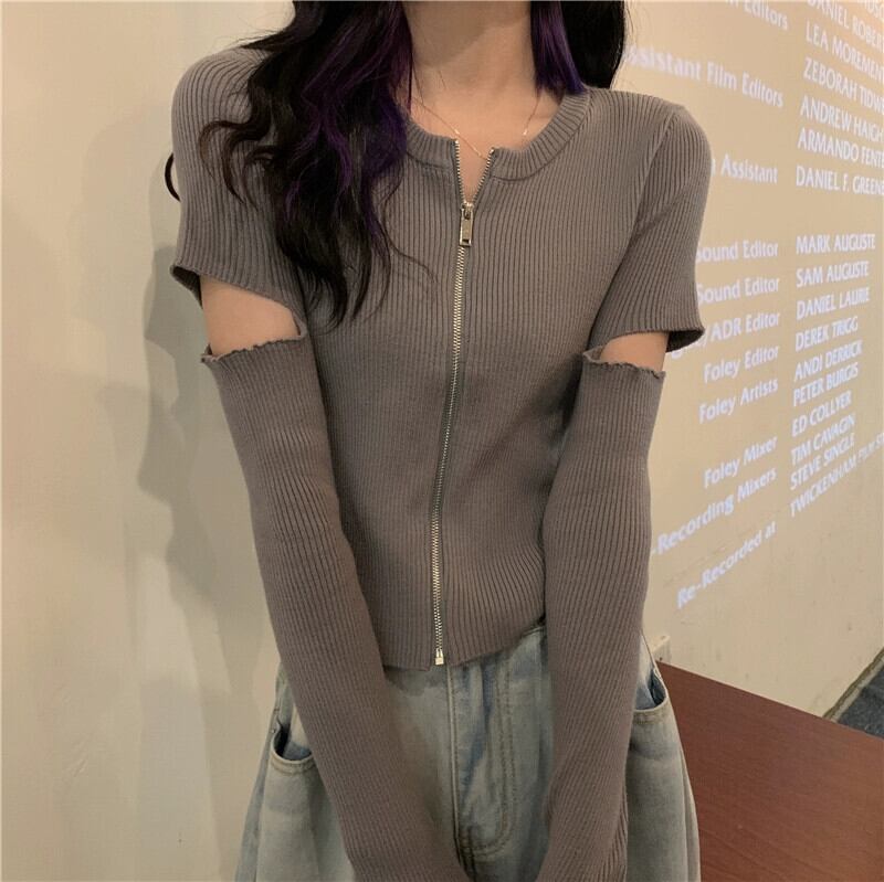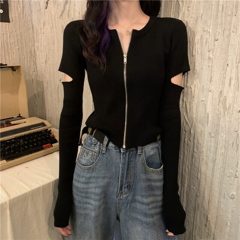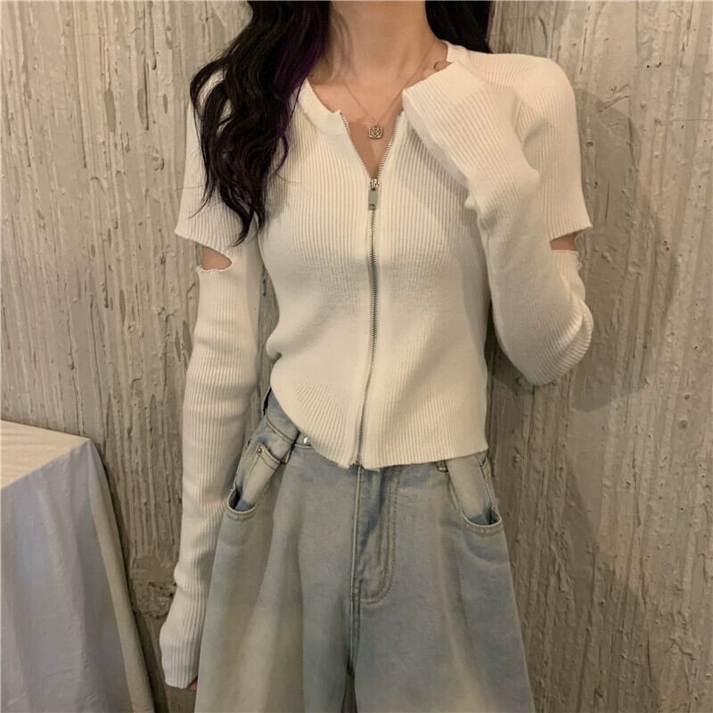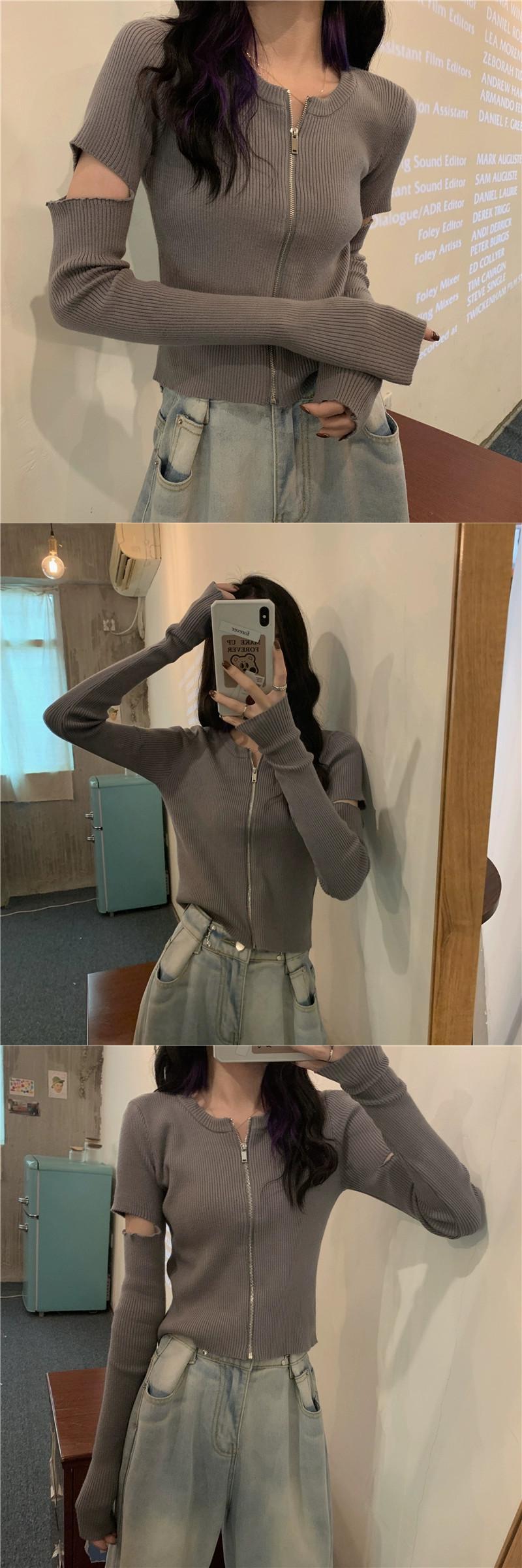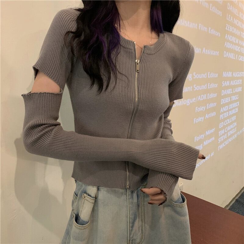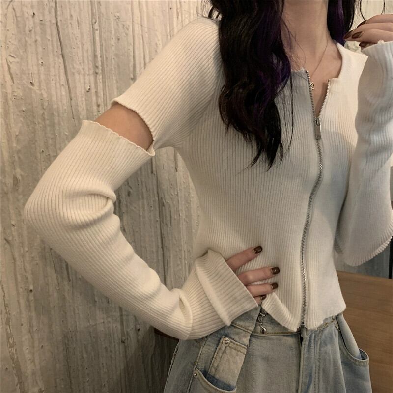ホットハイウエストショートニットトップレディース、春と秋のデザイン、スリムでスリム、ジッパーホール長袖カーディガン ロング レッド スプリング 春物 オータム 秋物 7460084628774922 | framboise21