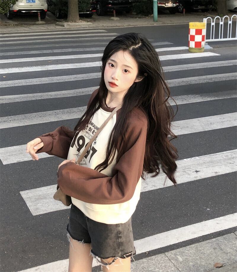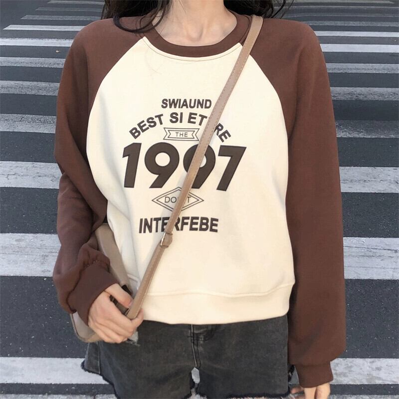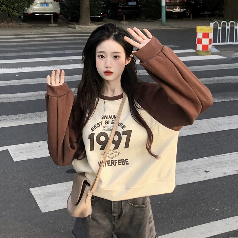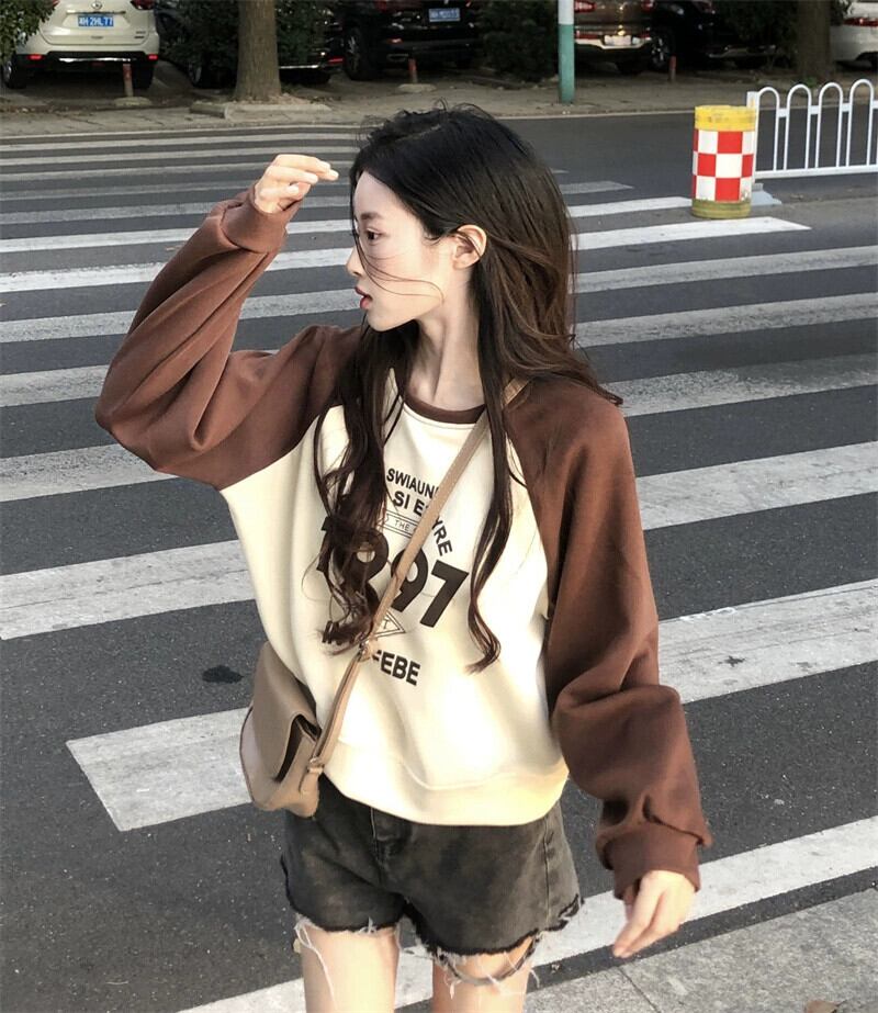 アメリカンレトロなショートラグランスリーブスウェットシャツレディース、春と秋のデザイン、ゆったりとした多用途のプルオーバープリント長袖トップ ロング スプリング 春物 オータム 秋物 7460037712081834 | framboise21