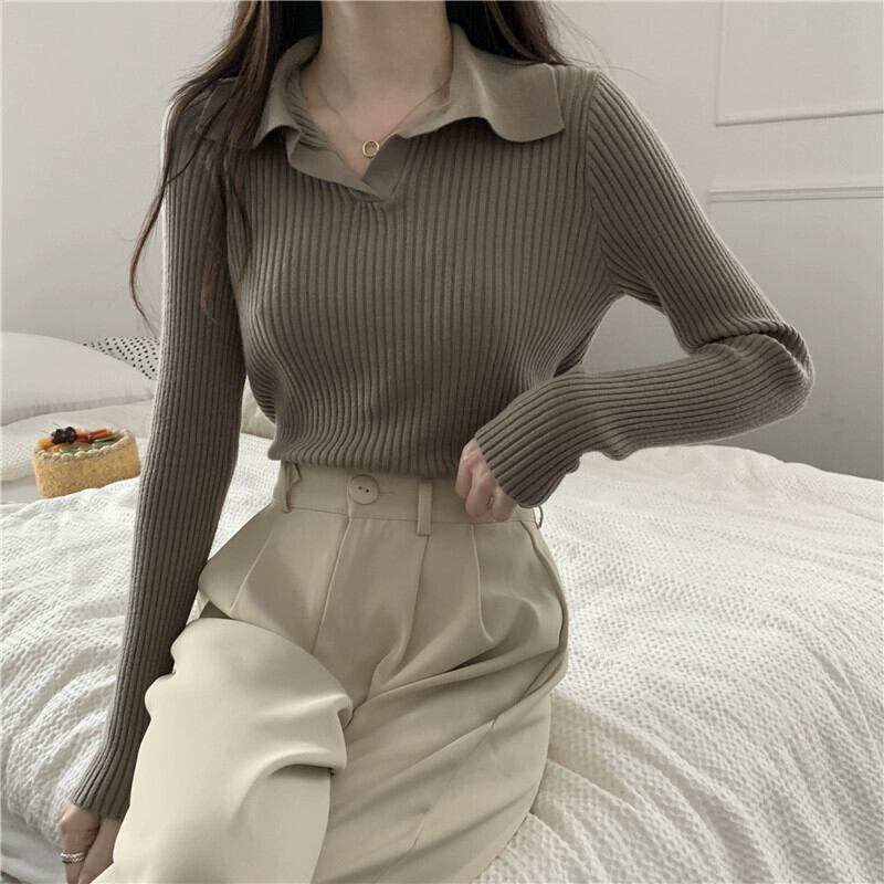 ポロカラーニットボトミングシャツ女性春、秋、冬 2023 新しいファッショナブルなスタイルのインナースリムスリム長袖セーター ロング スプリング 春物 オータム 秋物 ウィンター 冬物 7460027446705770 | framboise21