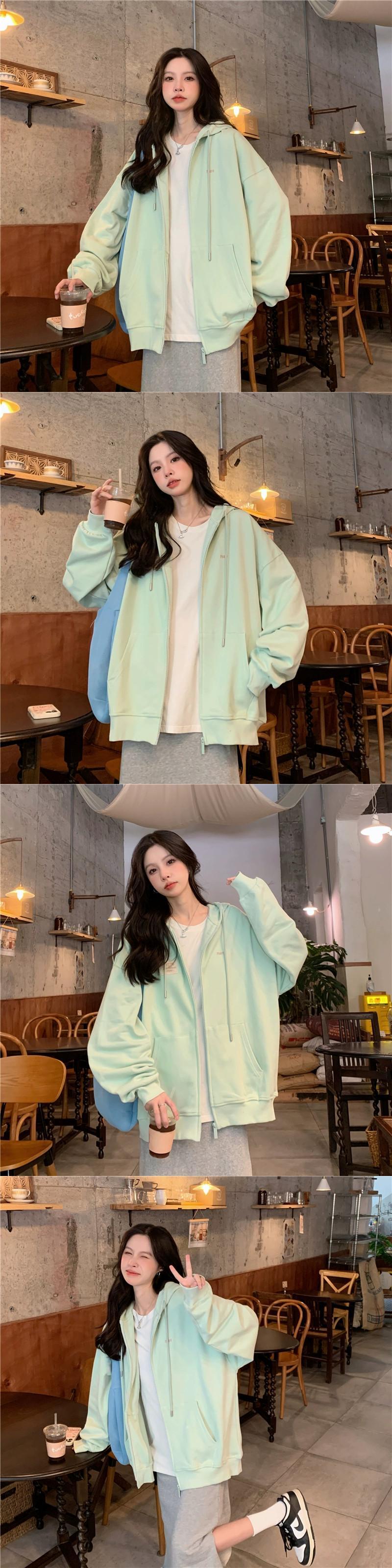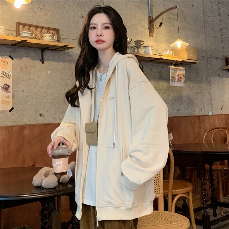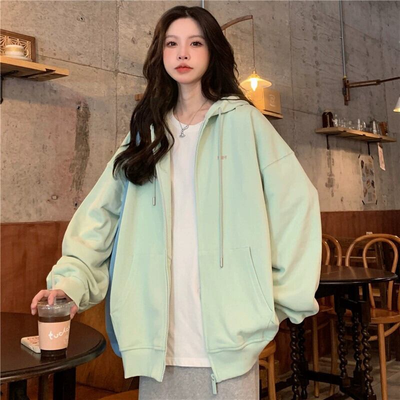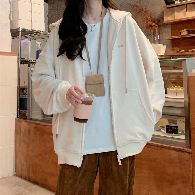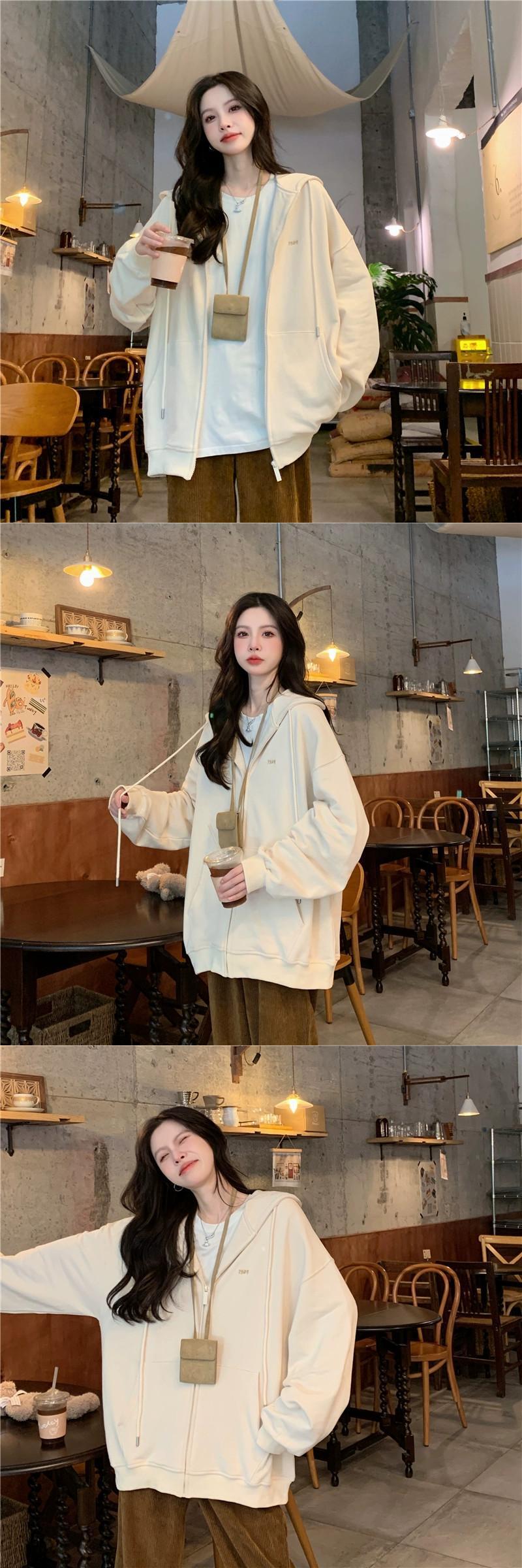春と秋の特大のフード付きカーディガンスウェットシャツの女性、怠惰なスタイル、ルーズなデザイン、カジュアルなミッドレングスのジッパージャケット スプリング 春物 オータム 秋物 7460041879543036 | framboise21