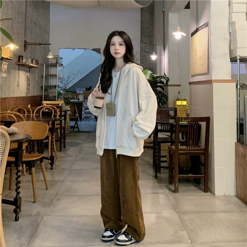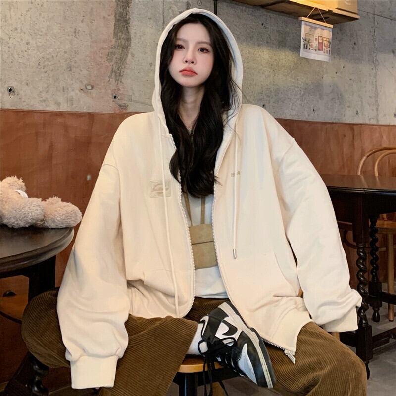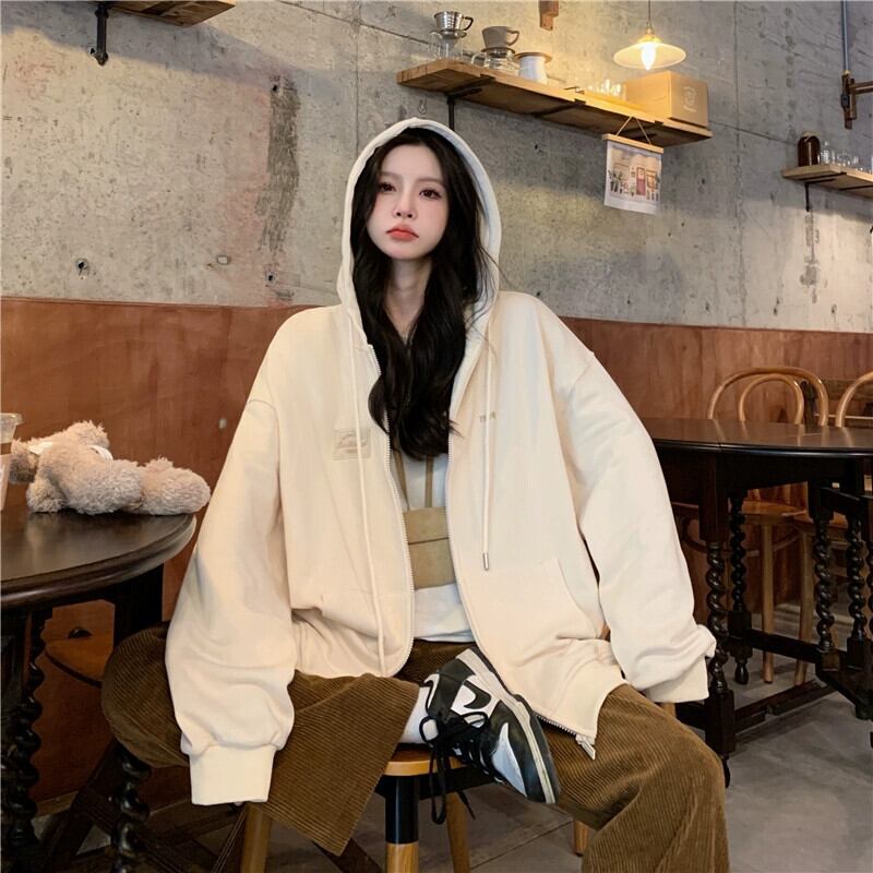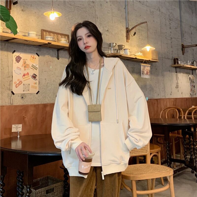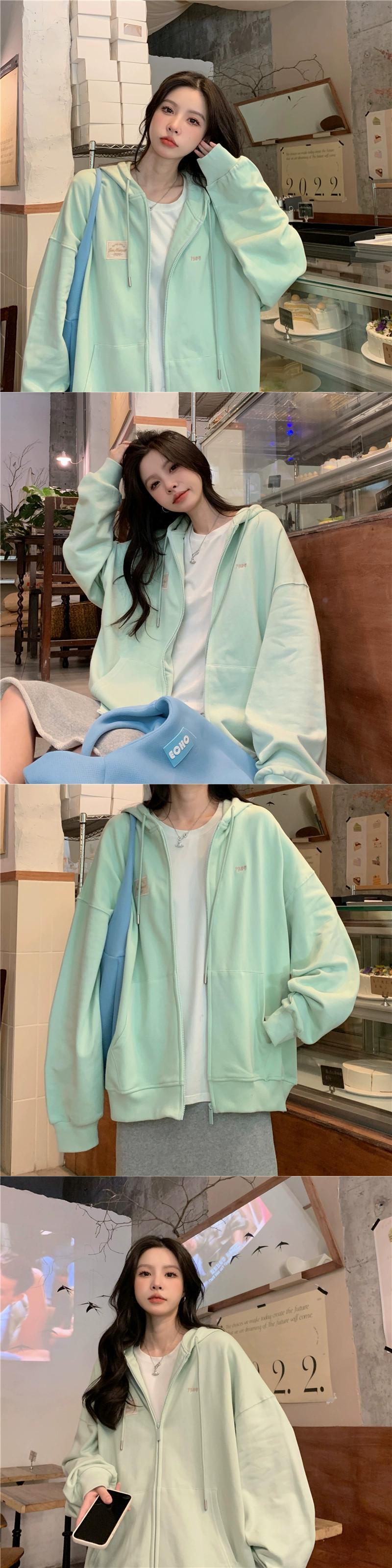 春と秋の特大のフード付きカーディガンスウェットシャツの女性、怠惰なスタイル、ルーズなデザイン、カジュアルなミッドレングスのジッパージャケット スプリング 春物 オータム 秋物 7460041879543036 | framboise21