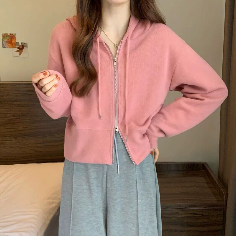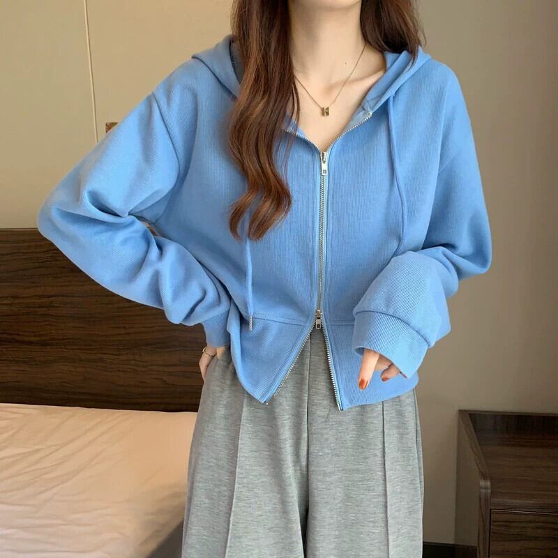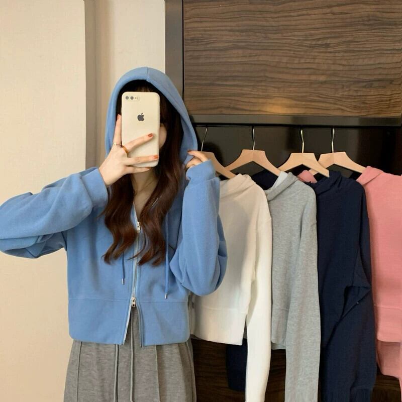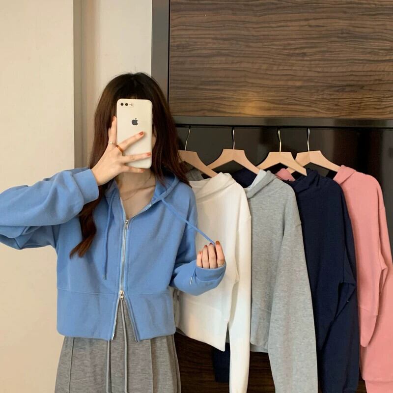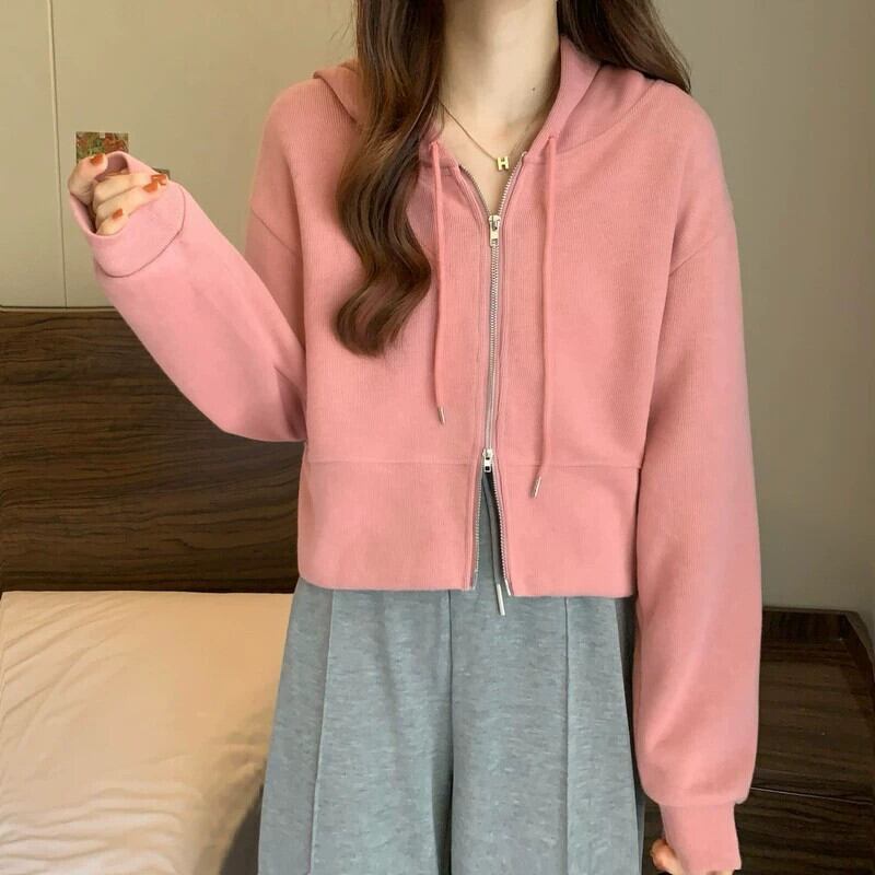 フード付きカーディガントレーナー女性春と秋 2023 新しいスタイルルーズカジュアル小さなショートジッパージャケットトレンディな スプリング 春物 オータム 秋物 7460023717261254 | framboise21