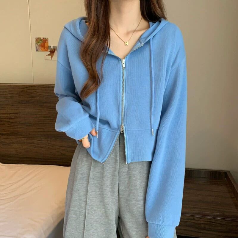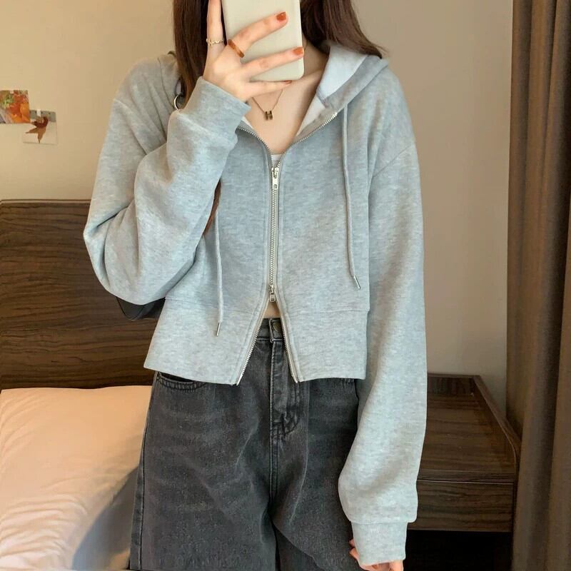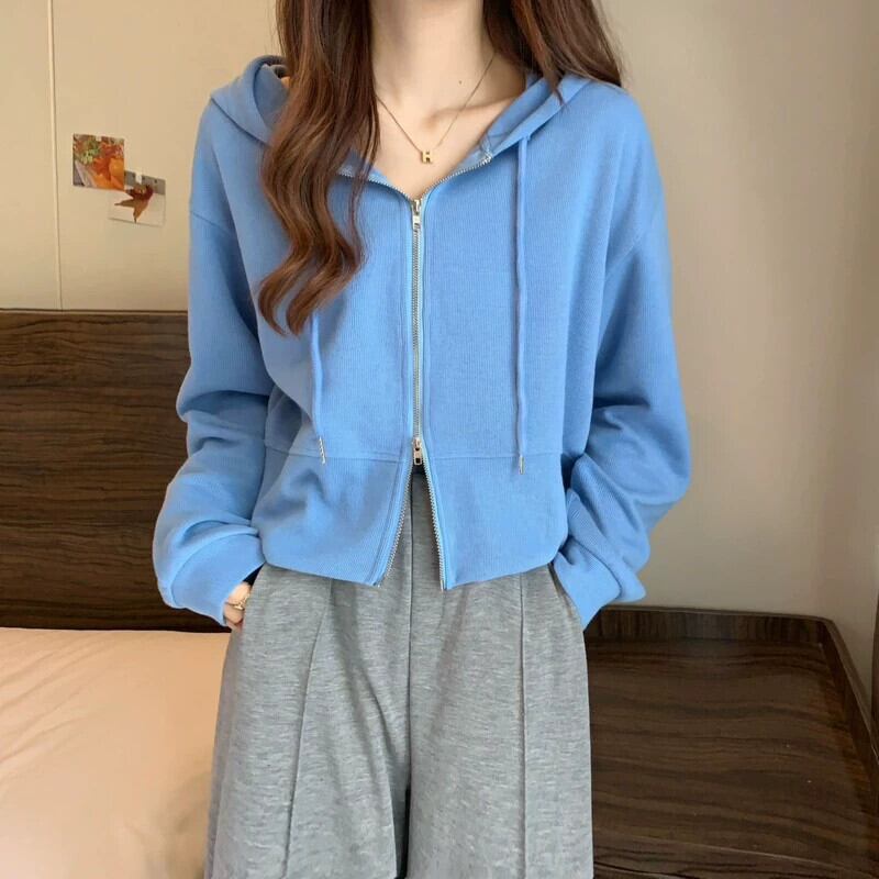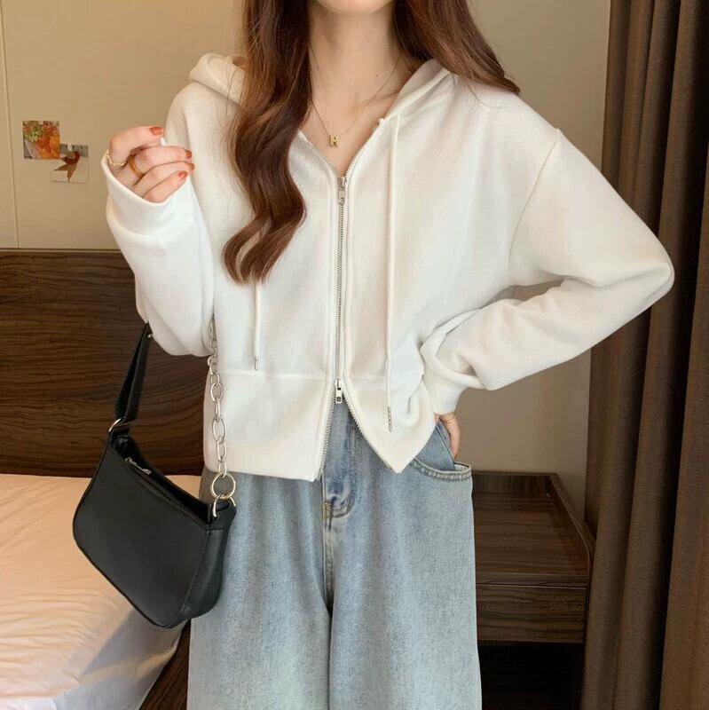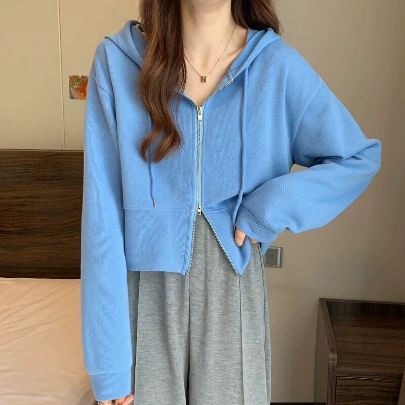 フード付きカーディガントレーナー女性春と秋 2023 新しいスタイルルーズカジュアル小さなショートジッパージャケットトレンディな スプリング 春物 オータム 秋物 7460023717261254 | framboise21