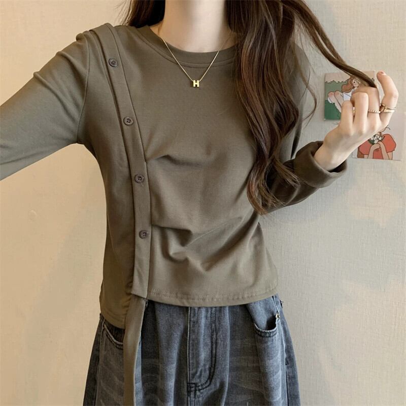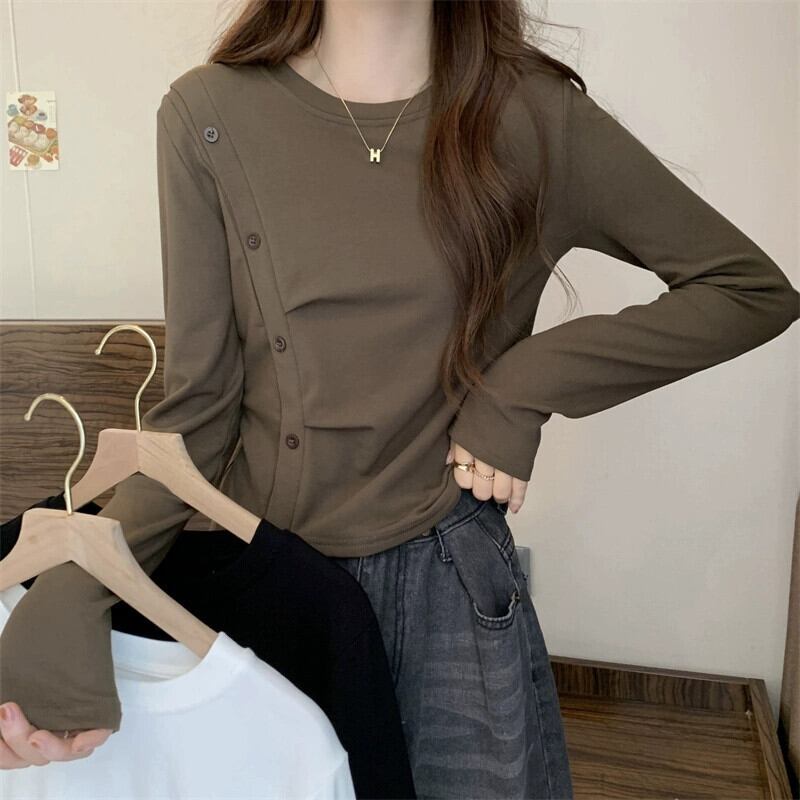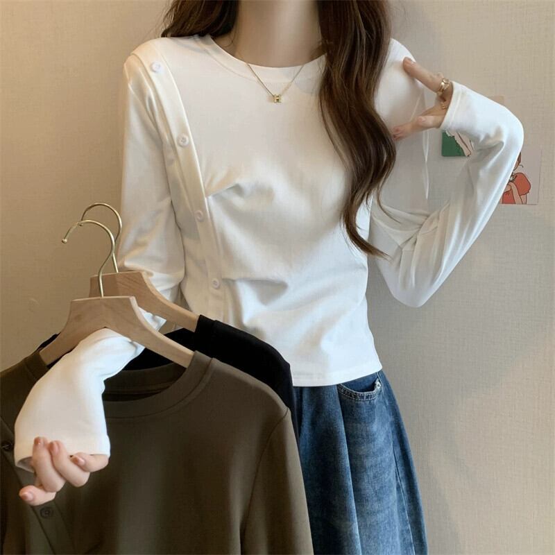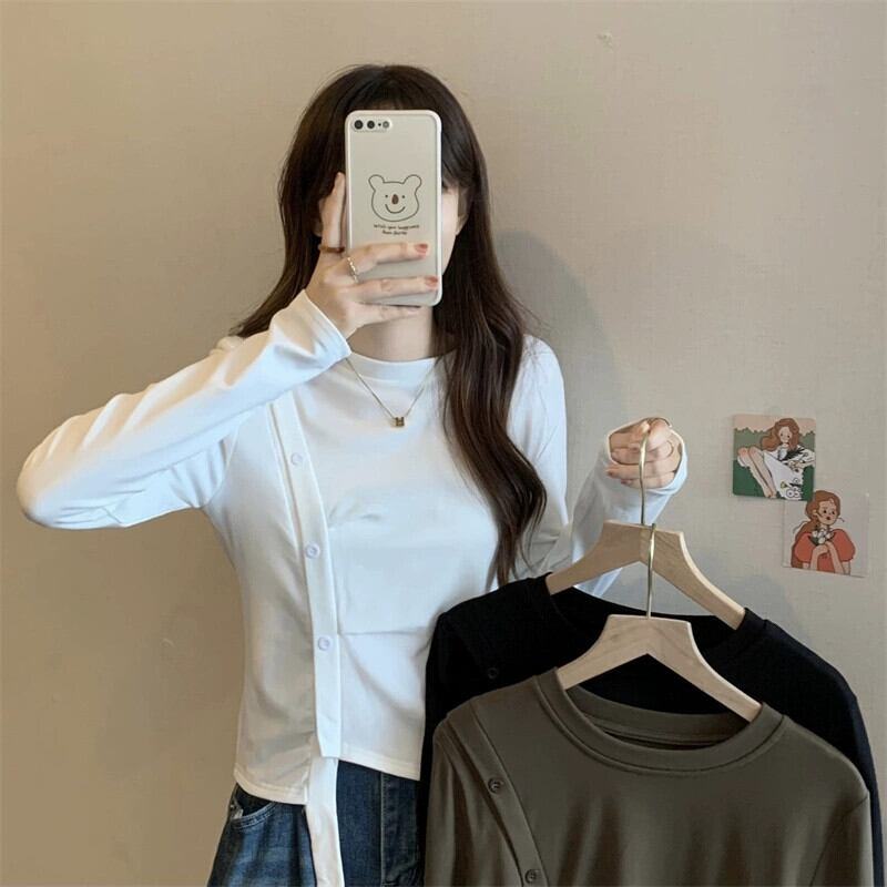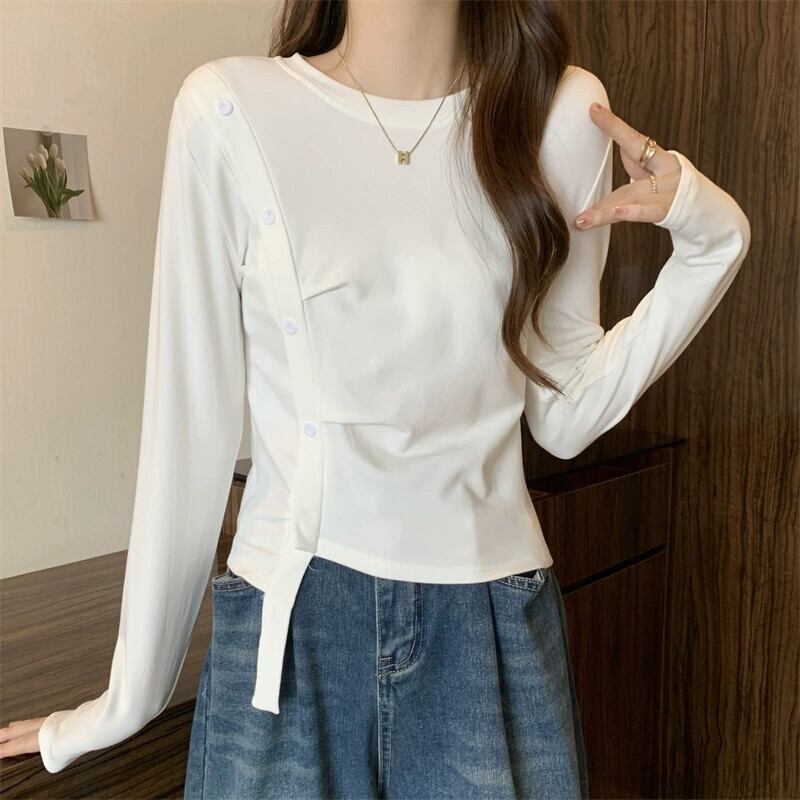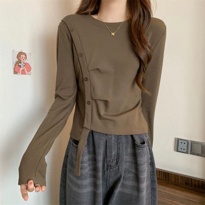 インナー長袖Tシャツレディース、春秋スタイルスリムラウンドネックボトムシャツ、スリムで不規則なショートトップ小柄な人 ロング スプリング 春物 オータム 秋物 Oネック 7460082382270190 | framboise21