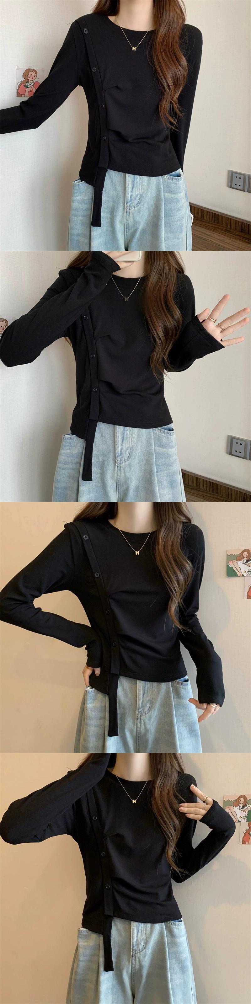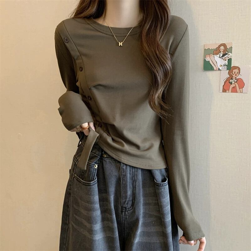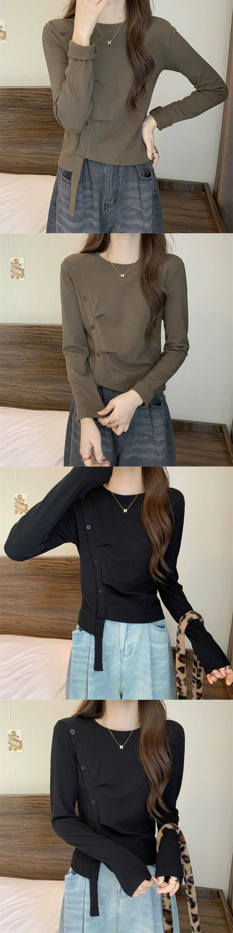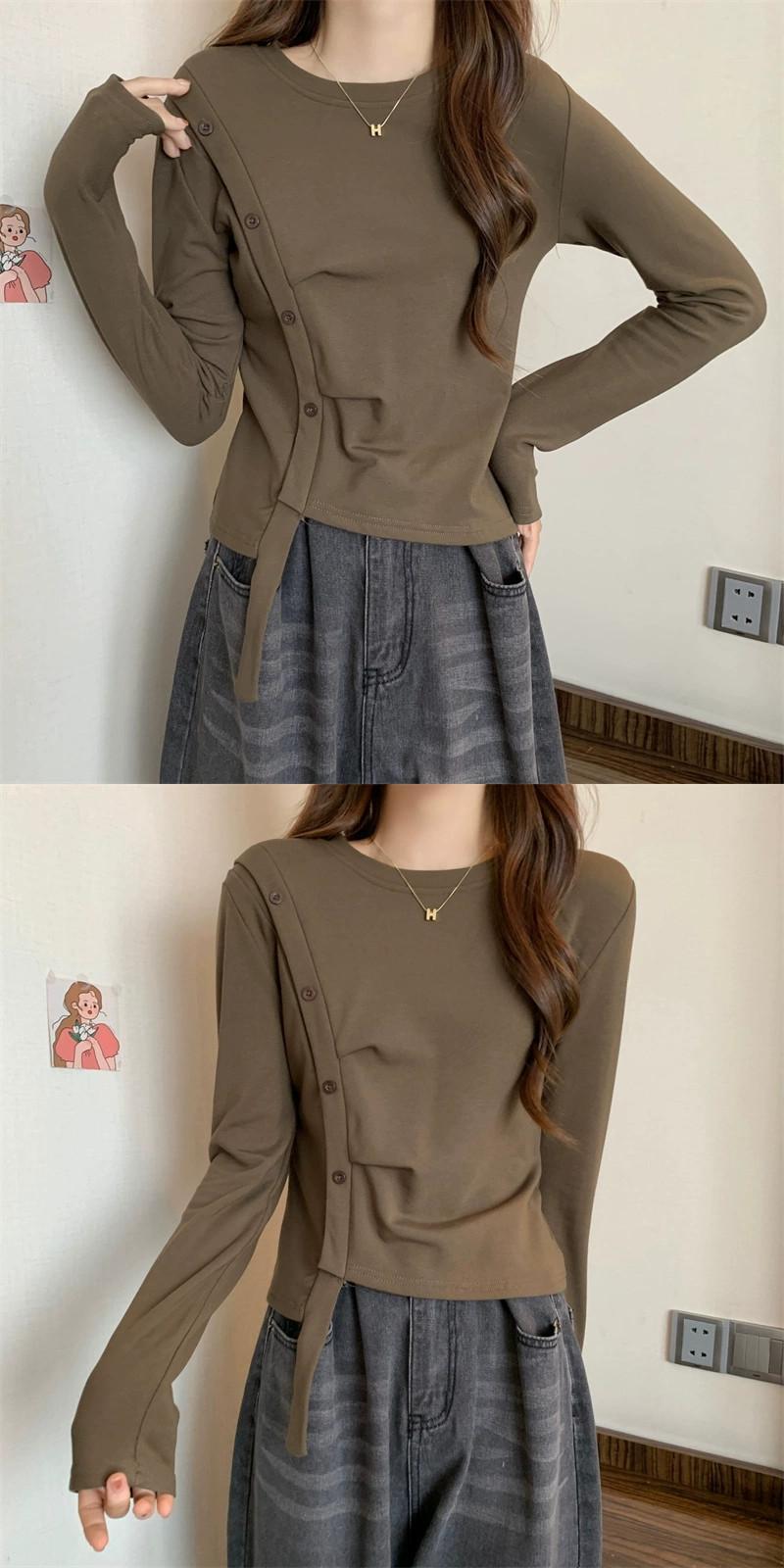 インナー長袖Tシャツレディース、春秋スタイルスリムラウンドネックボトムシャツ、スリムで不規則なショートトップ小柄な人 ロング スプリング 春物 オータム 秋物 Oネック 7460082382270190 | framboise21