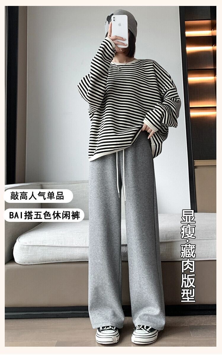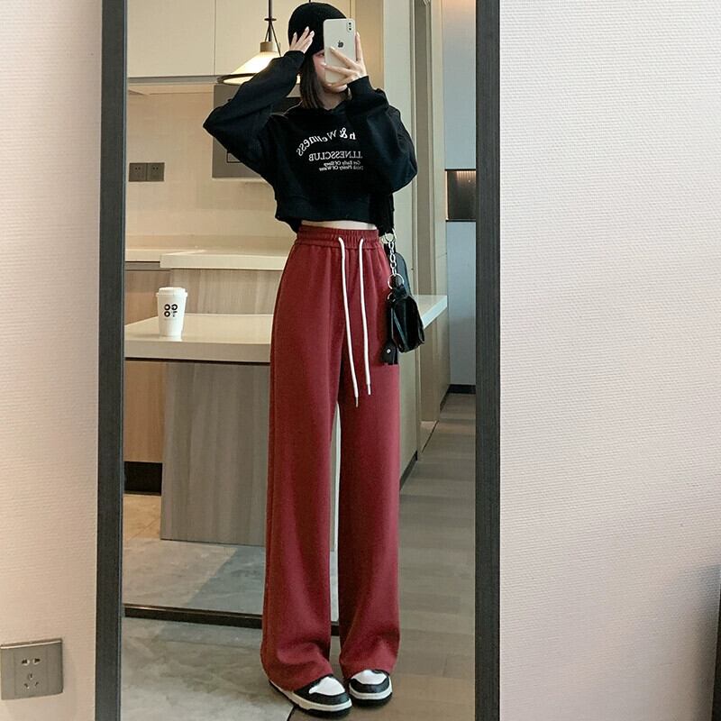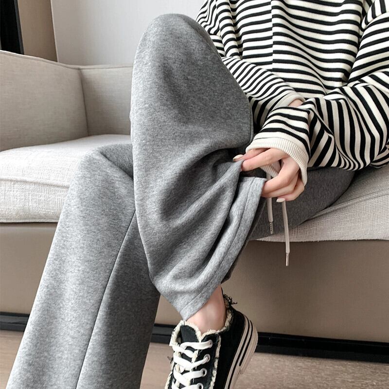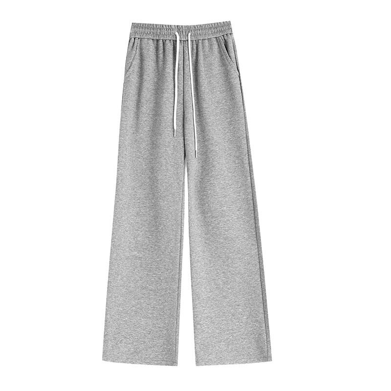 細身のワイドレッグパンツの女性、春と秋のグレーのカジュアルなストレートレッグスポーツパンツ、スリム、ハイウエスト、フロアレングスのルーズスウェットパンツ スプリング 春物 オータム 秋物 7460022705189651 | framboise21