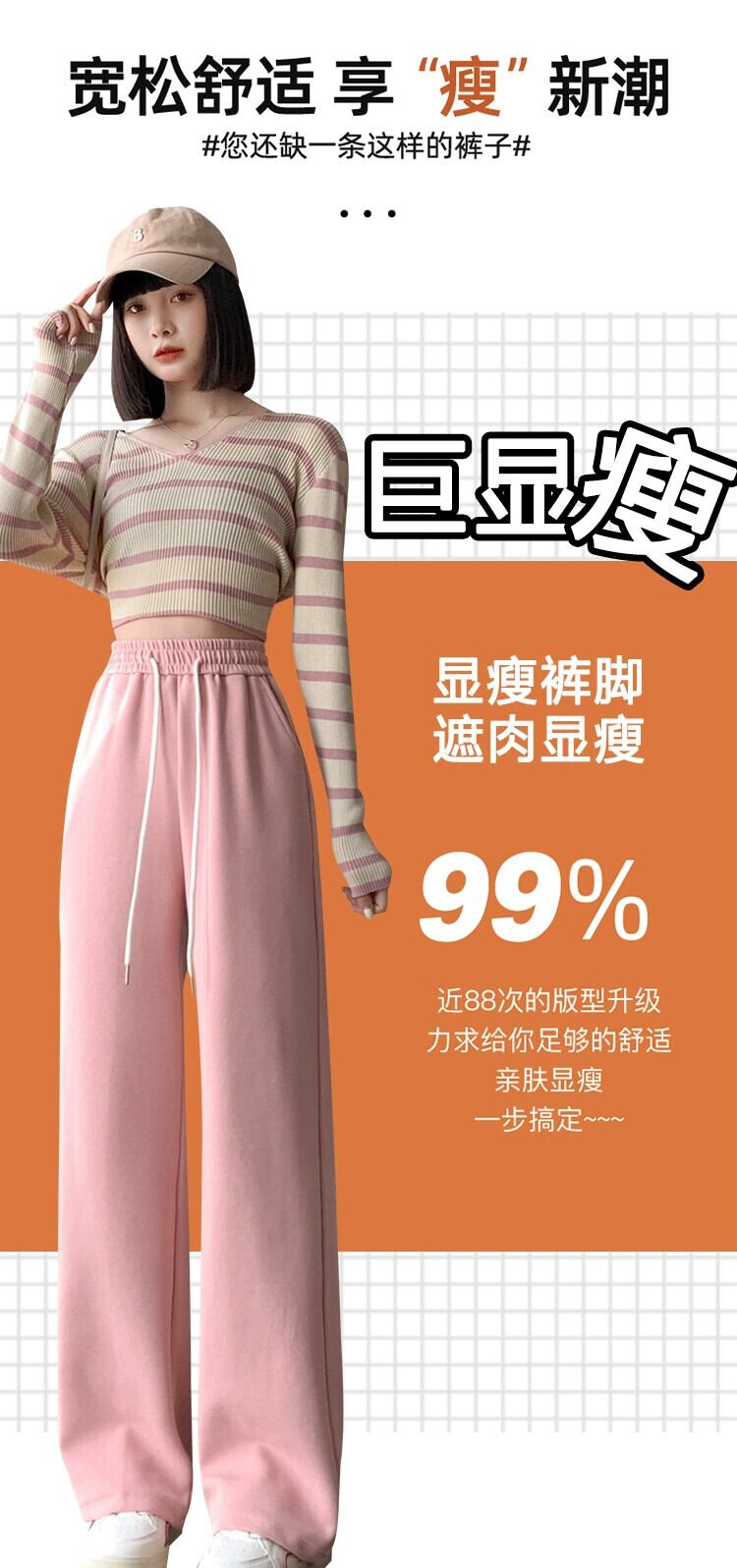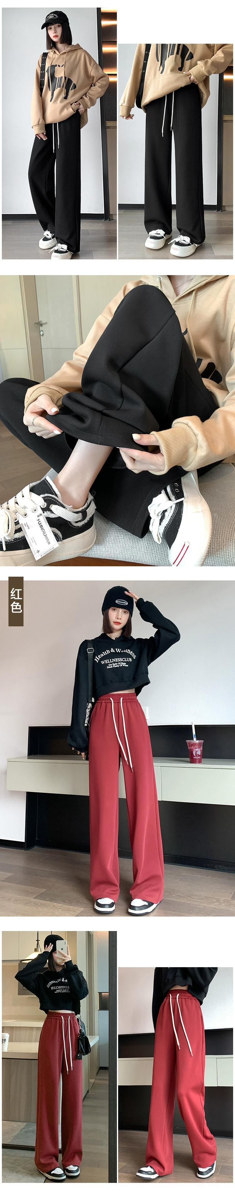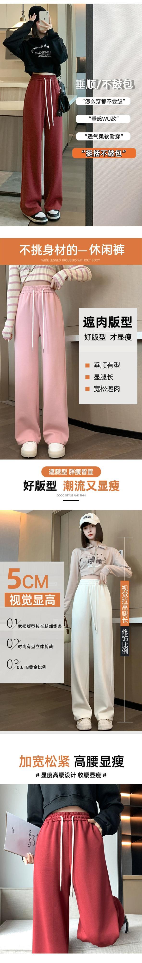 細身のワイドレッグパンツの女性、春と秋のグレーのカジュアルなストレートレッグスポーツパンツ、スリム、ハイウエスト、フロアレングスのルーズスウェットパンツ スプリング 春物 オータム 秋物 7460022705189651 | framboise21