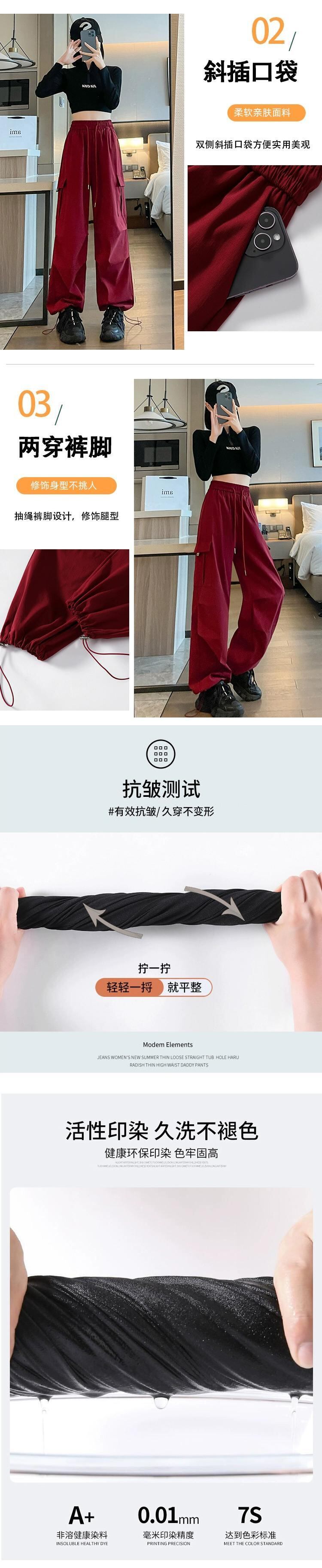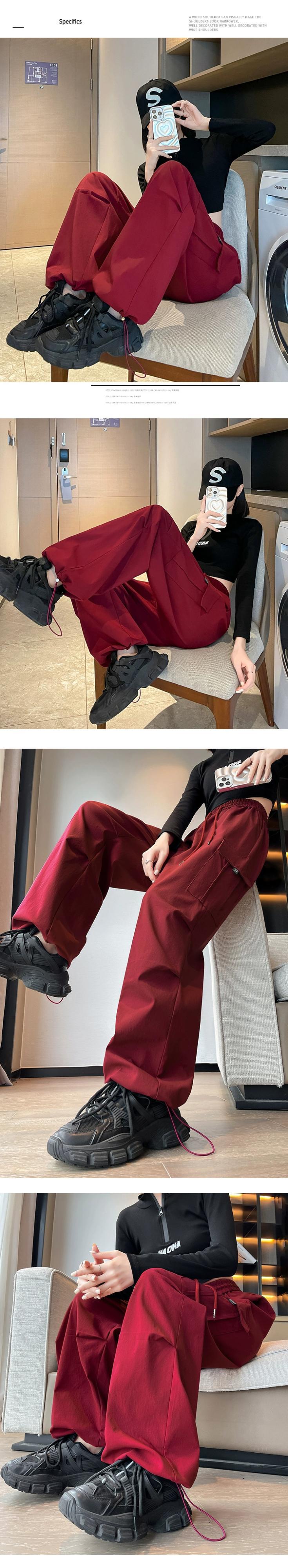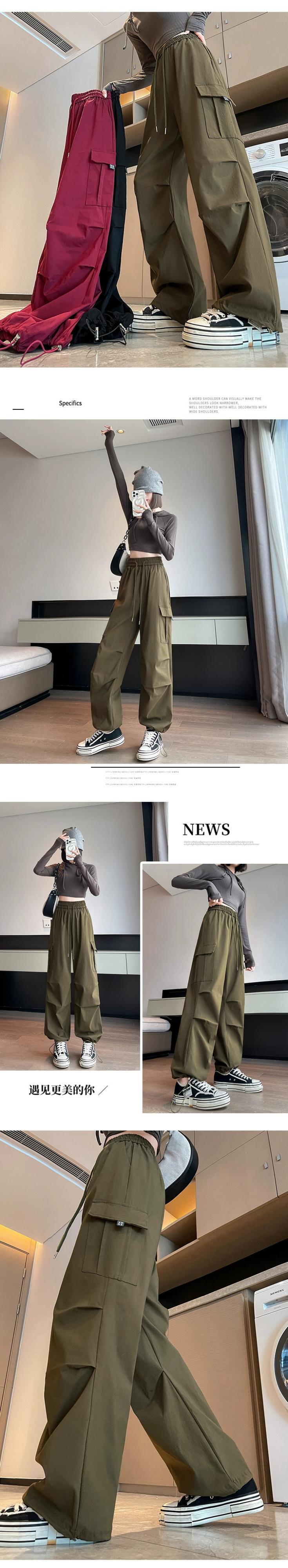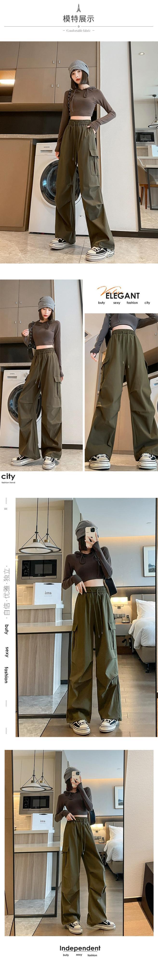 アメリカンミリタリーグリーンカーゴパンツレディース、春と秋のハイストリートドローストリングレッグスウェットパンツストレートハイウエストドレープワイドレッグパンツ ハイウェスト スプリング 春物 オータム 秋物 ワイドパンツ 7460066946740478 | framboise21
