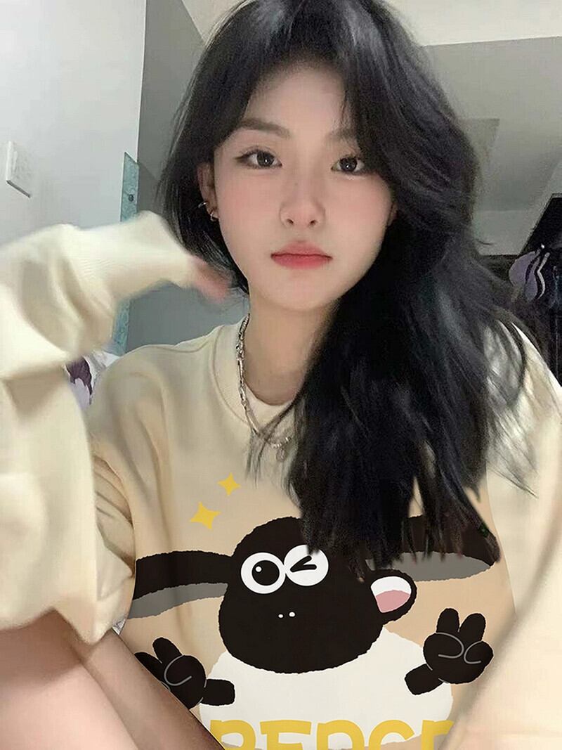フードなしラウンドネックプリントスウェットシャツ女性の春と秋 2023 新しいスタイルのルーズカジュアル多目的長袖トップデザイン ロング スプリング 春物 オータム 秋物 Oネック 7460056107478231 | framboise21