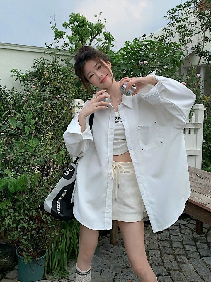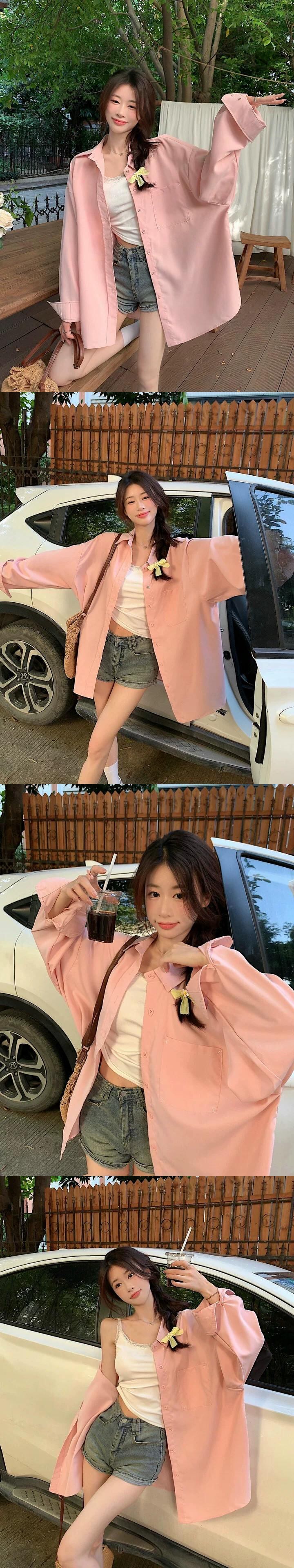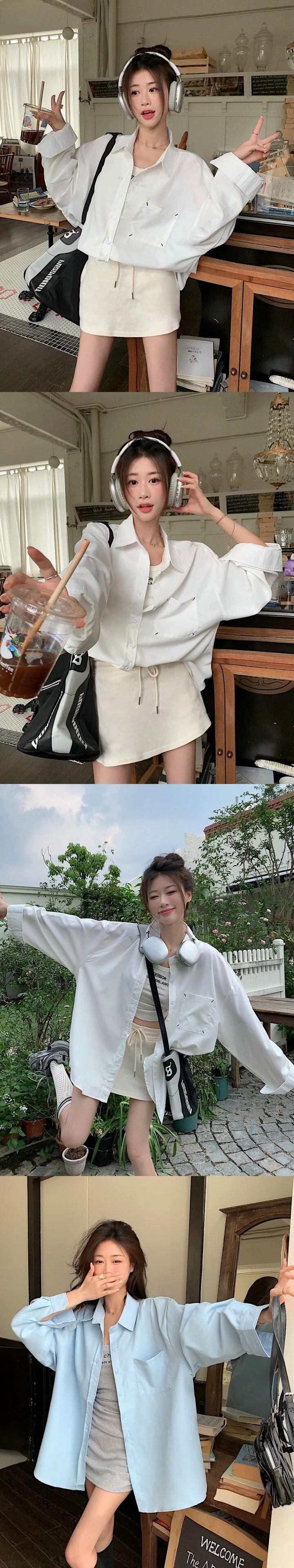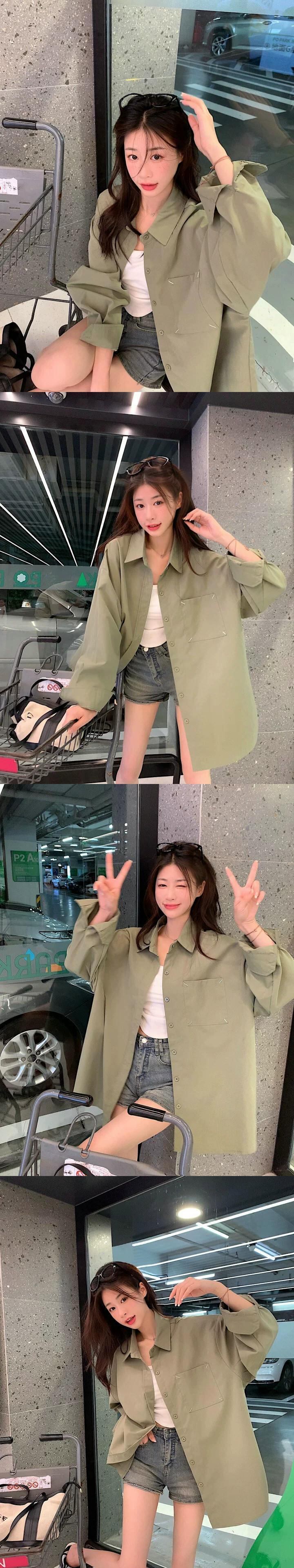 白いミドル丈のシャツジャケットの女性、春と秋のファッショナブルなレイヤードシャツ、ゆったりとしたカジュアルなインナー長袖トップス ロング ホワイト レッド スプリング 春物 オータム 秋物 7460033941030107 | framboise21