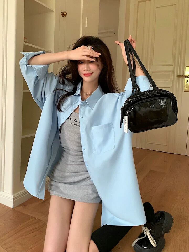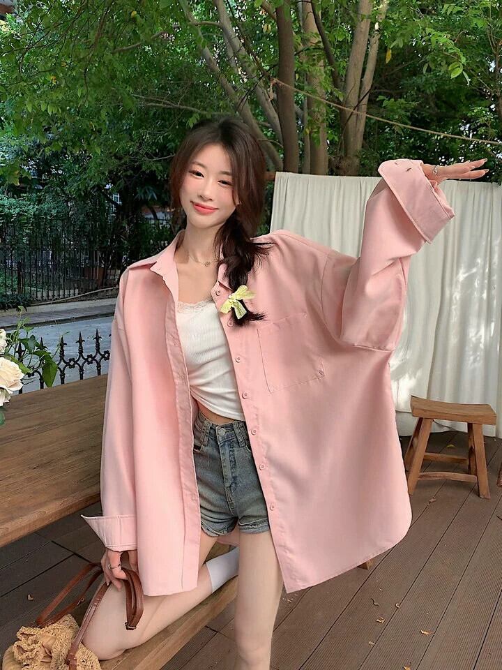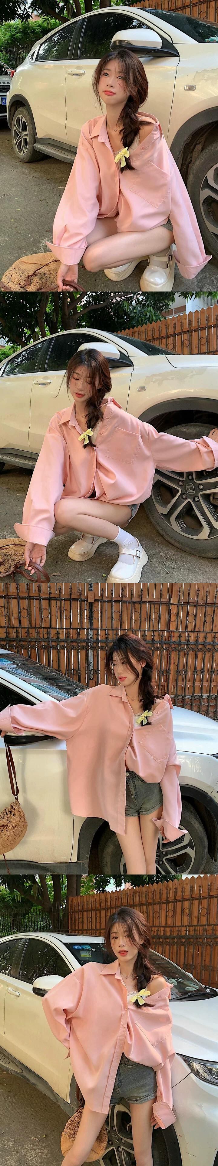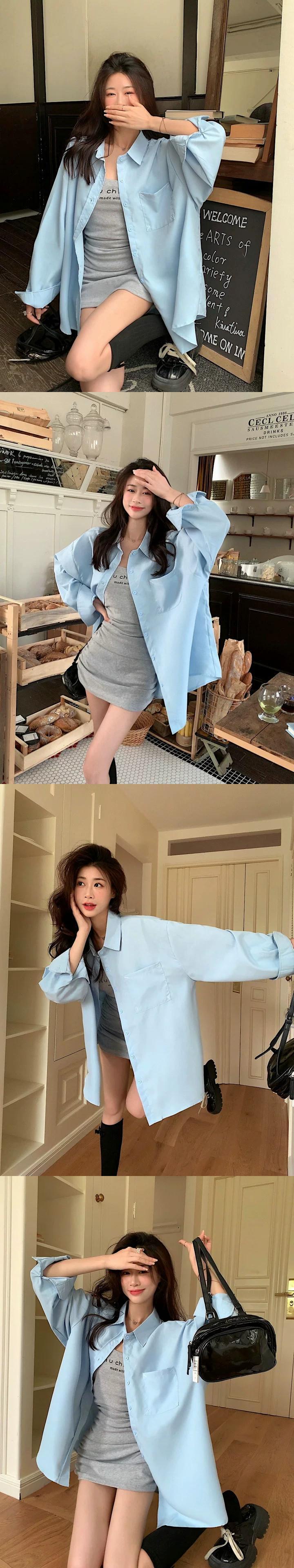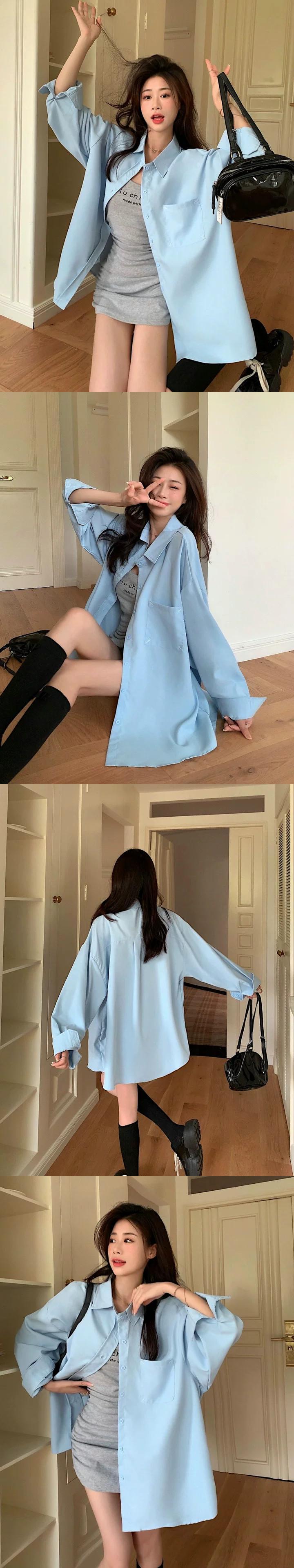 白いミドル丈のシャツジャケットの女性、春と秋のファッショナブルなレイヤードシャツ、ゆったりとしたカジュアルなインナー長袖トップス ロング ホワイト レッド スプリング 春物 オータム 秋物 7460033941030107 | framboise21