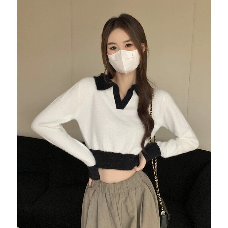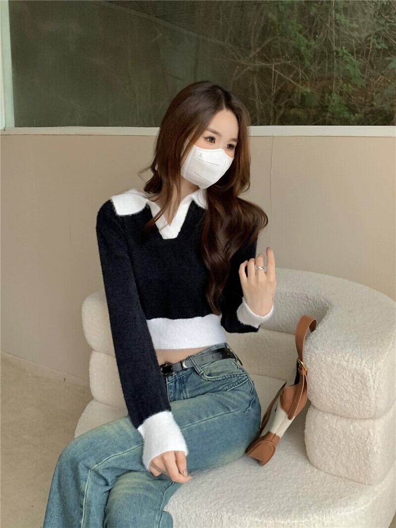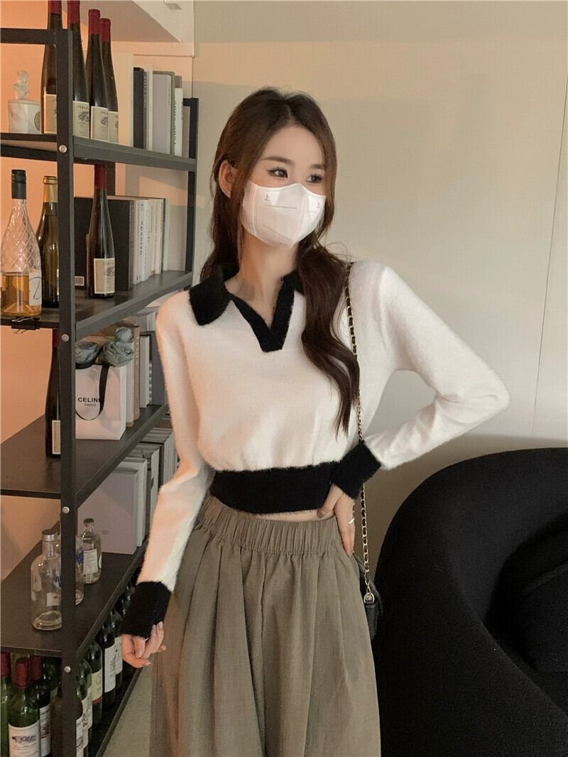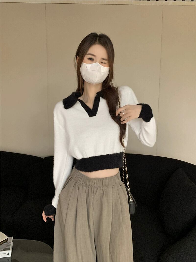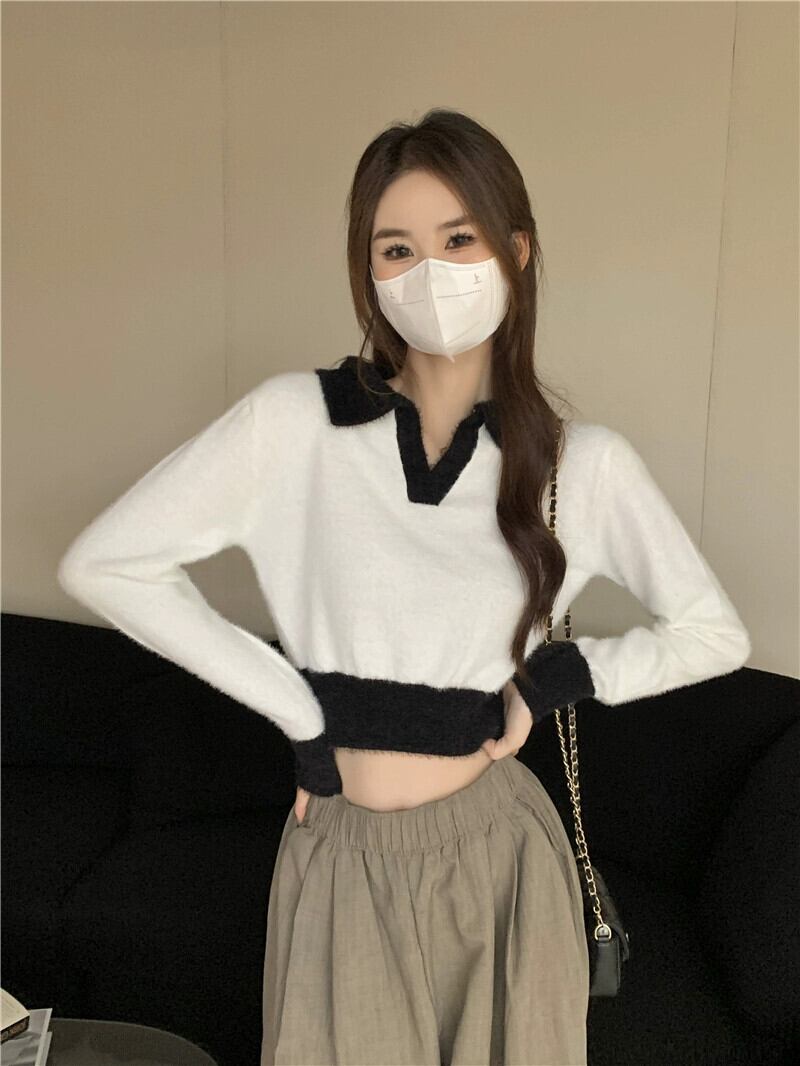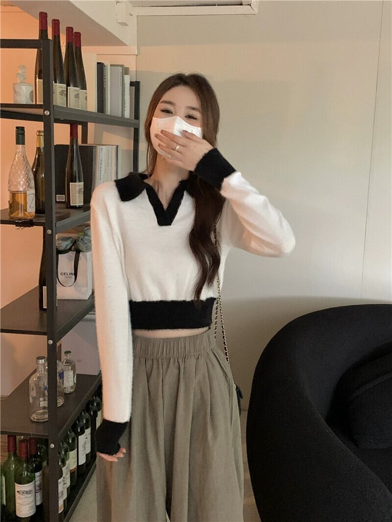 春と秋のニットボトムシャツレディース、ファッショナブルでルーズなショートセーター、長袖ポロシャツがスリムになります。 ロング スプリング 春物 オータム 秋物 7460064622118827 | framboise21