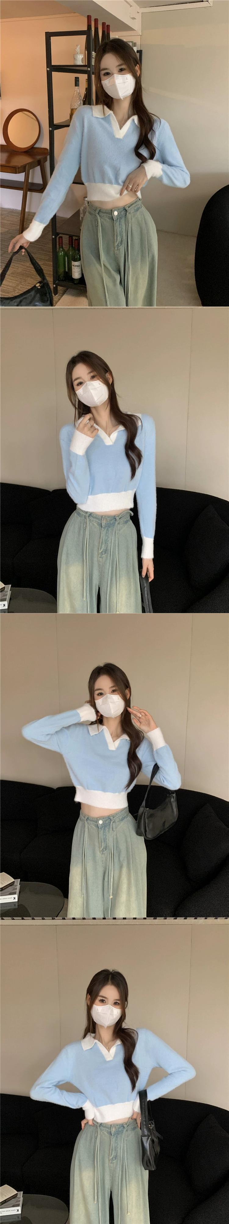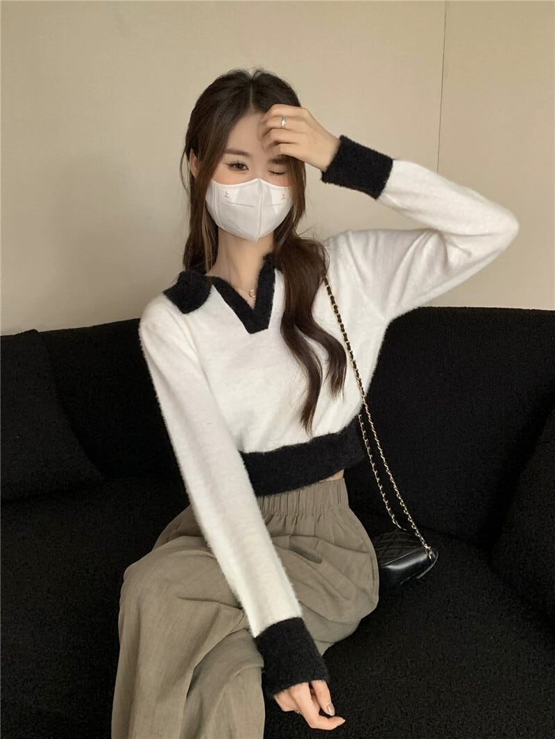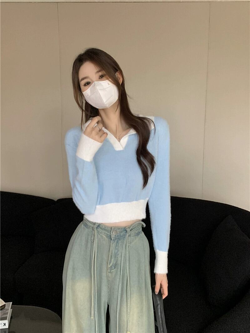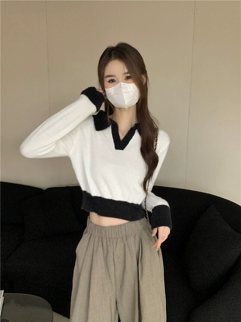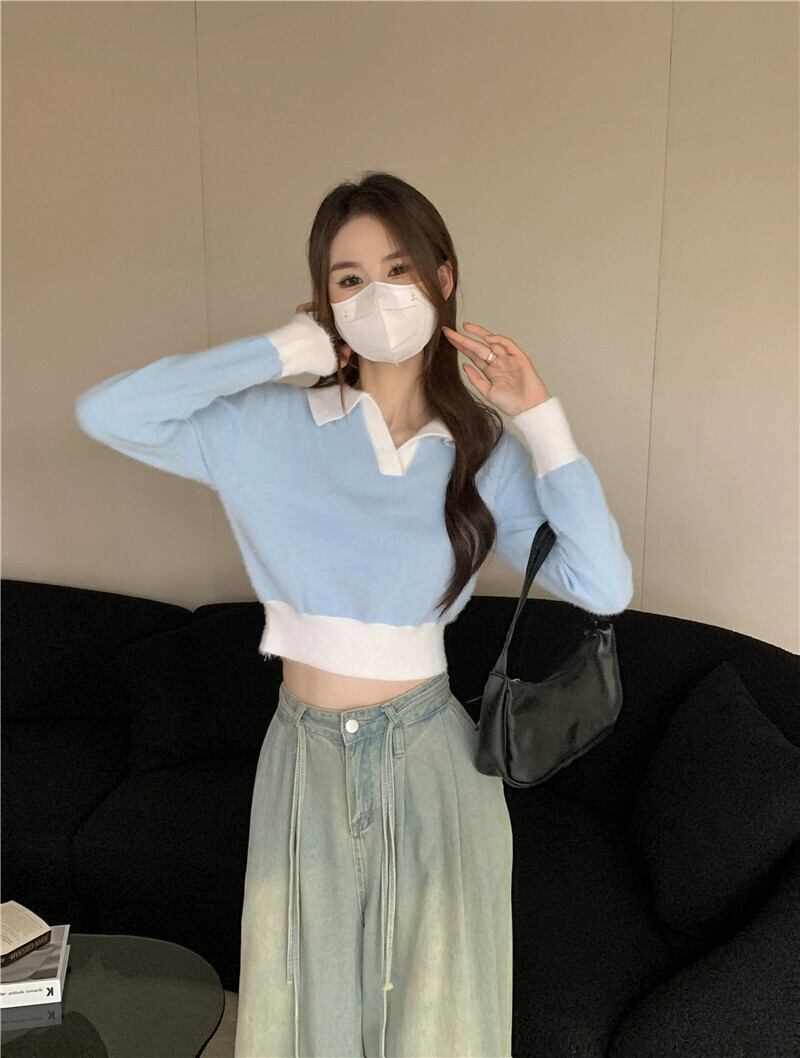 春と秋のニットボトムシャツレディース、ファッショナブルでルーズなショートセーター、長袖ポロシャツがスリムになります。 ロング スプリング 春物 オータム 秋物 7460064622118827 | framboise21