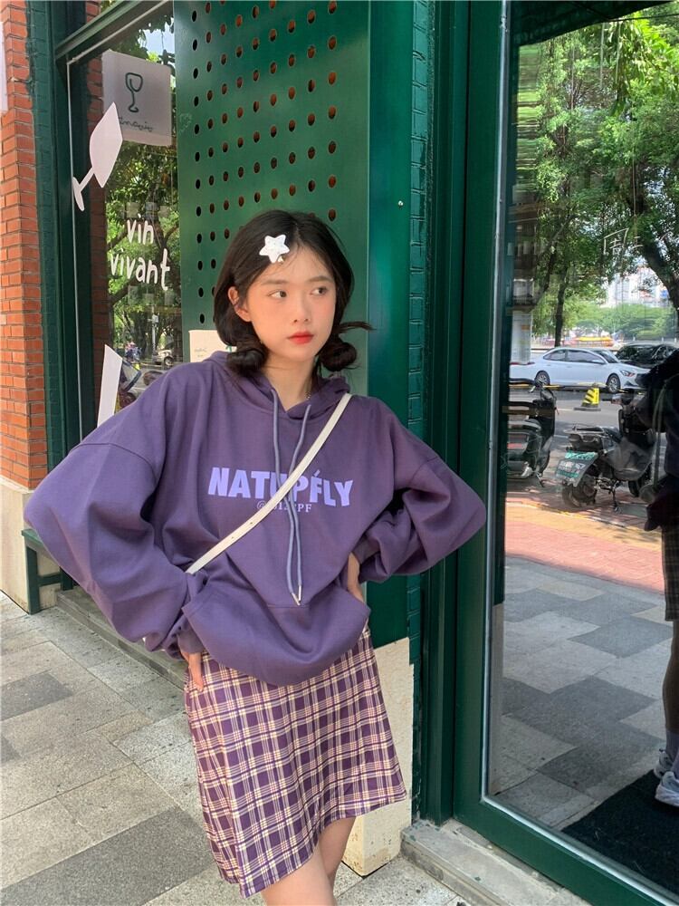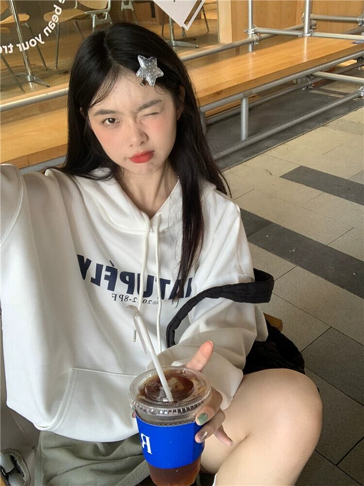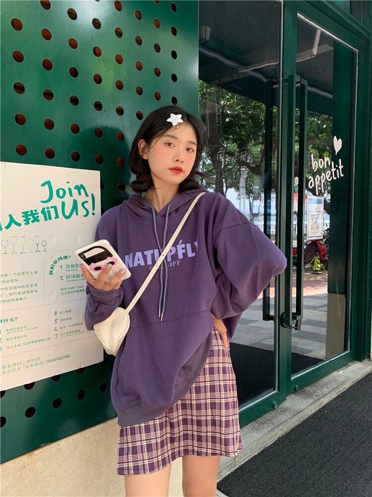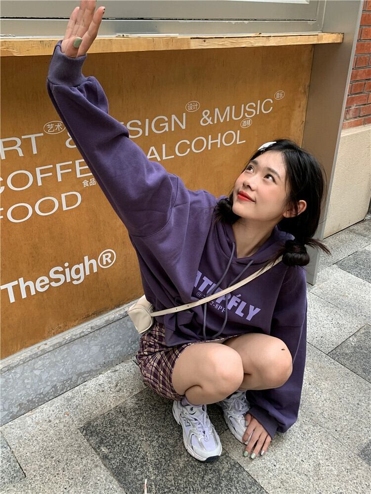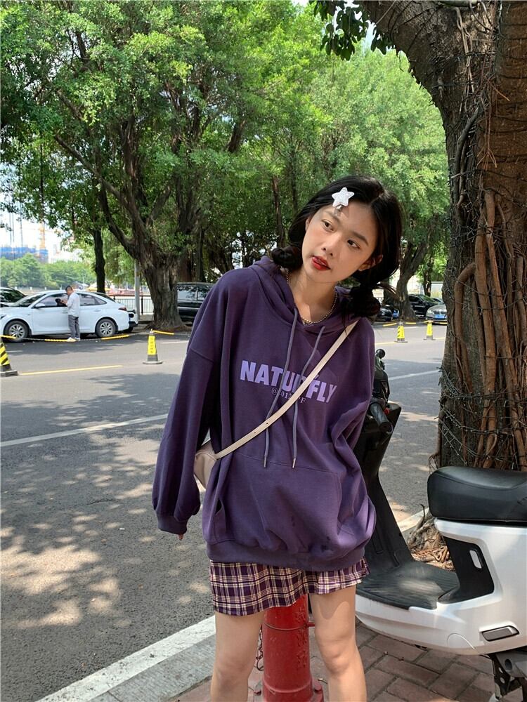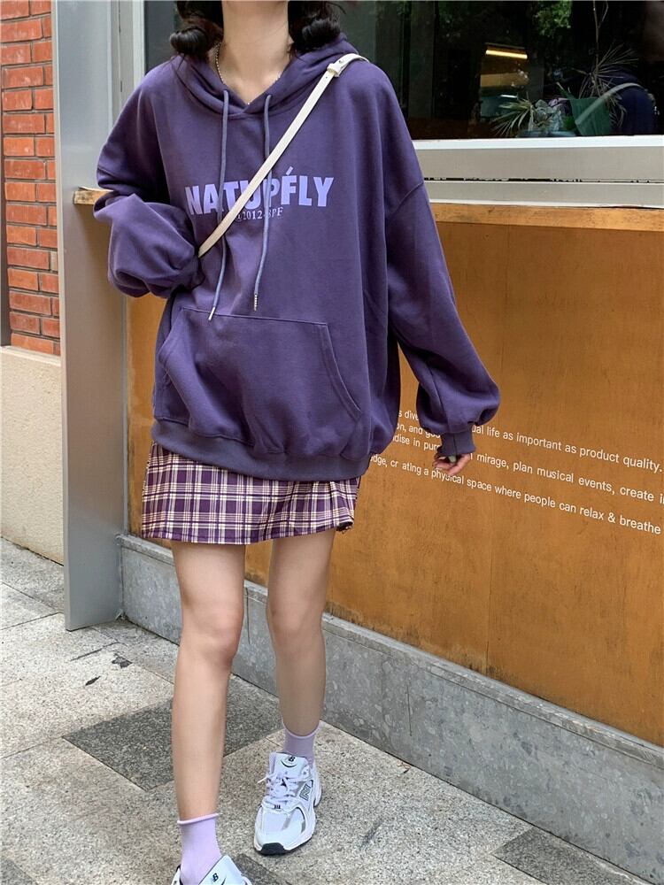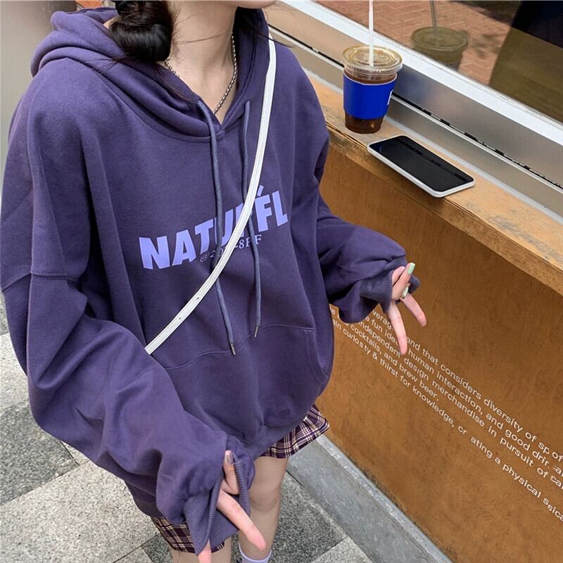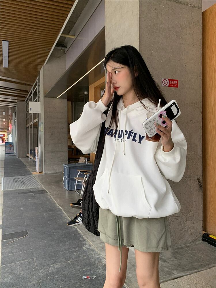 オーバーサイズ ミッドレングス フード付きスウェットシャツ レディース 春と秋 アメリカン デザイン ルーズ BF レイジー スタイル 長袖 トップ ロング スプリング 春物 オータム 秋物 7460025762193134 | framboise21