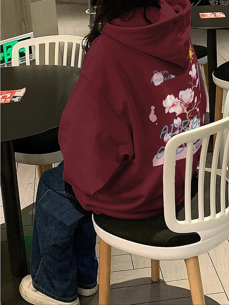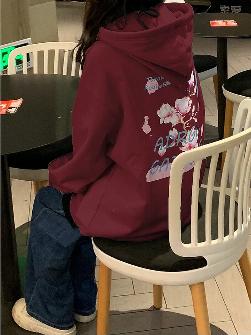 アメリカンレトロプリントフード付きスウェットシャツレディース、春と秋のデザイン、オーバーサイズミッドレングスプルオーバー長袖トップ ロング スプリング 春物 オータム 秋物 7460094724871374 | framboise21