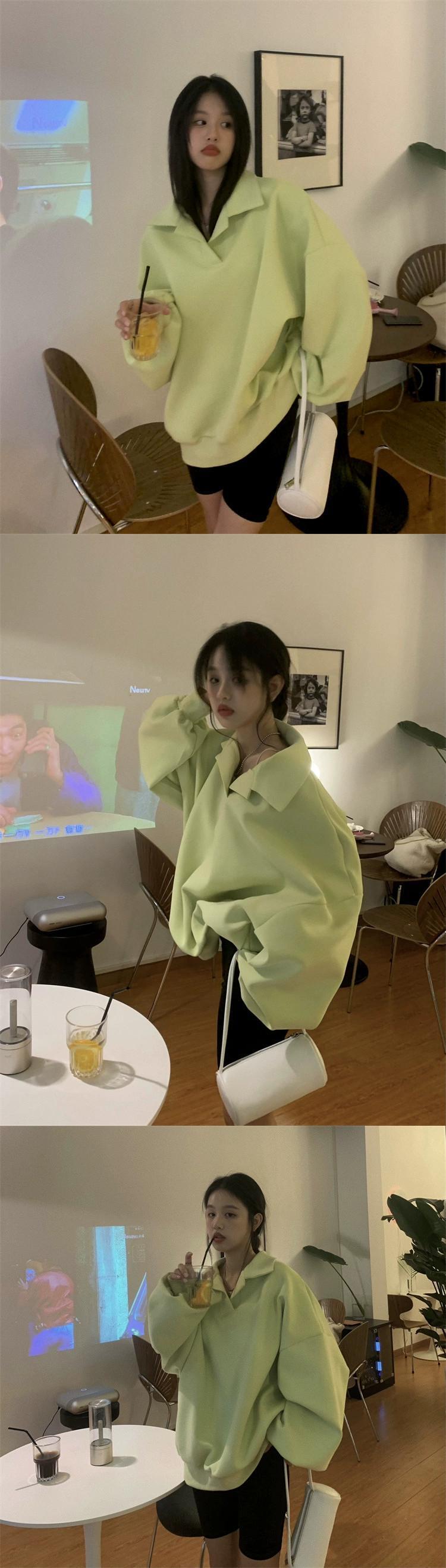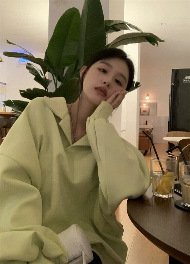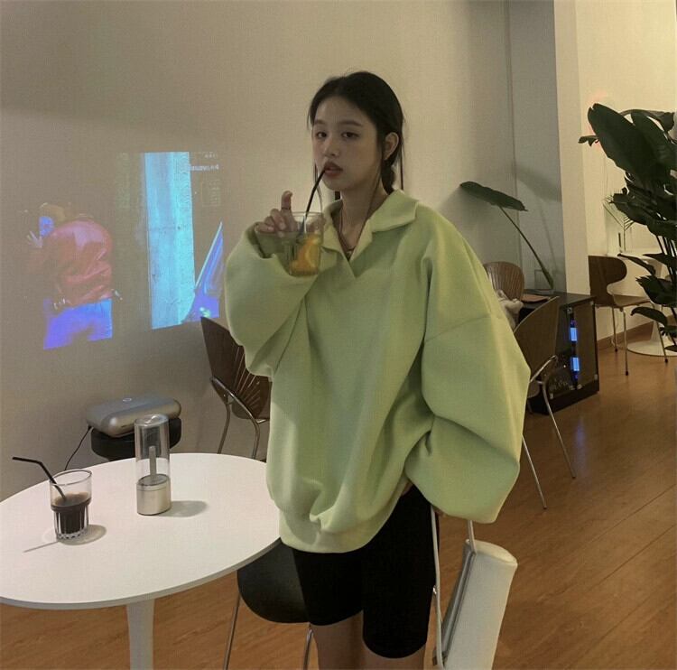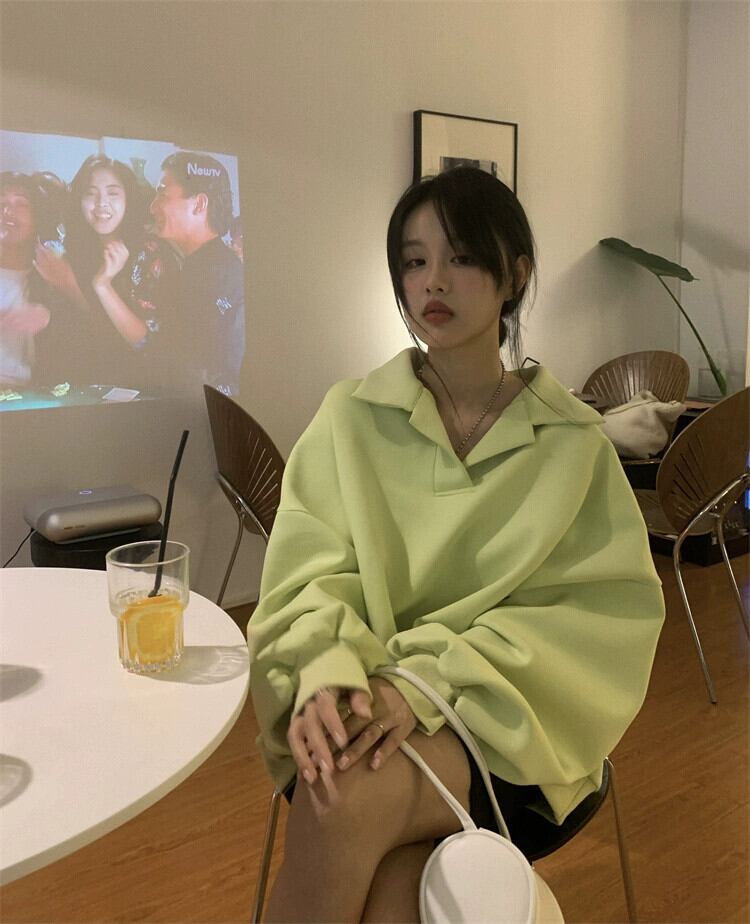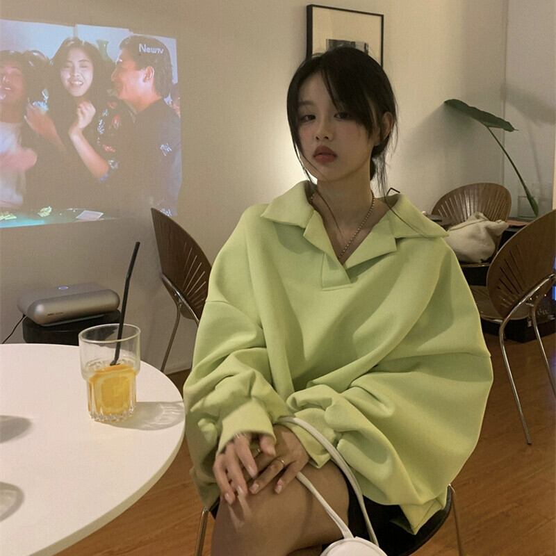 ポロ襟フード付きスウェットシャツの女性の春と秋 2023 新しいルーズスタイル怠惰なスタイルカジュアルミッドレングス長袖トップ ロング スプリング 春物 オータム 秋物 7460017673450794 | framboise21